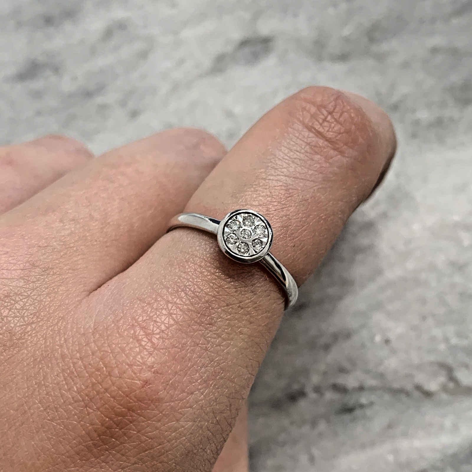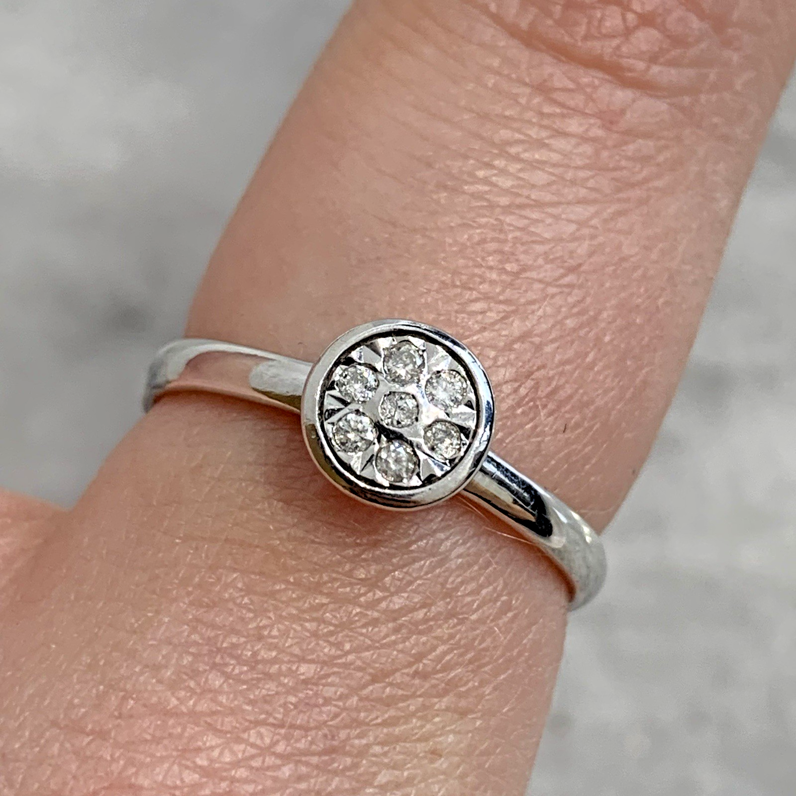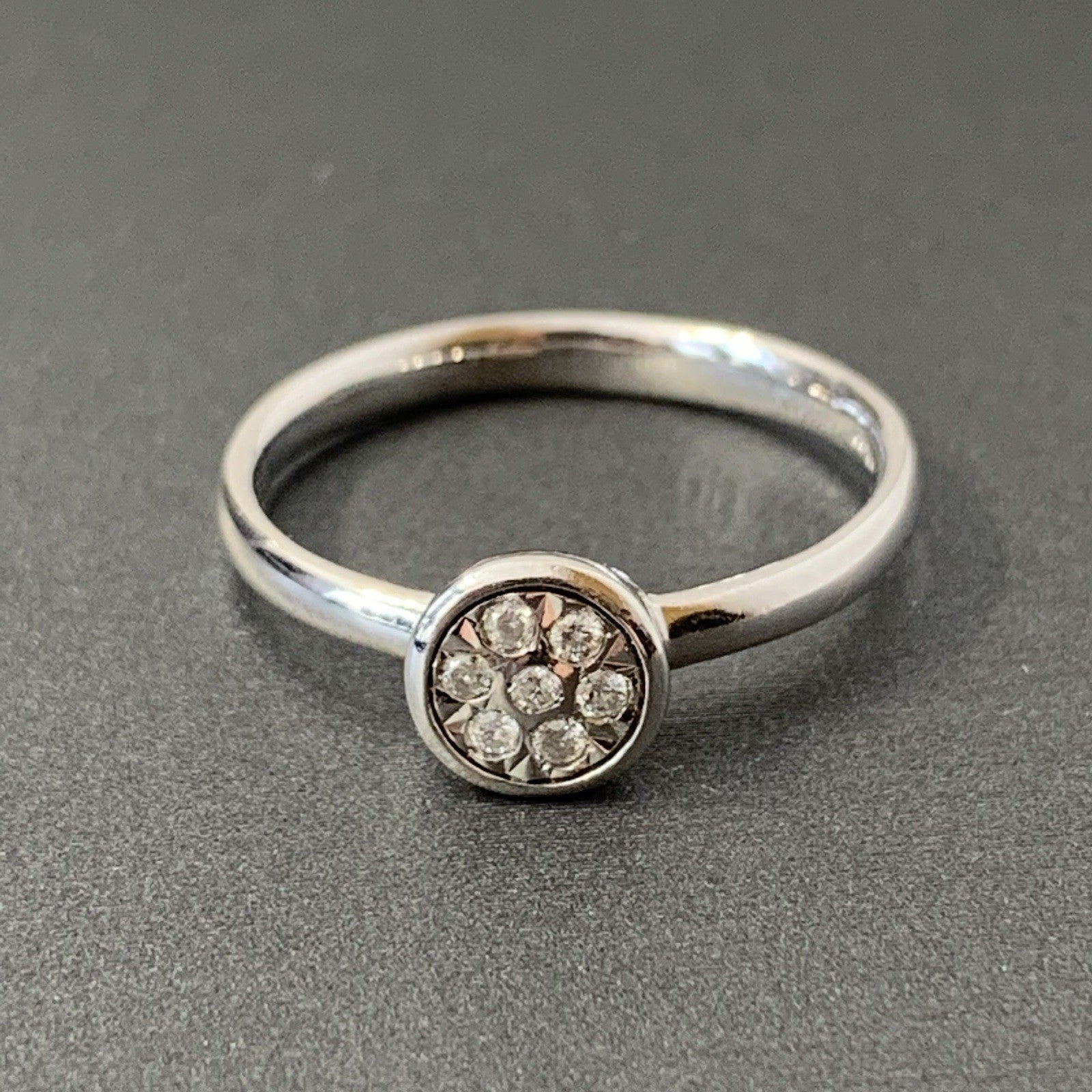 9 ct Gold Diamond Illusion Bezel Set Ring 9ct 375 White Gold - Size N