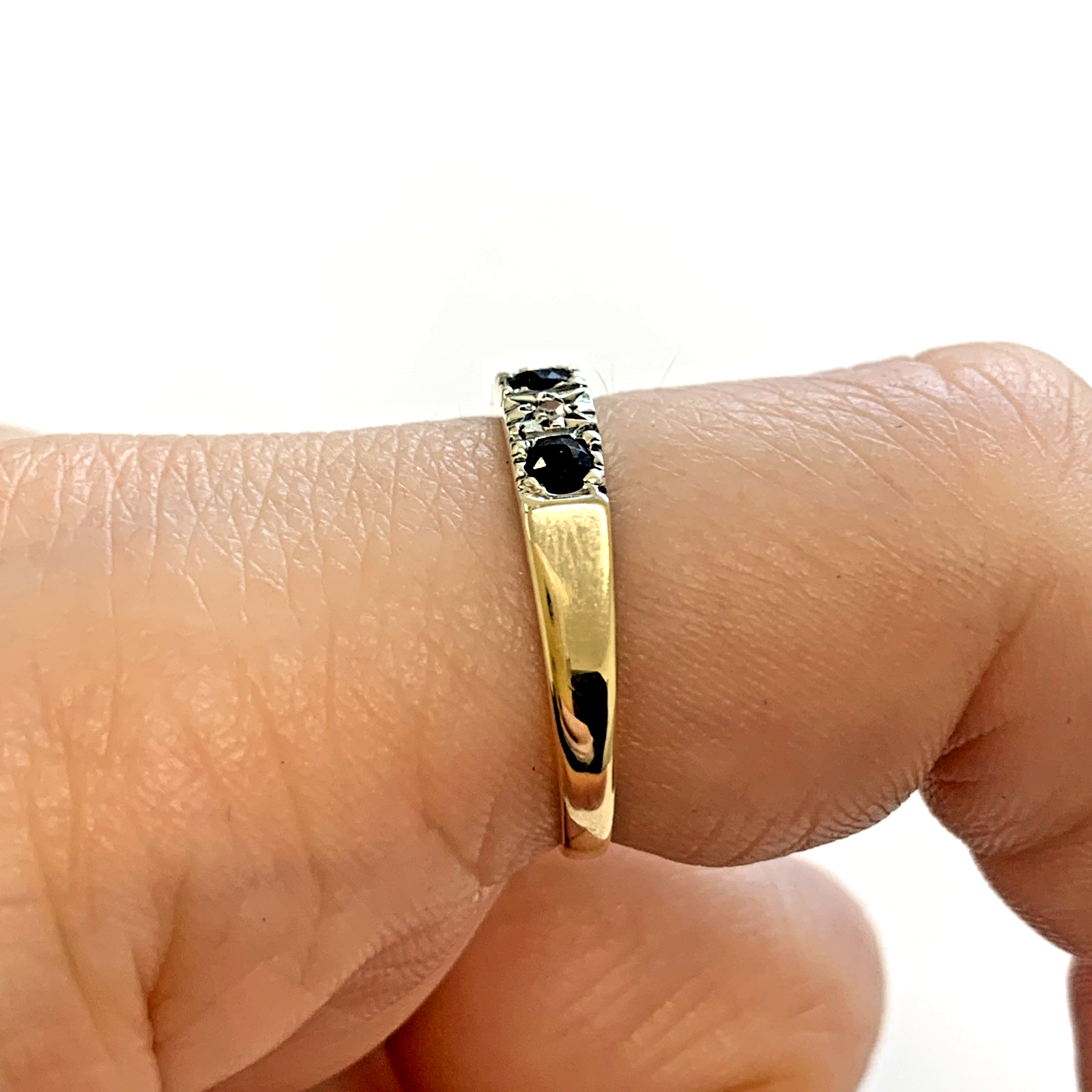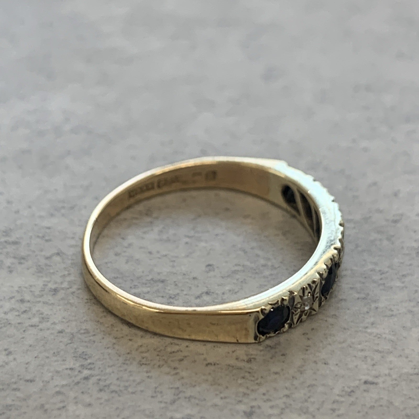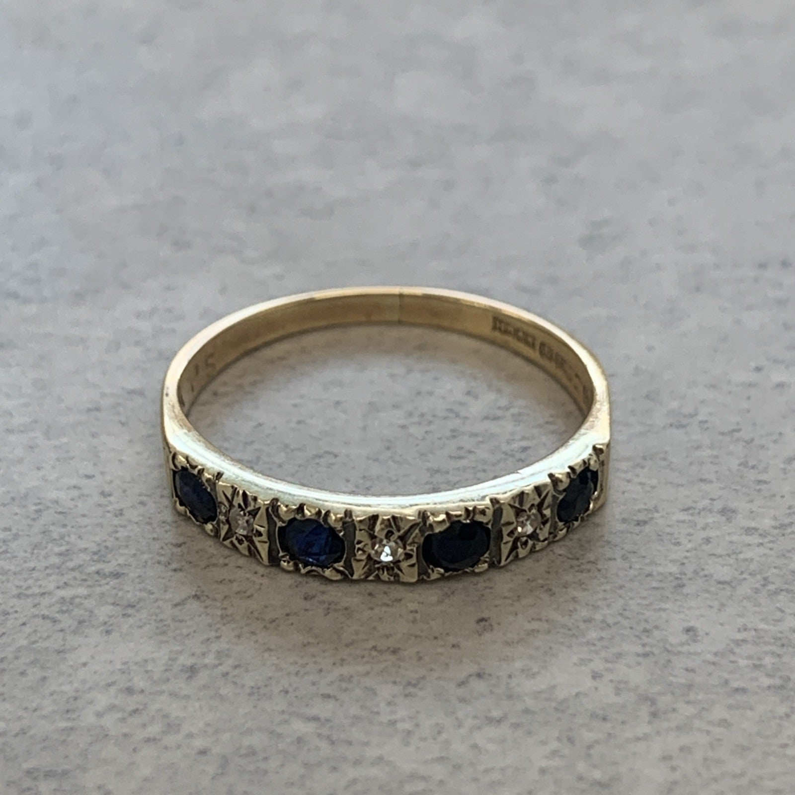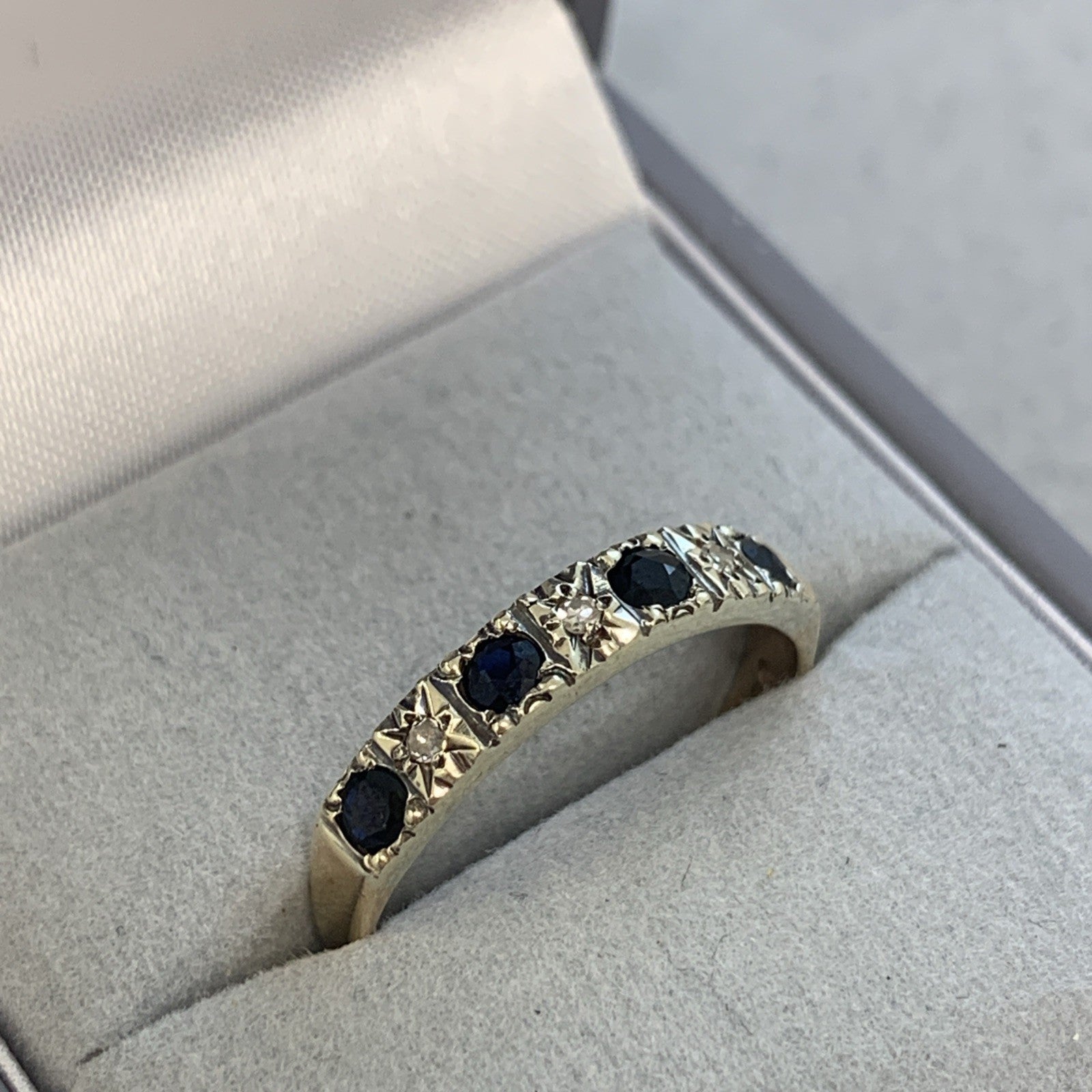 9 ct Gold Sapphire & Diamond Illusion Band Ring 9k 375 Yellow Gold - Size N