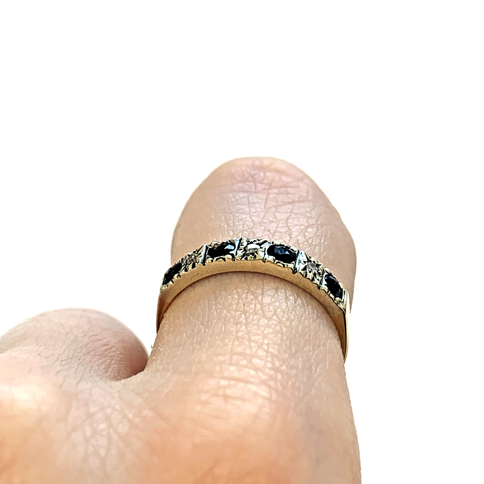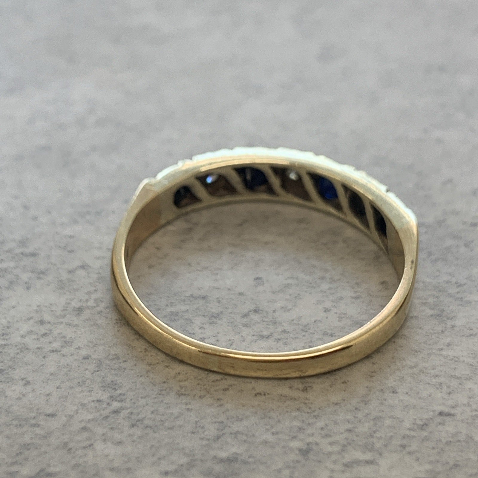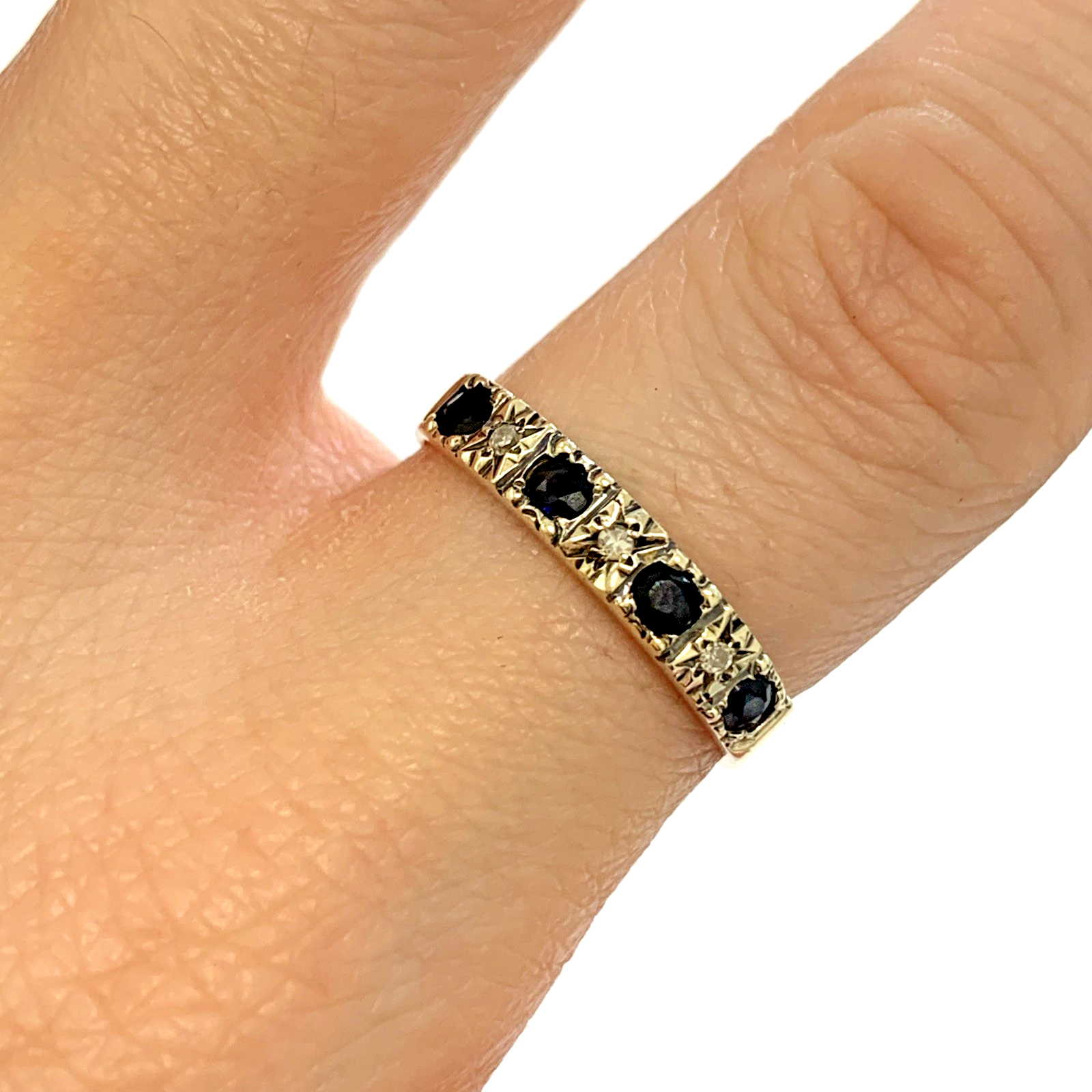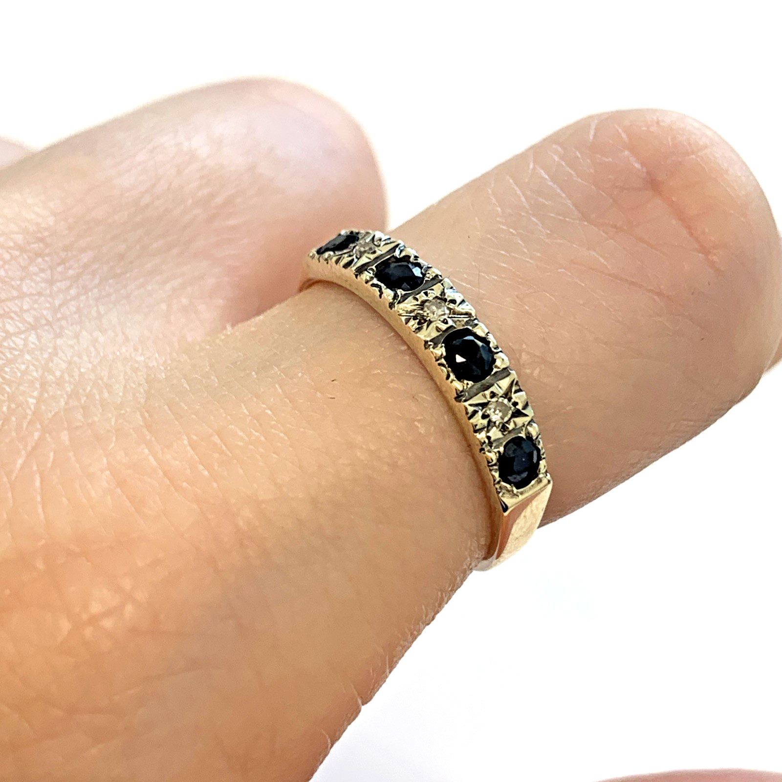 9 ct Gold Sapphire & Diamond Illusion Band Ring 9k 375 Yellow Gold - Size N