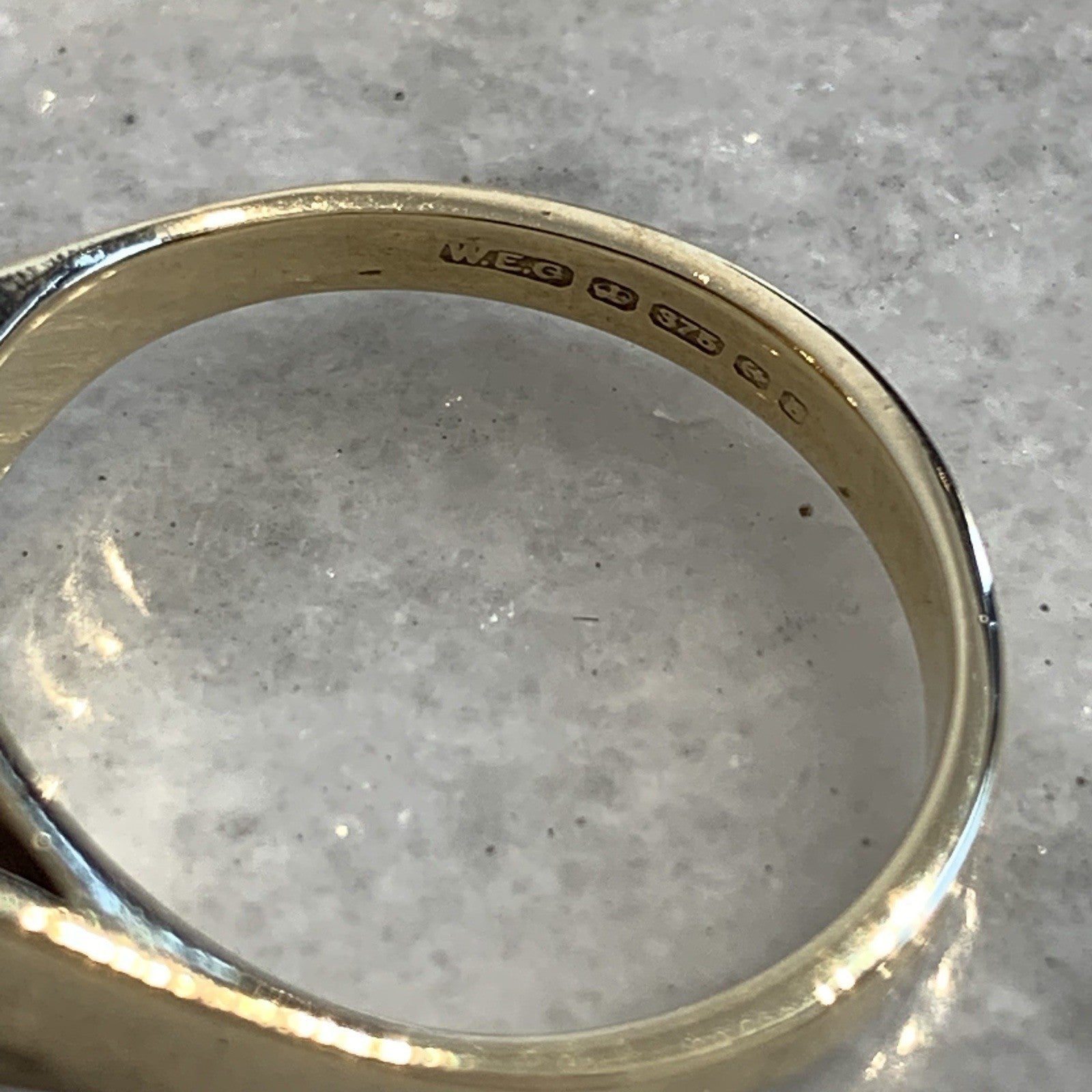 9 ct Gold Sapphire & Diamond Ring Cluster Shoulder 375 Yellow Gold - Size N