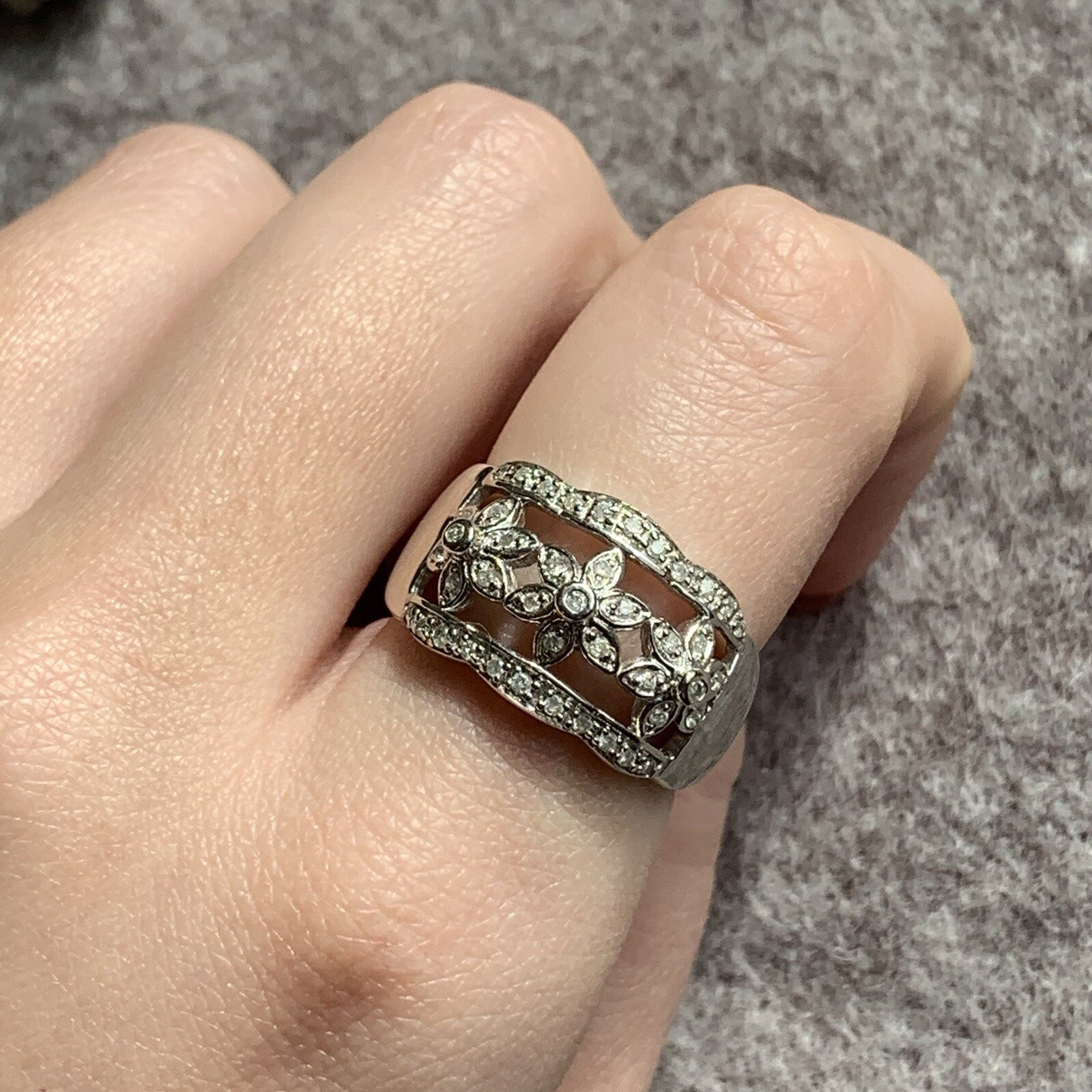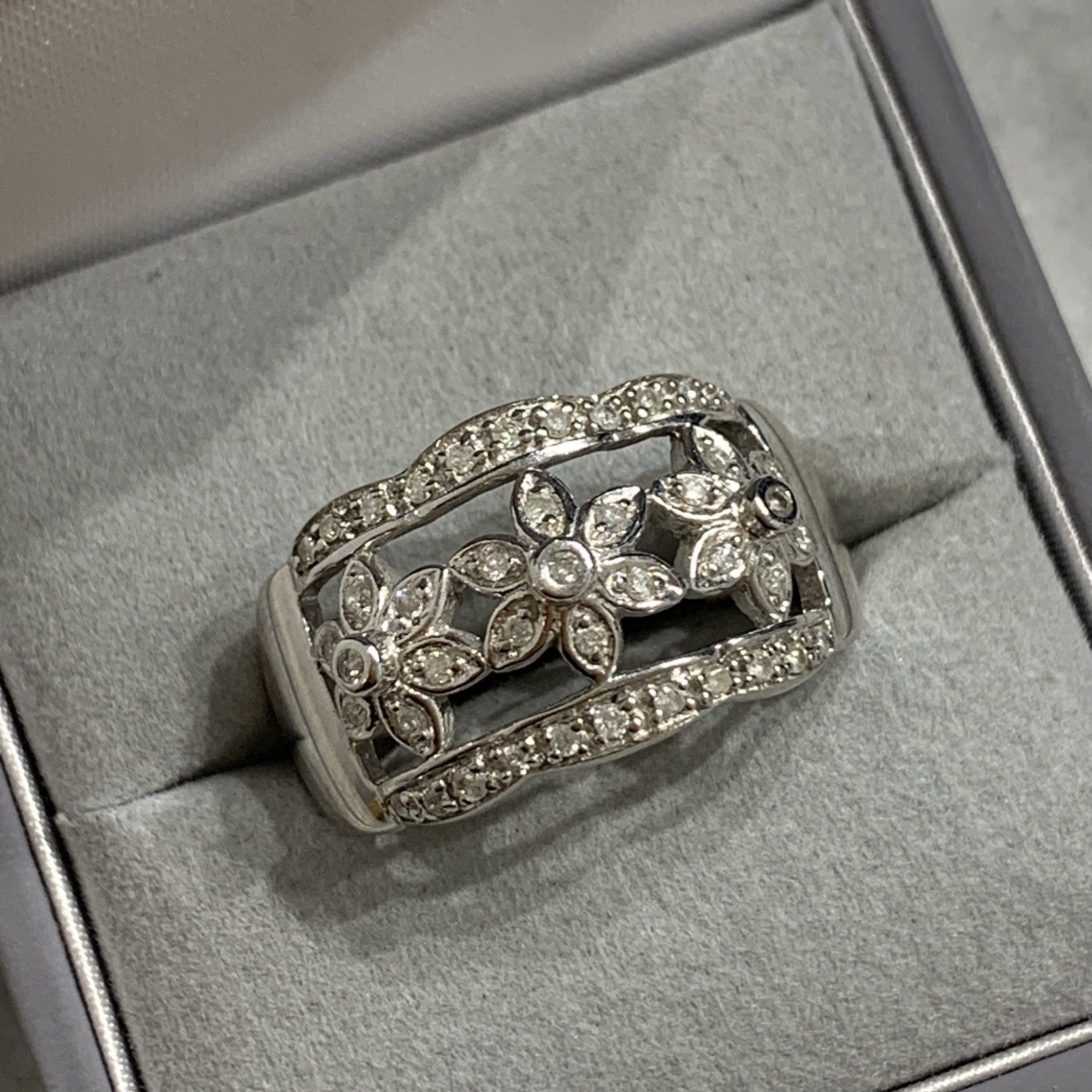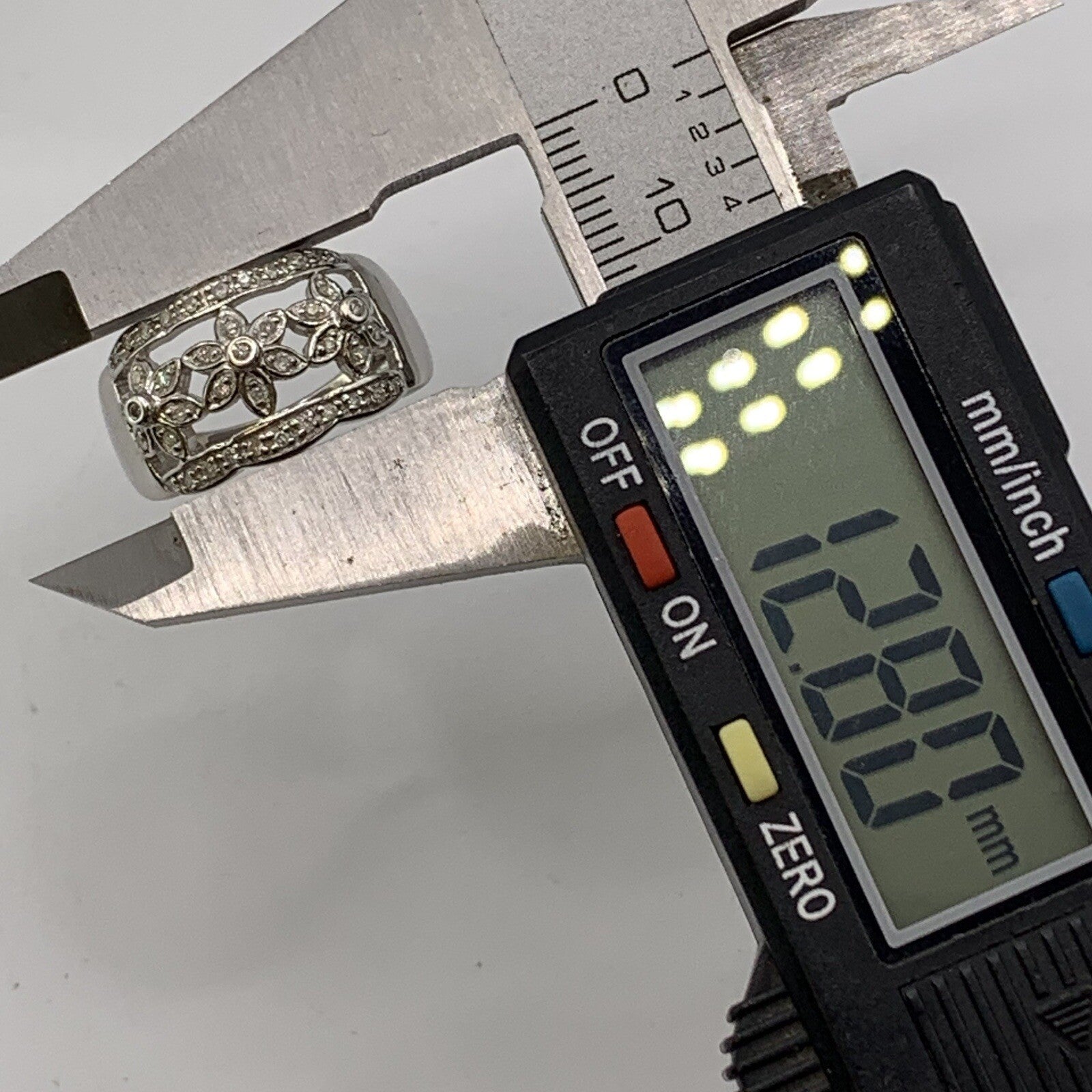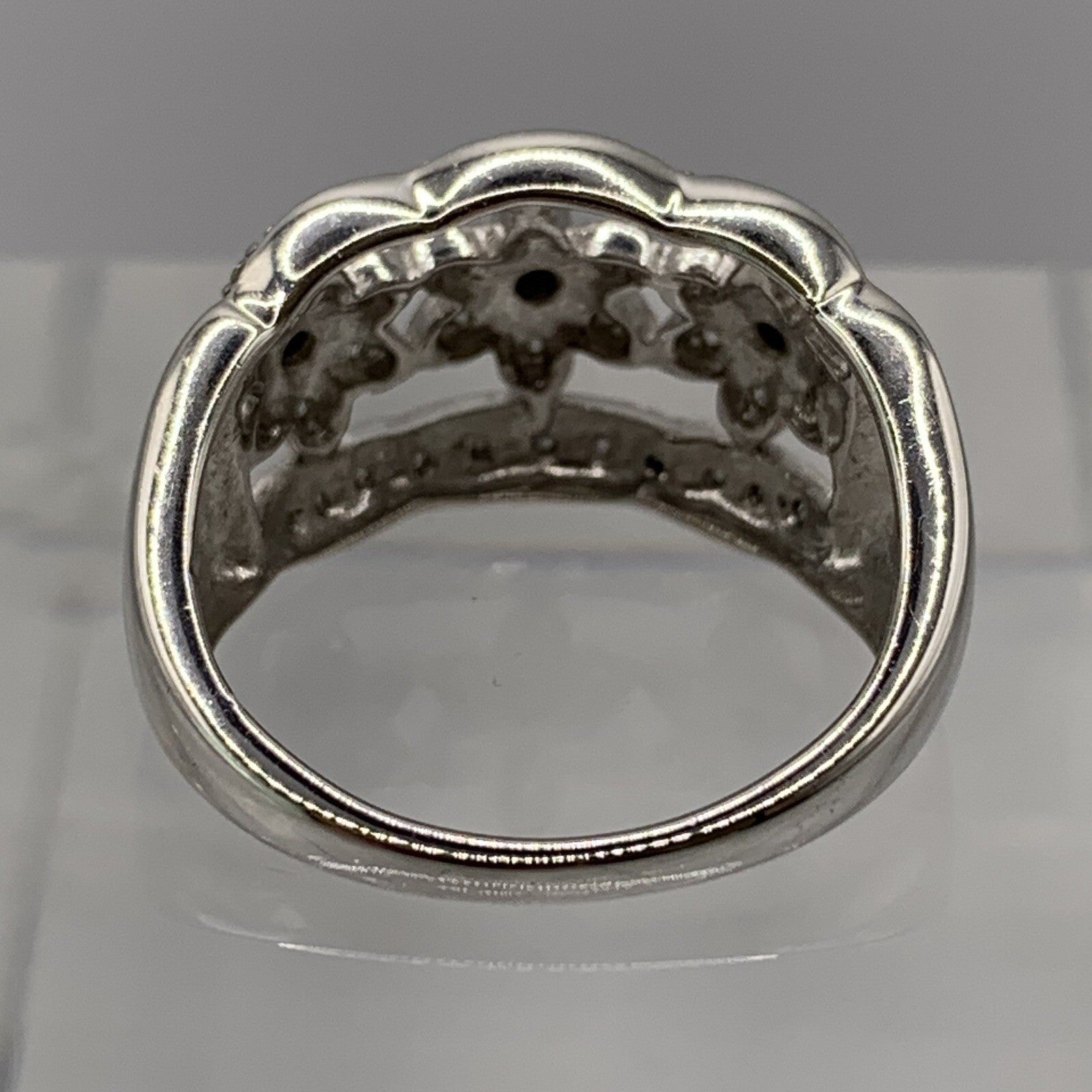 9 ct White Gold Diamond Ring Floral Cut Out Chunky Band 375 - Size N