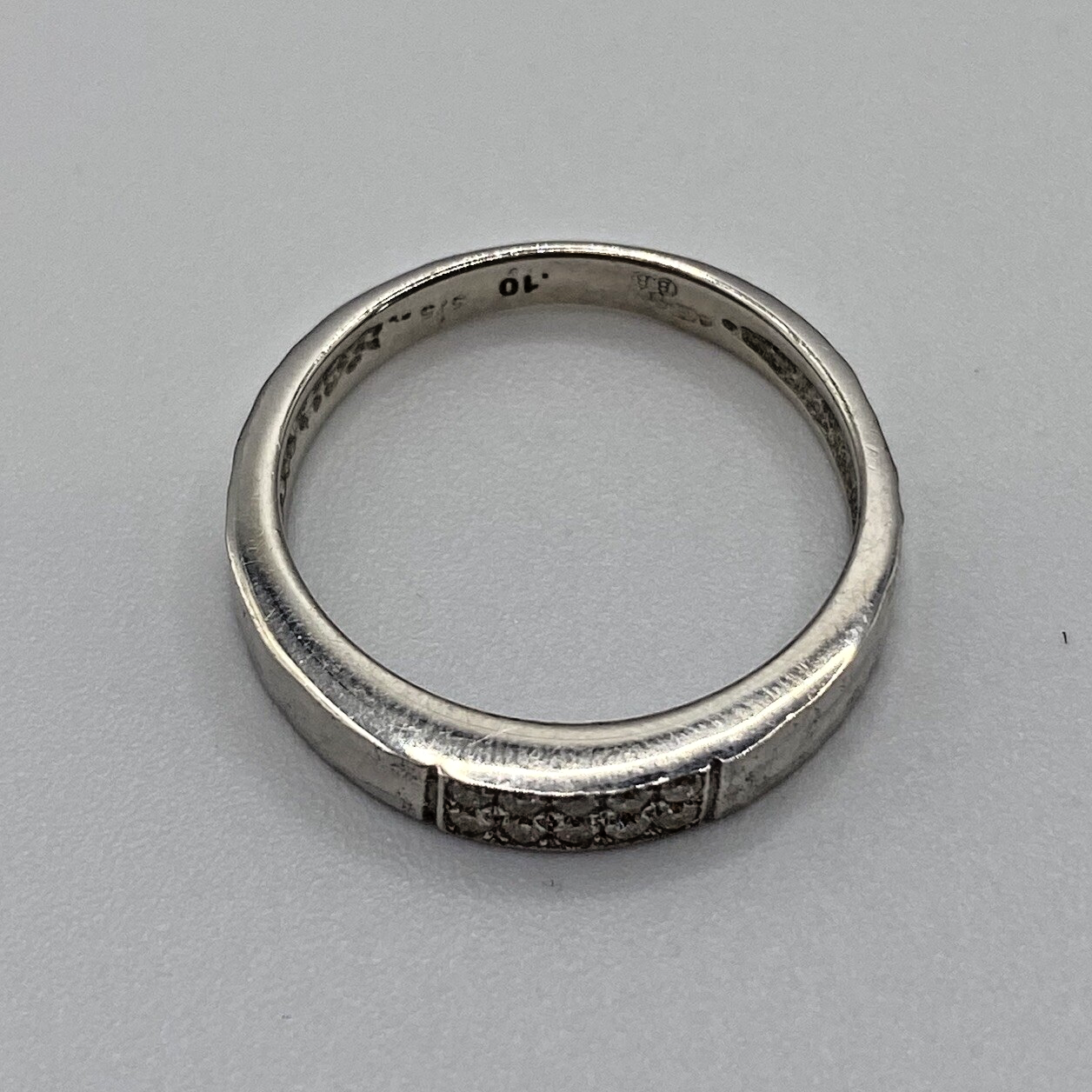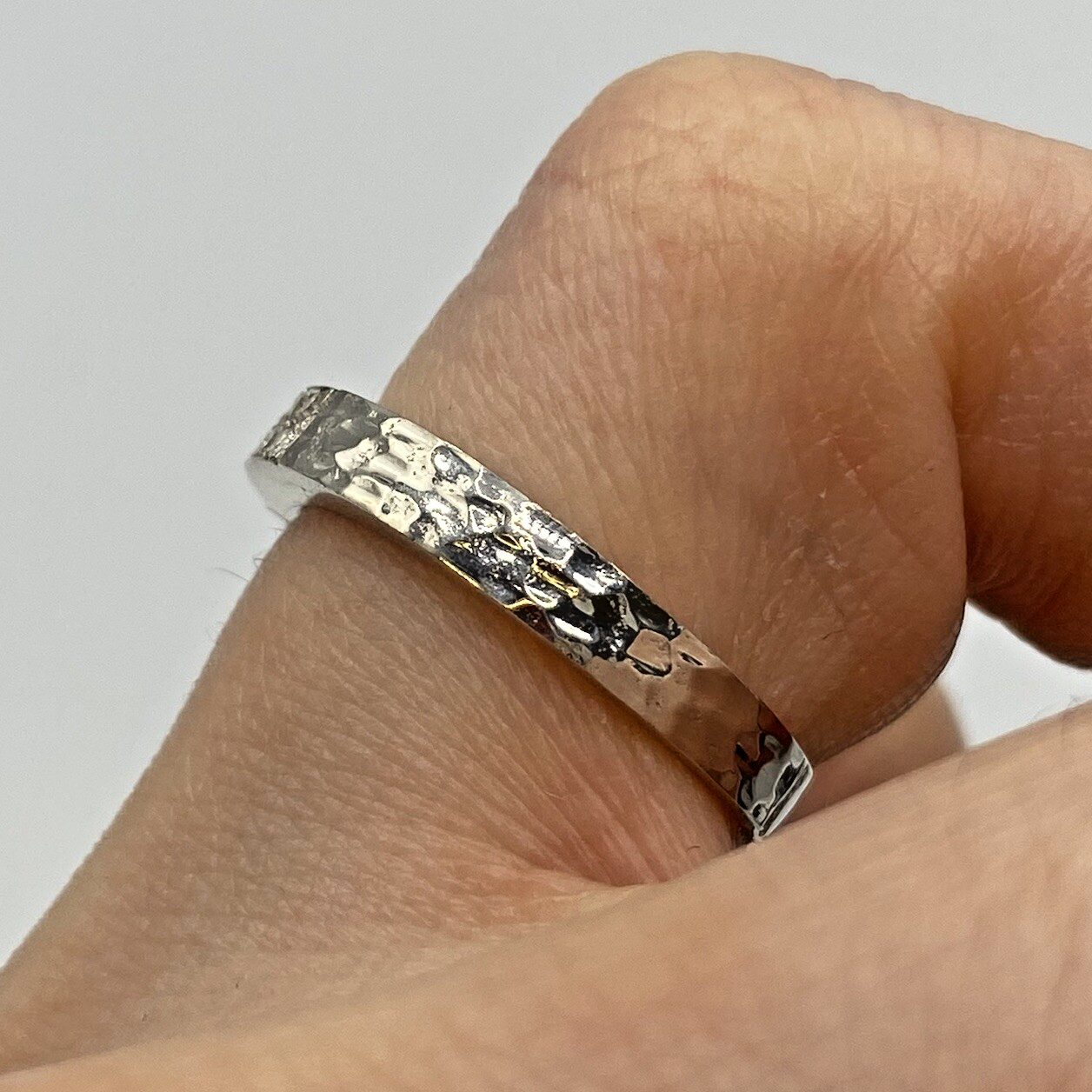 Diamond .10ct Ring 9 ct Gold Hammered Finish Band in 375 White Gold - Size M