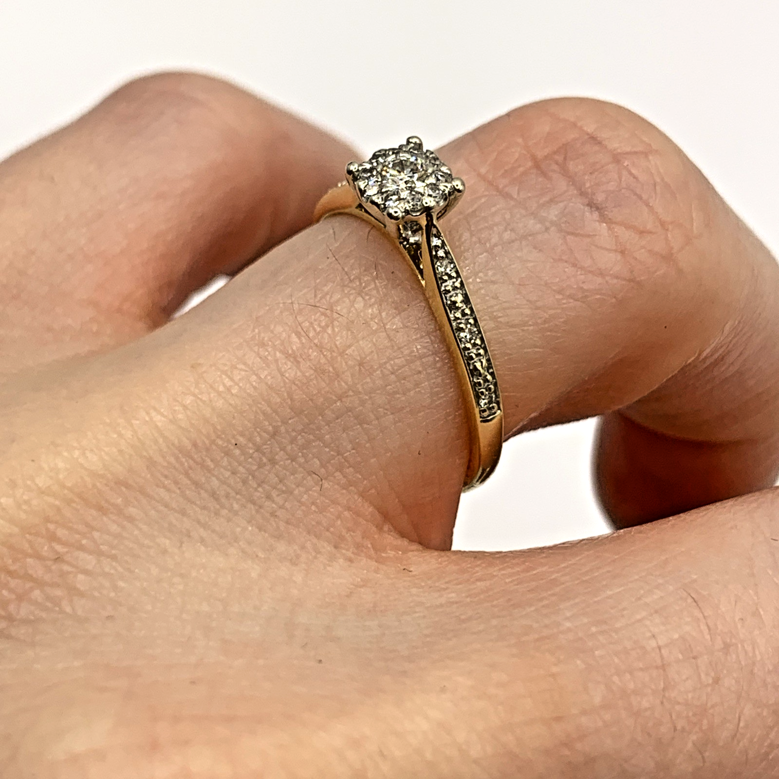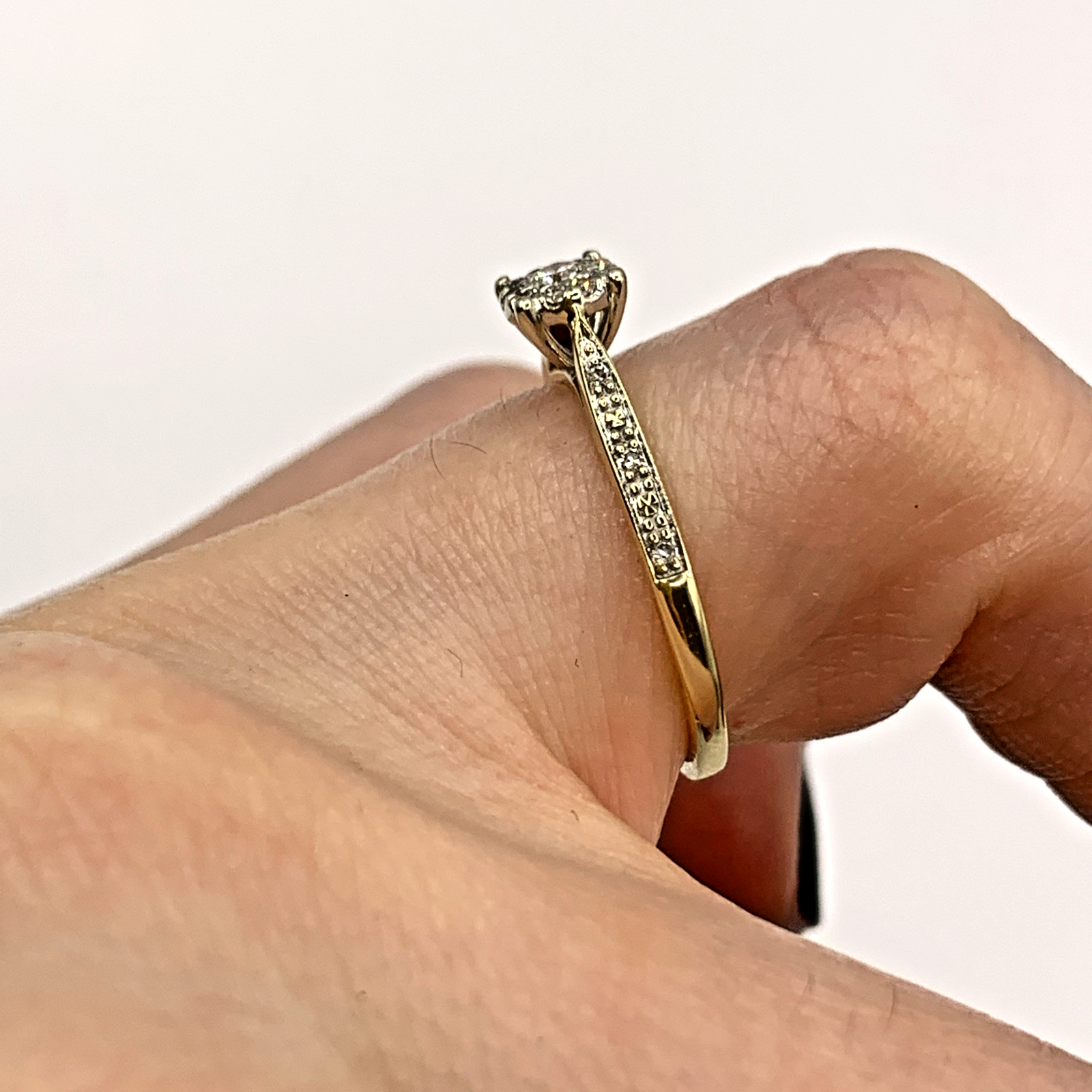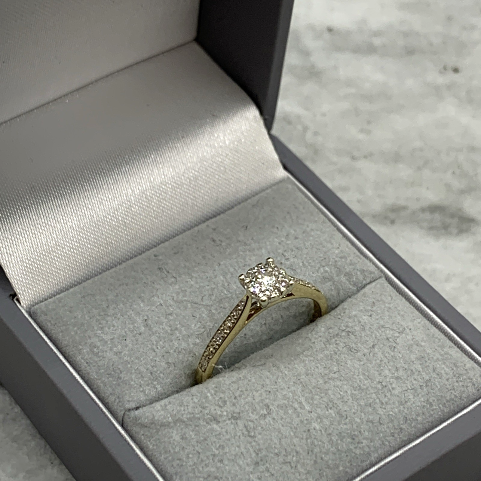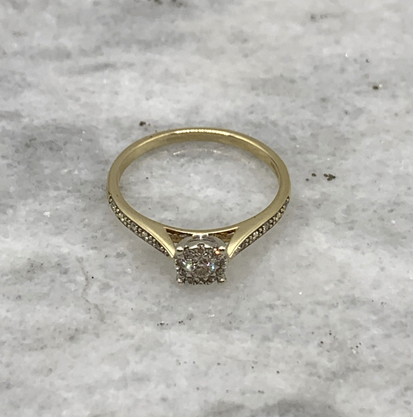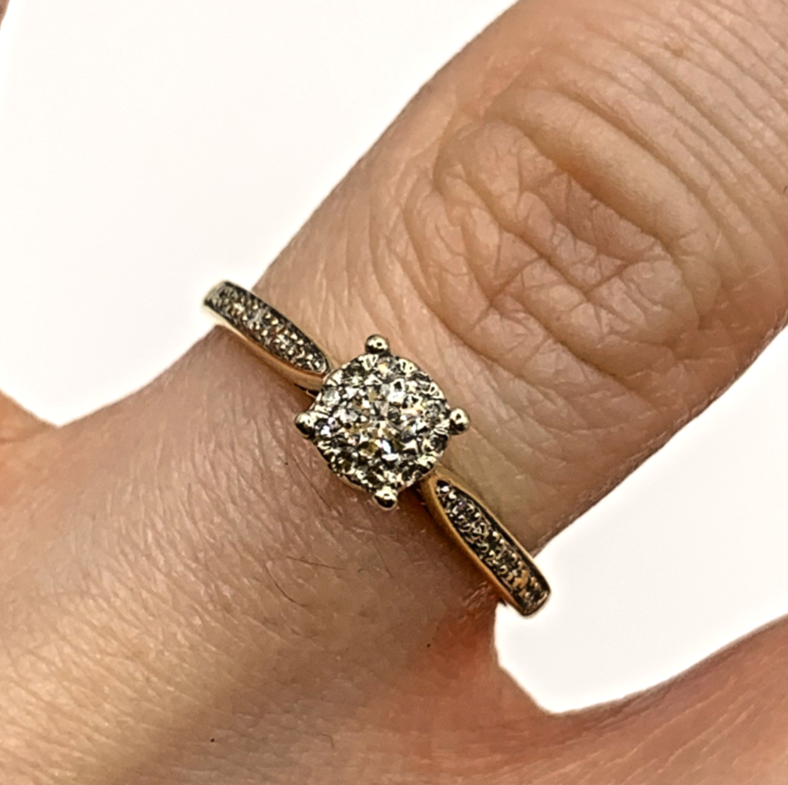 Diamond Engagement Ring 9 ct Gold .15ct Cluster 375 Yellow Gold - Size L