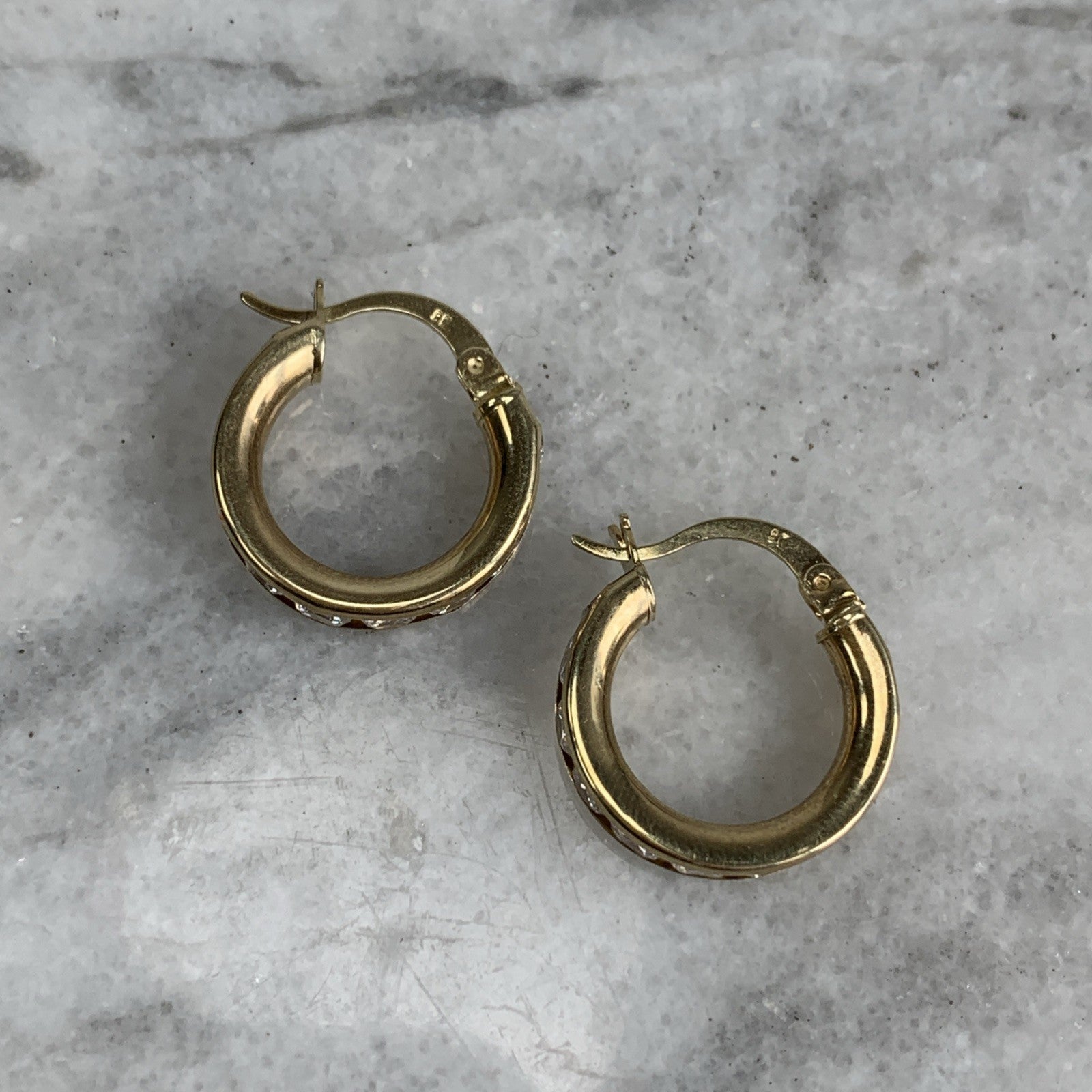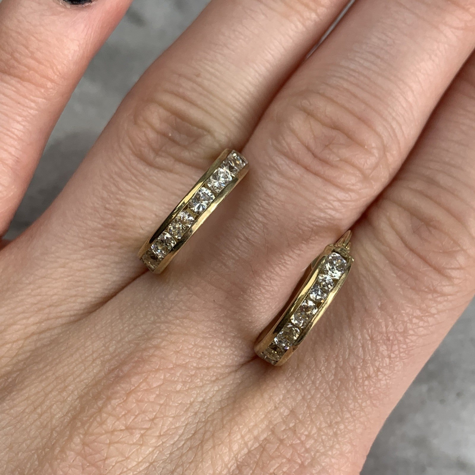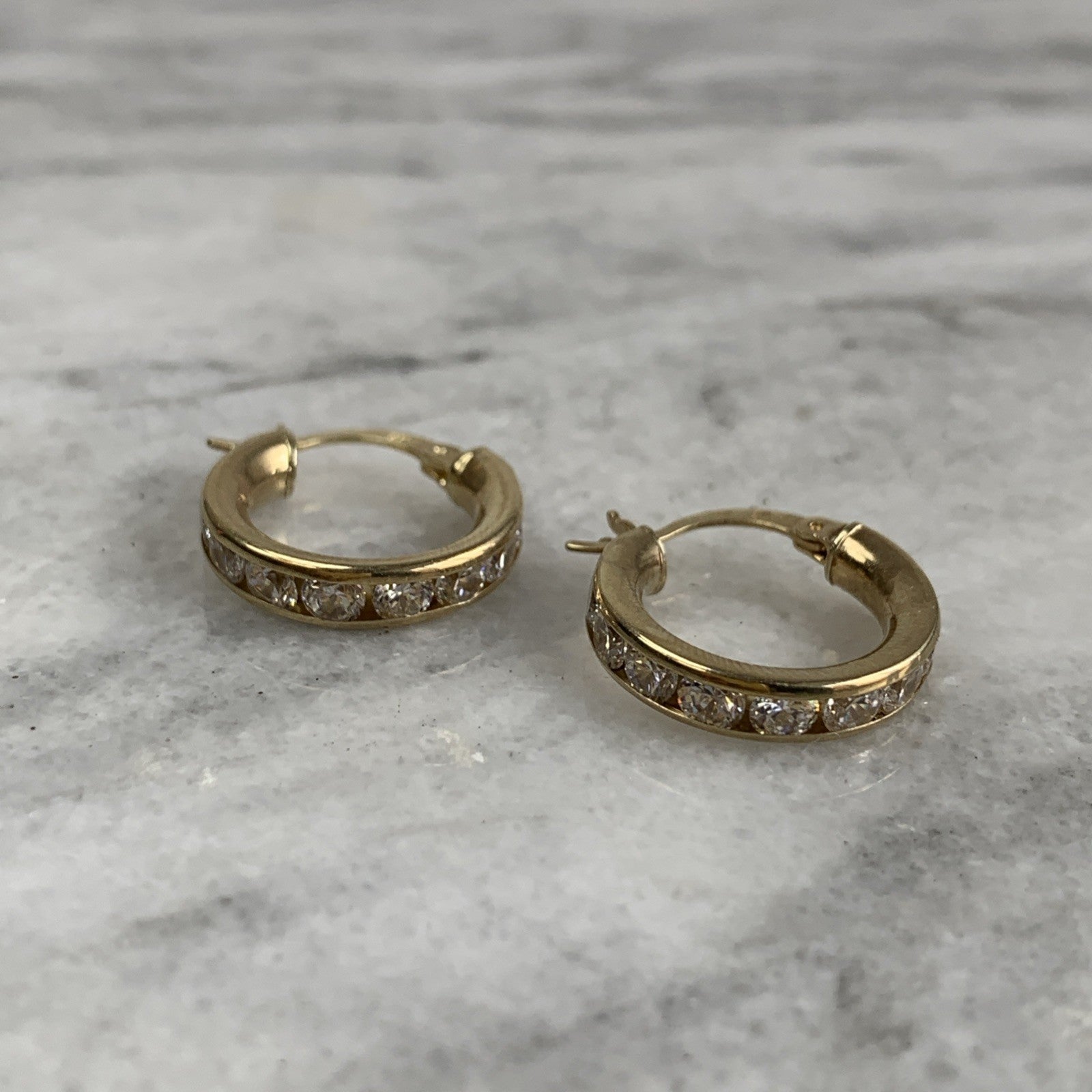 CZ Channel Set Hoop Earrings 9ct 9k 375 Yellow Gold