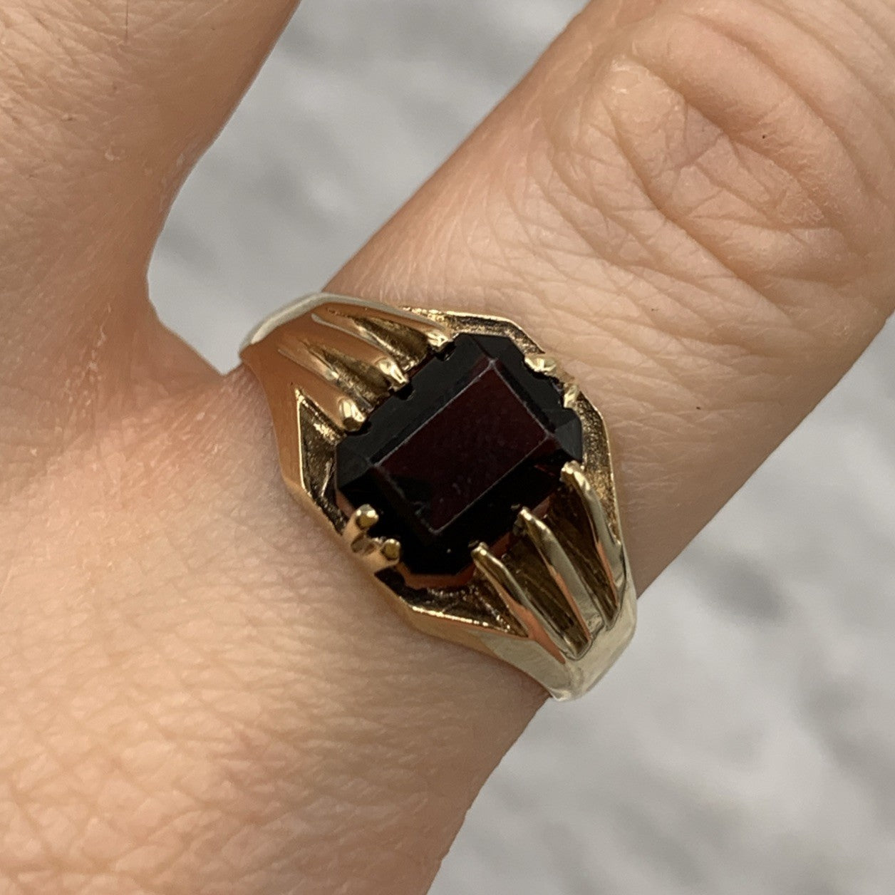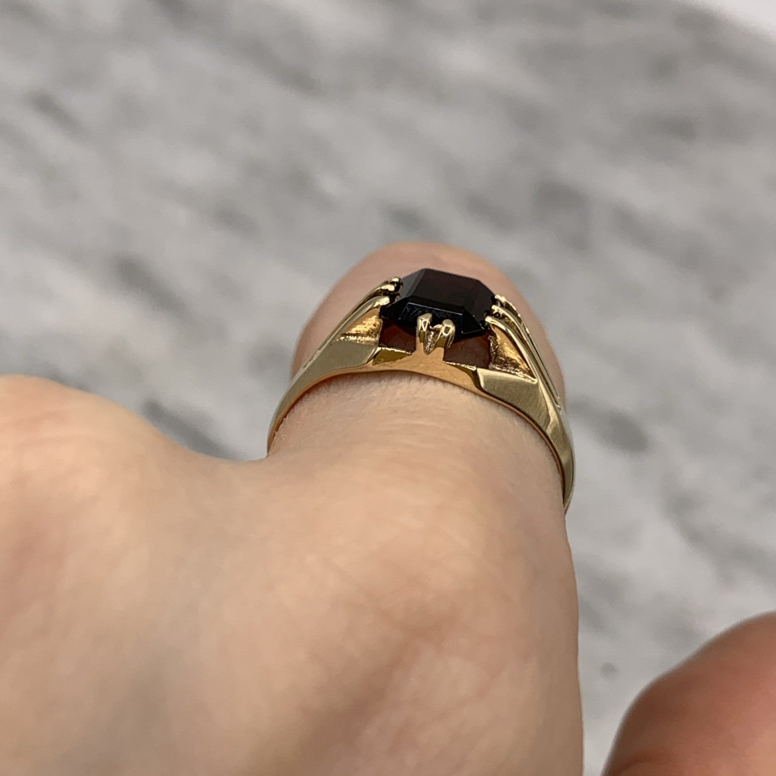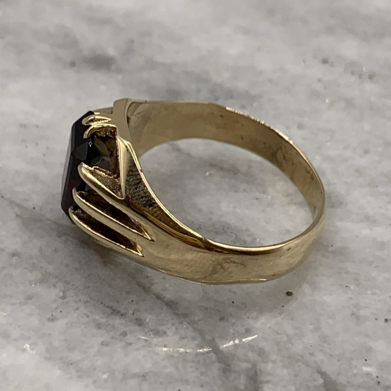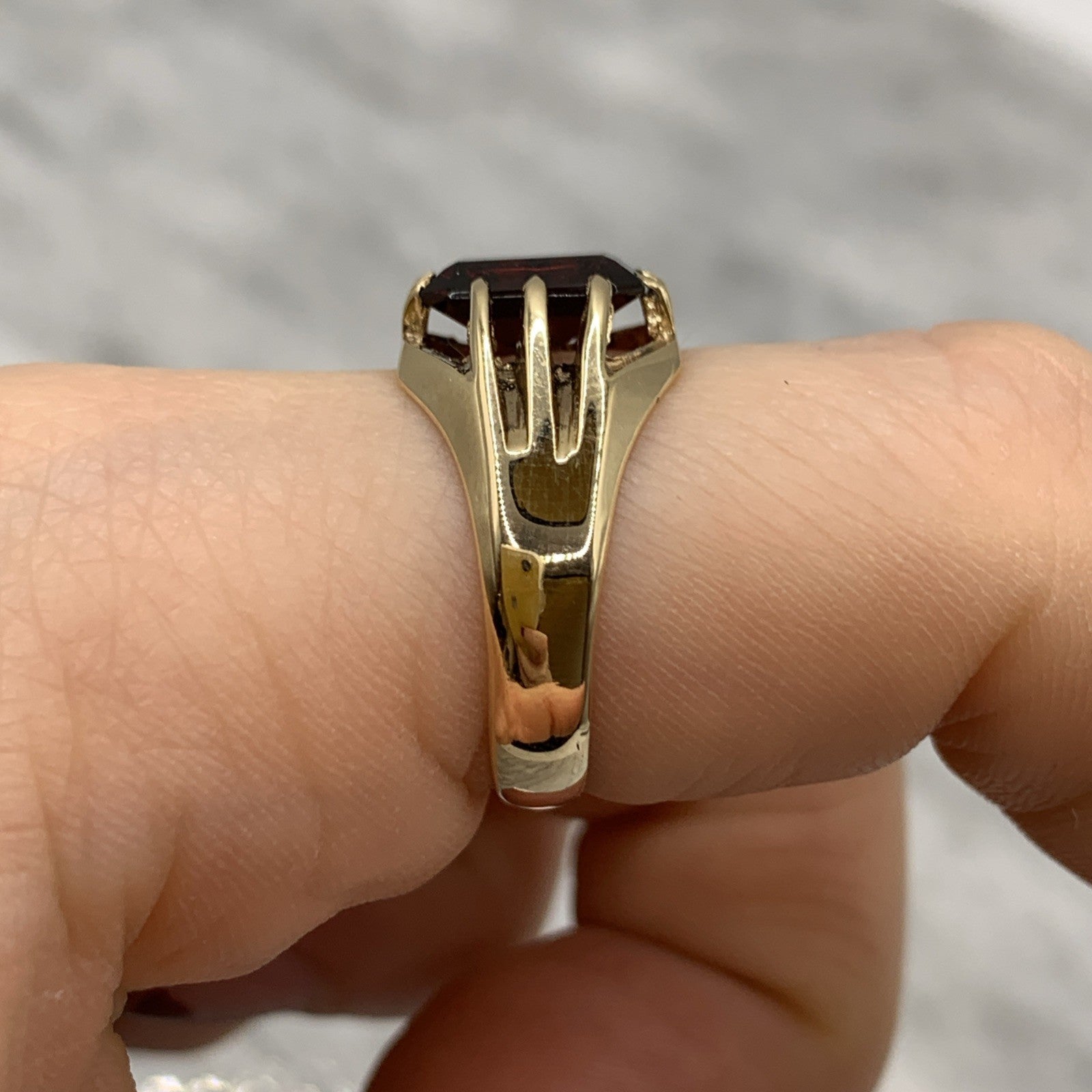 9 ct Gold Garnet Solitaire Emerald Cut Claw Ring 375 9k Yellow Gold - Size O