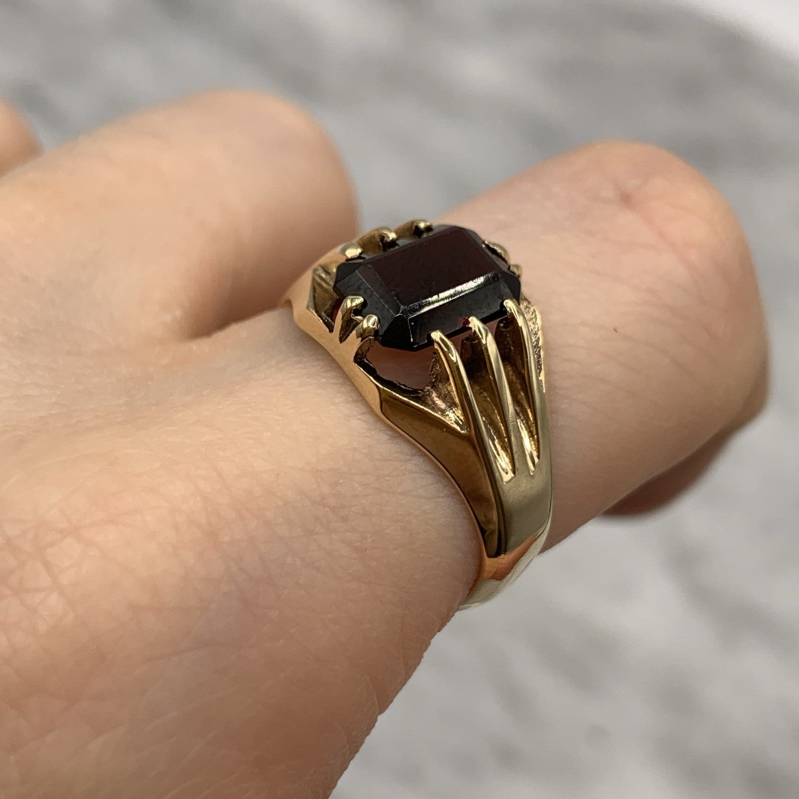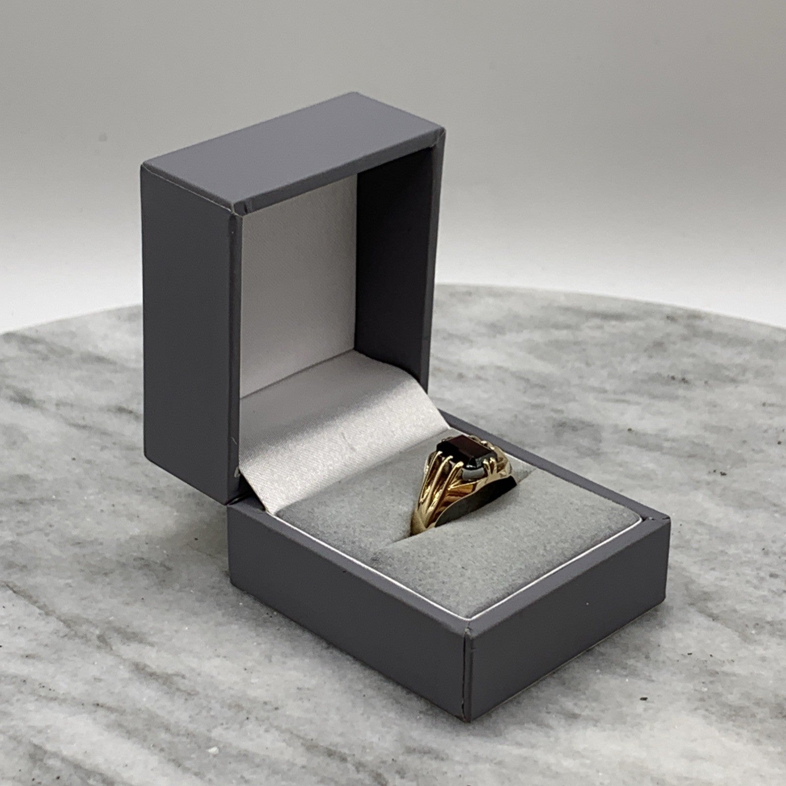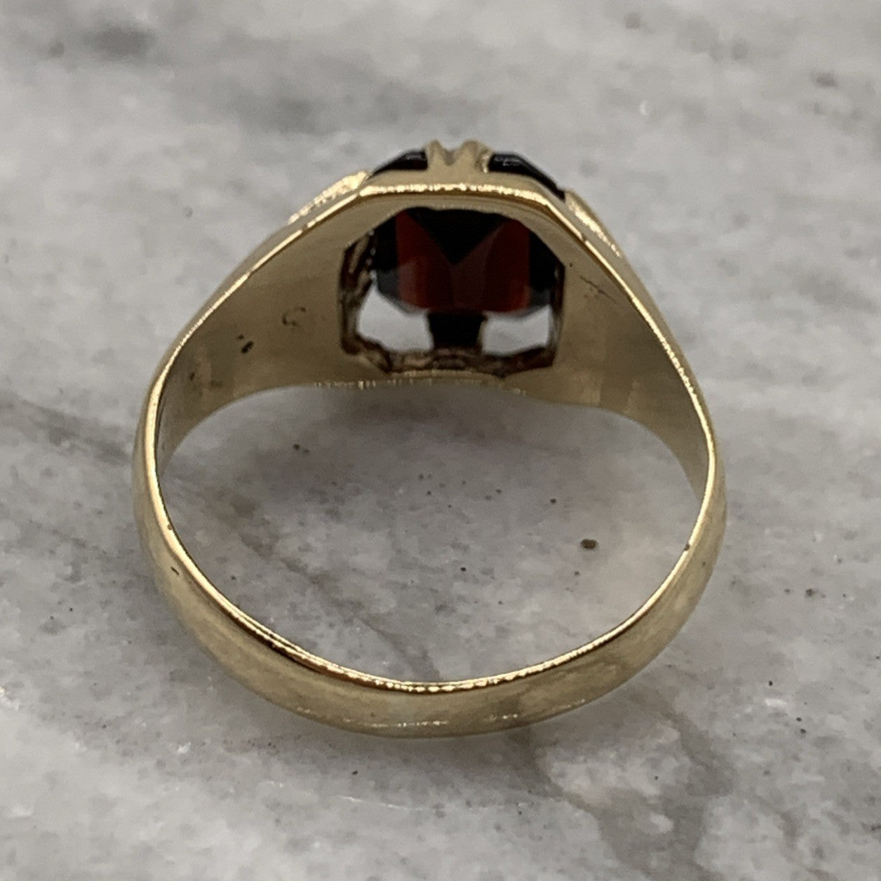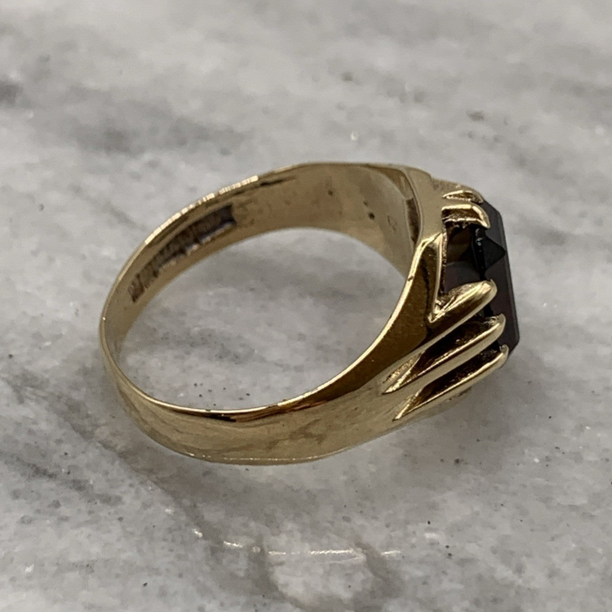 9 ct Gold Garnet Solitaire Emerald Cut Claw Ring 375 9k Yellow Gold - Size O