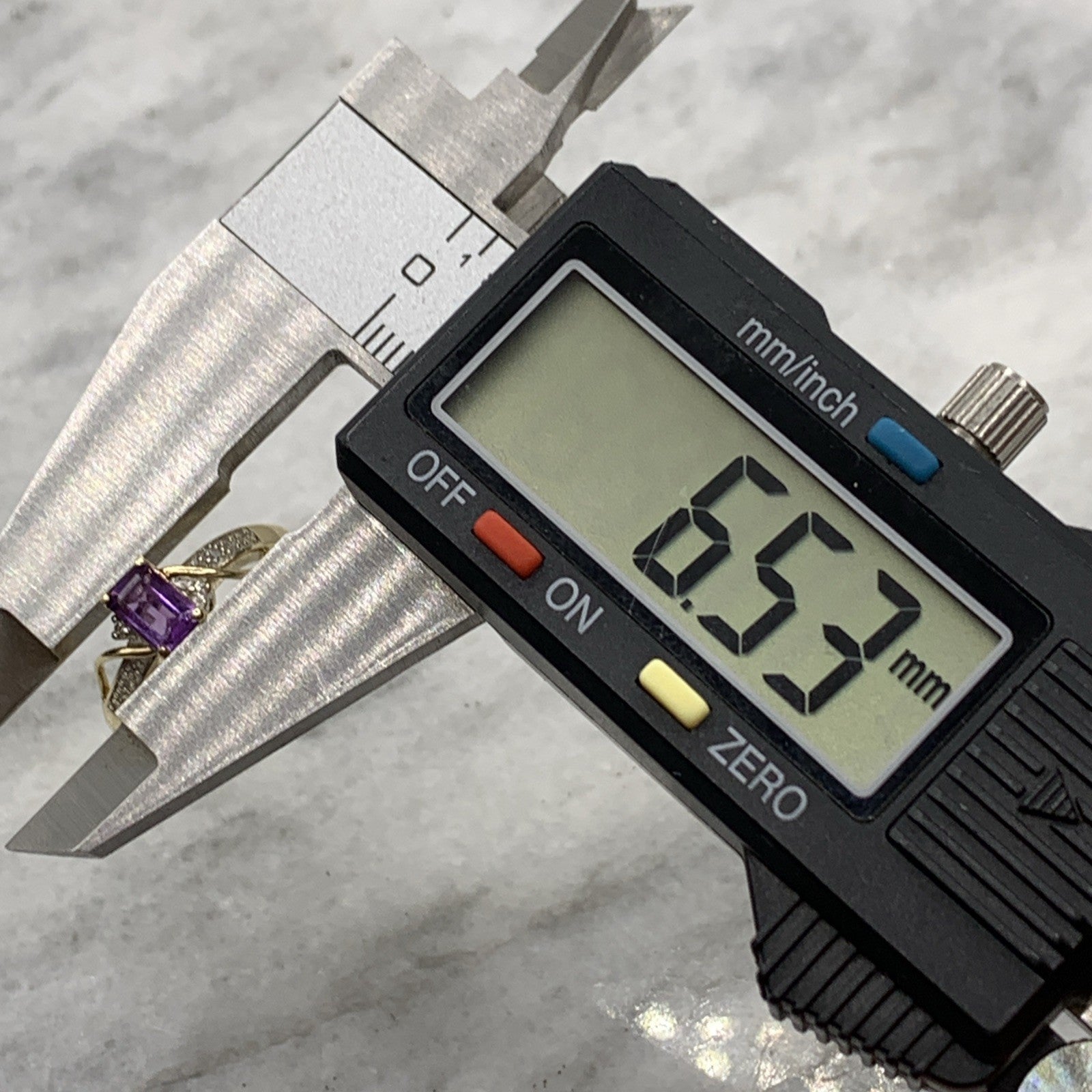 A stunning gold ring showcasing an emerald cut amethyst, accented by twist shoulder detailing and petite pave set diamonds.