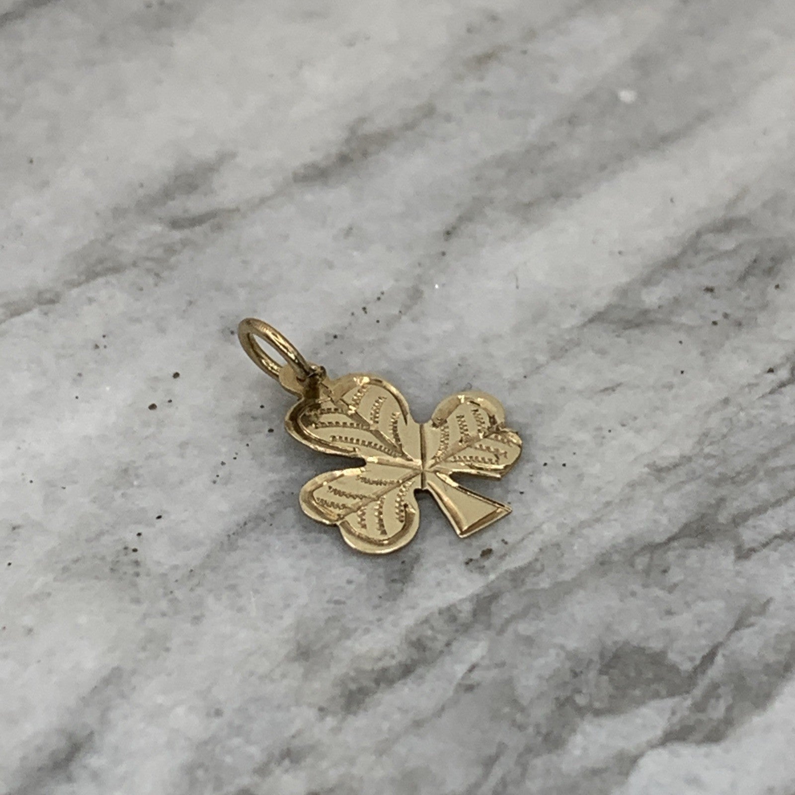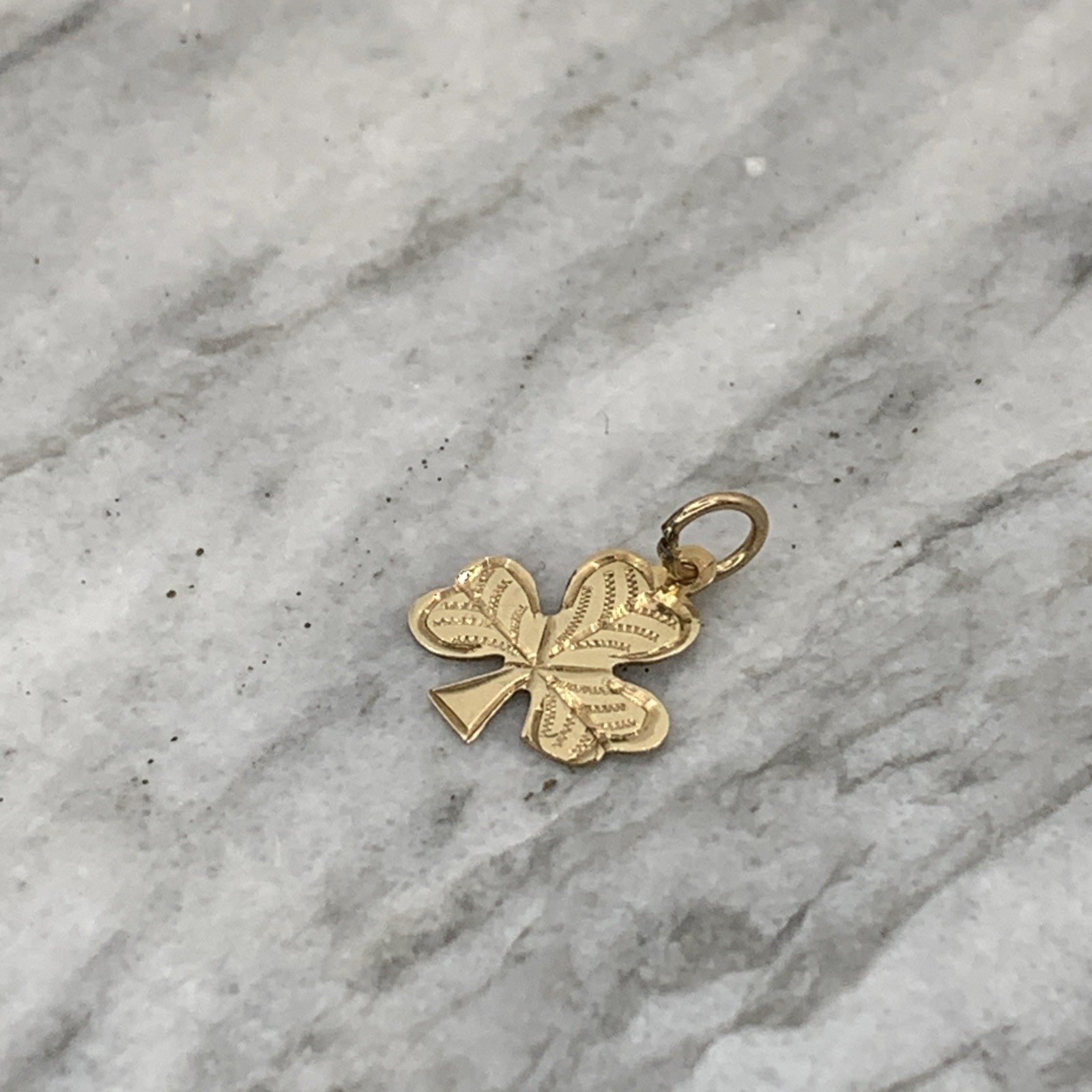 A lovely gold charm crafted in the shape of a four leaf clover. Perfect for charm bracelets.