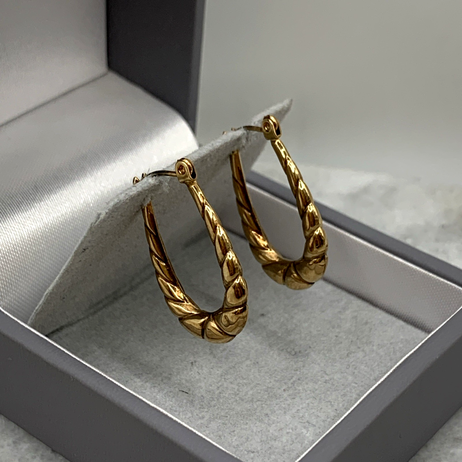 9 ct Gold Textured Horseshoe Hoop Earrings 9k 375 Yellow Gold
