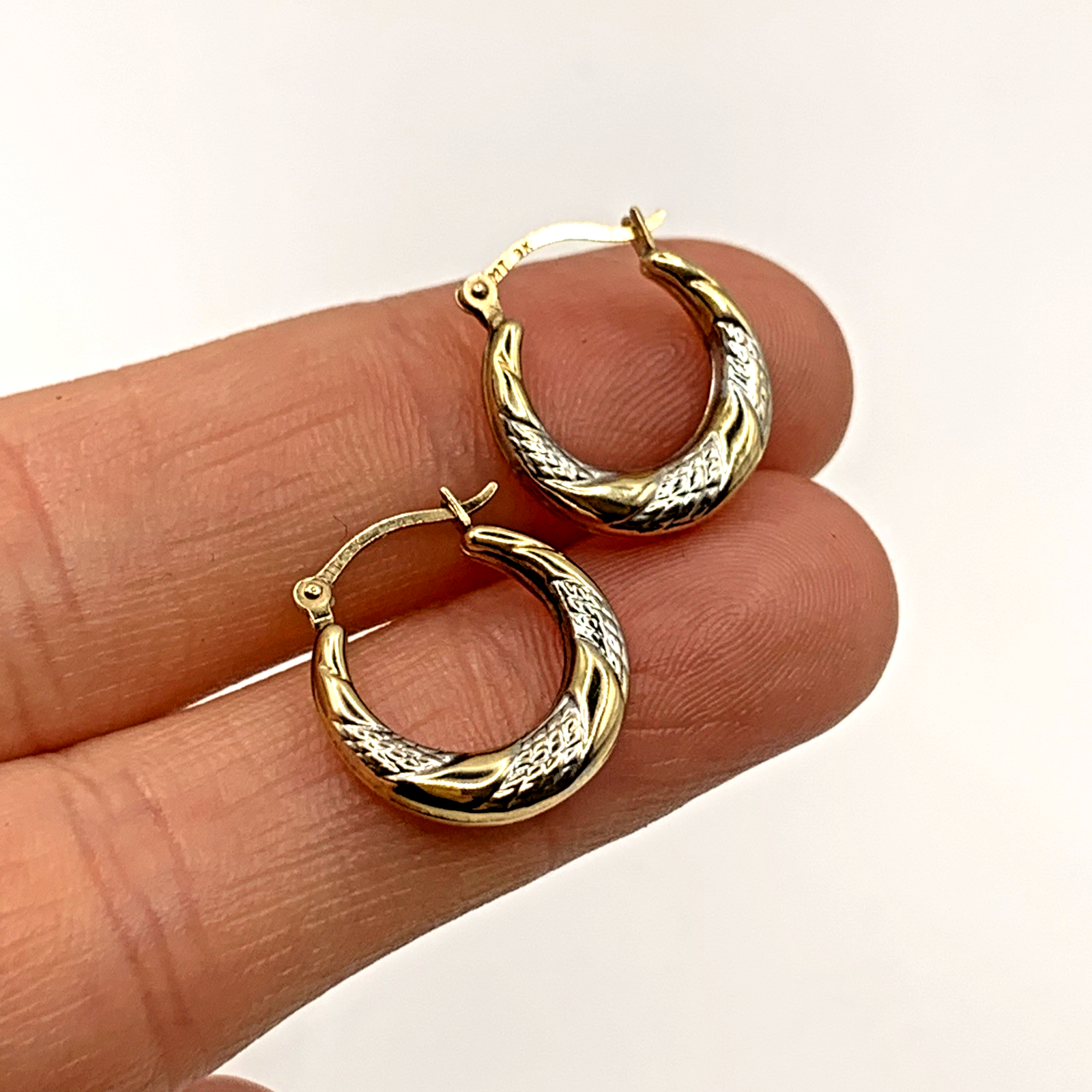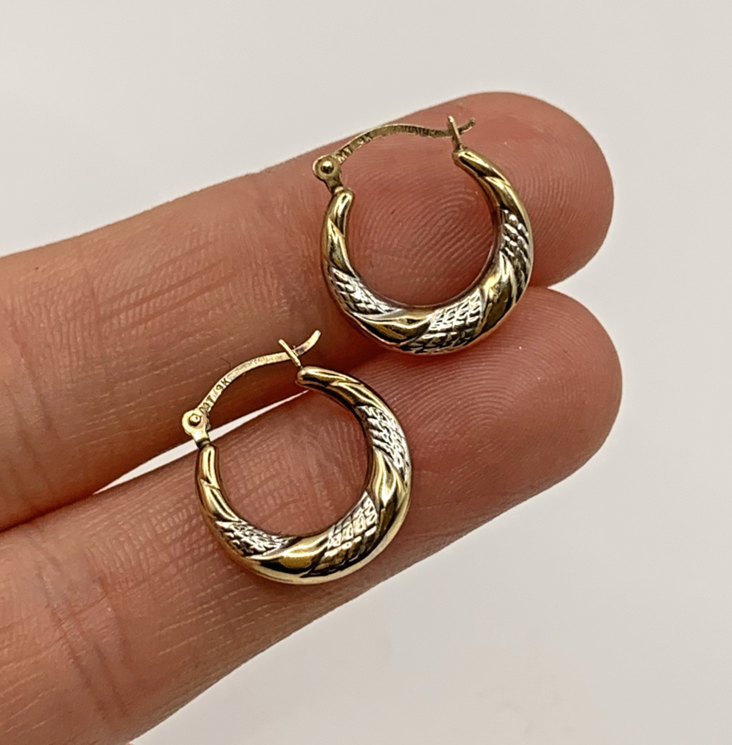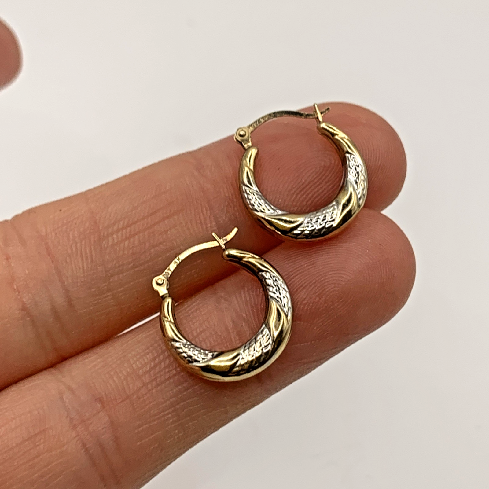 9 ct Gold Two Tone Gold Mini Huggie Hoop Earrings 9k 9ct Yellow Gold