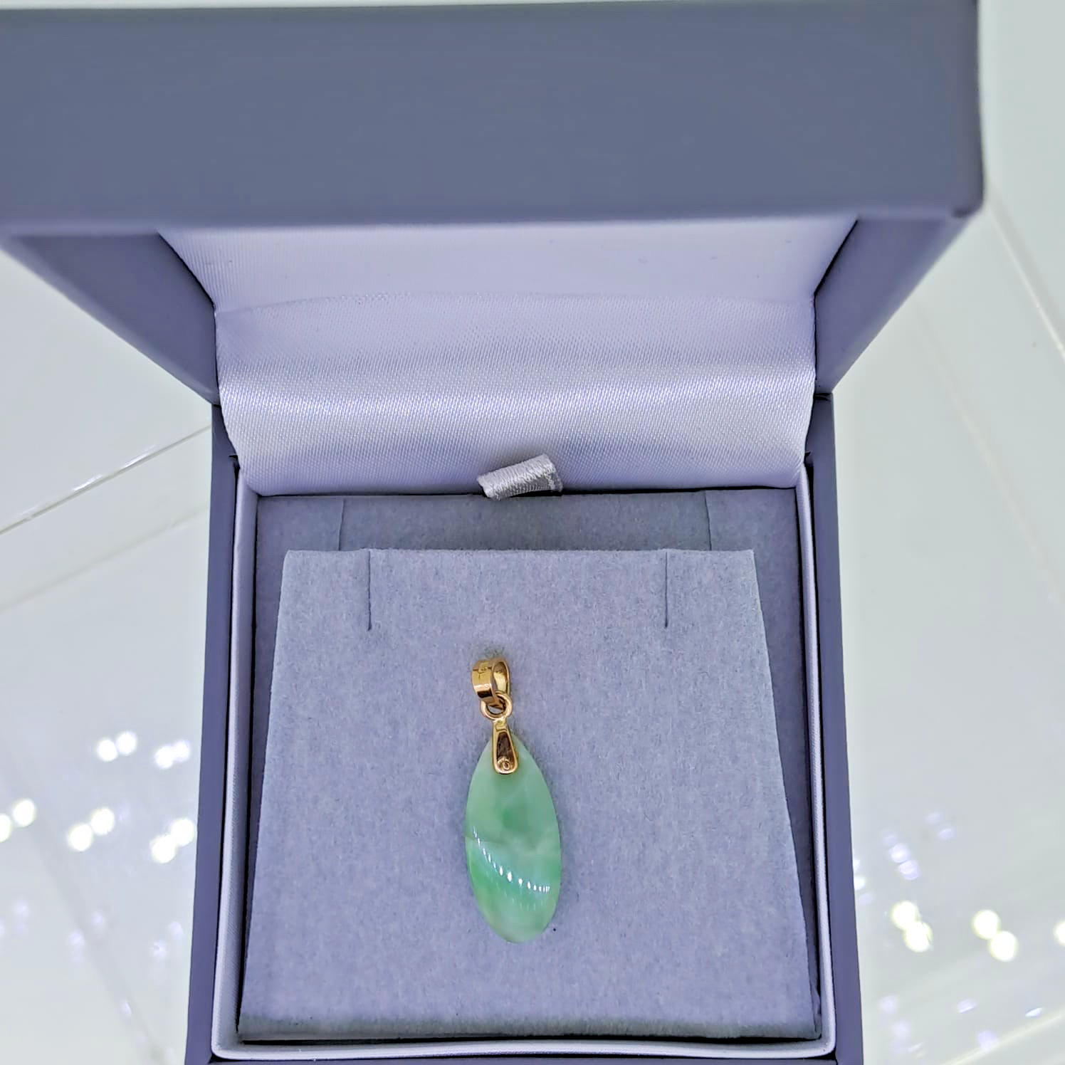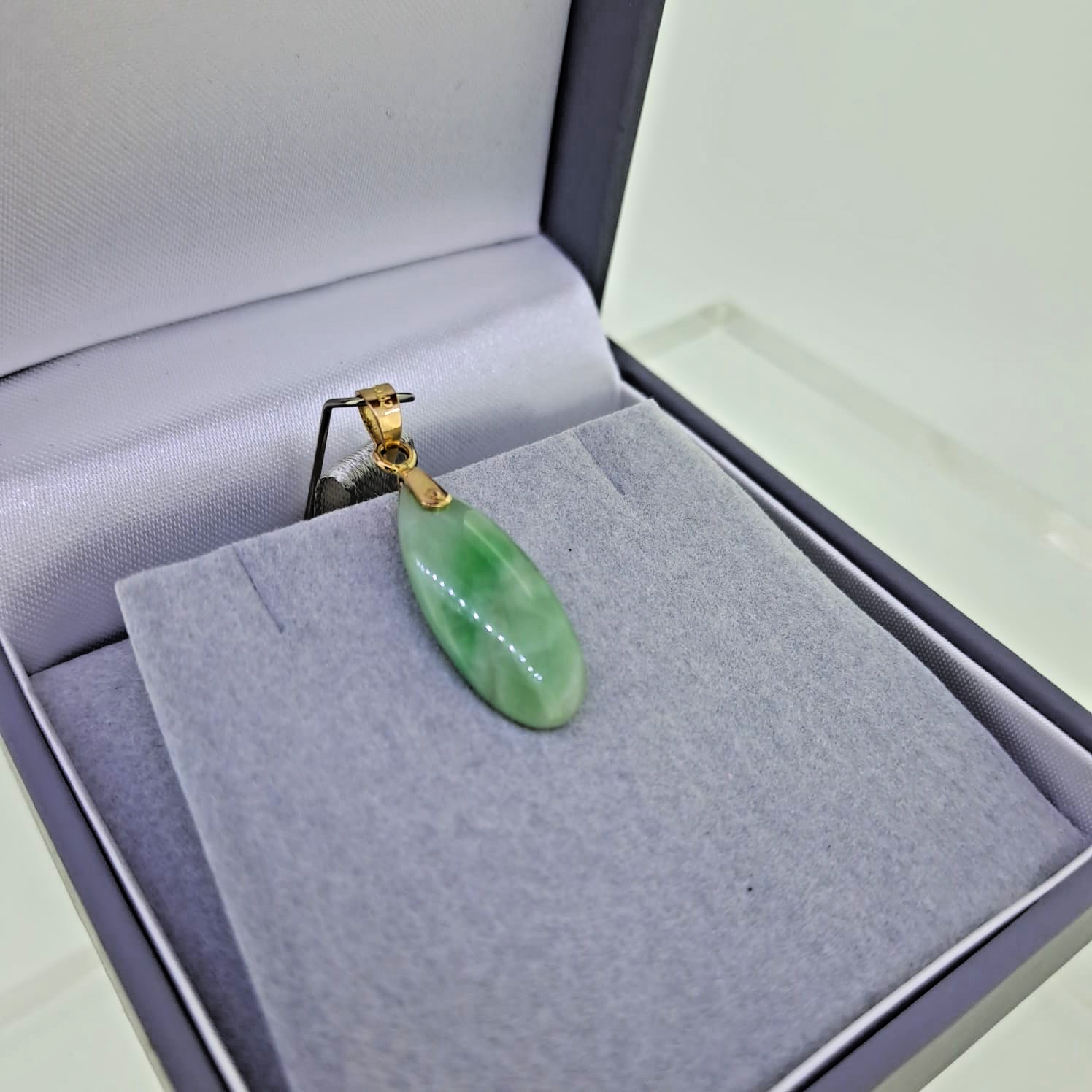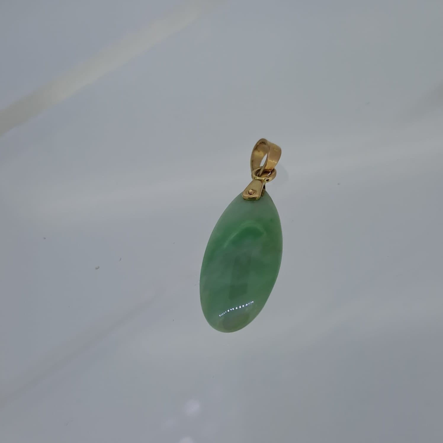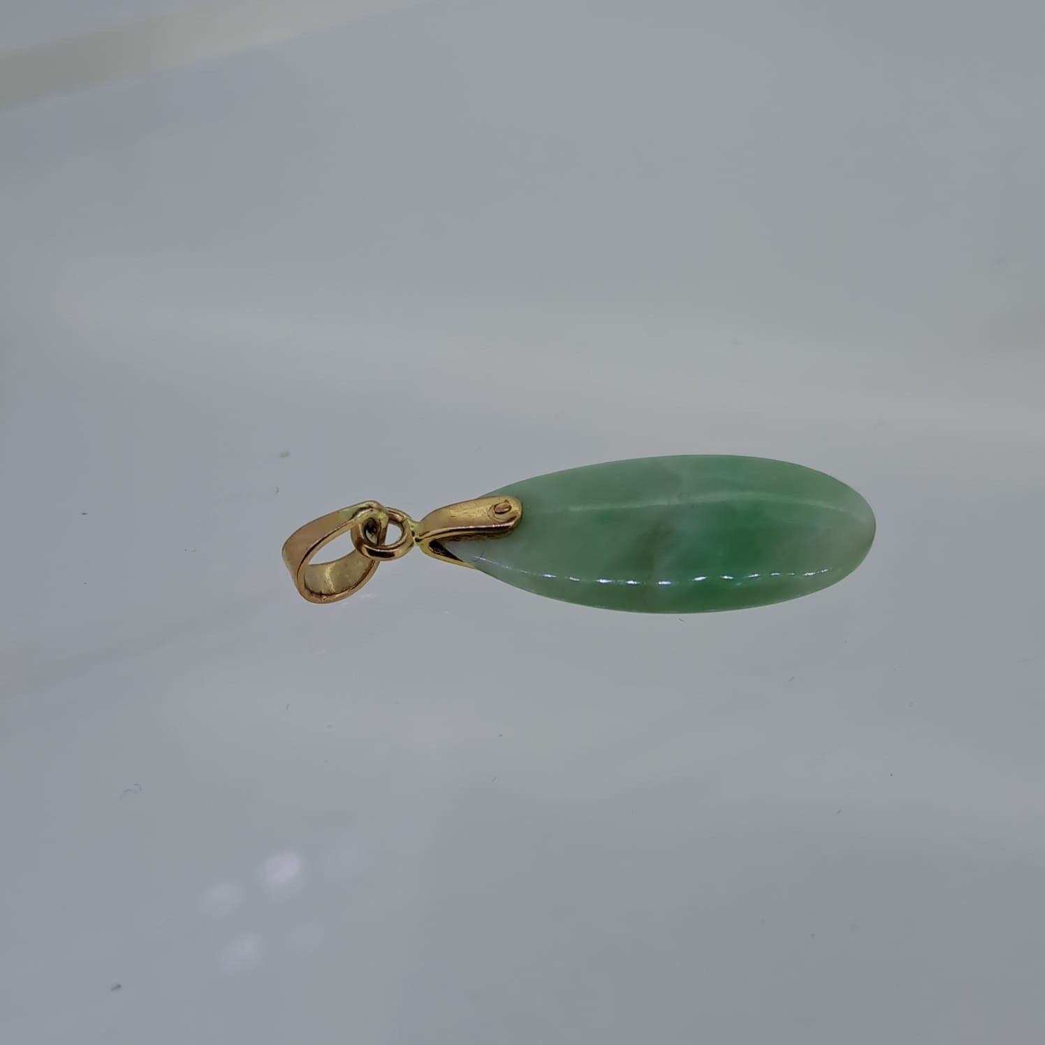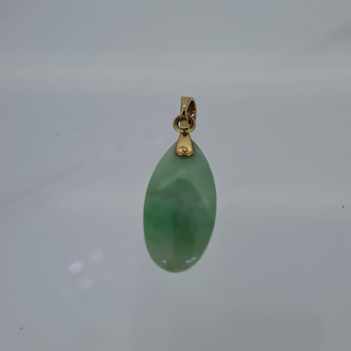 Jade Oval Drop Pendant 9ct 375 Yellow Gold