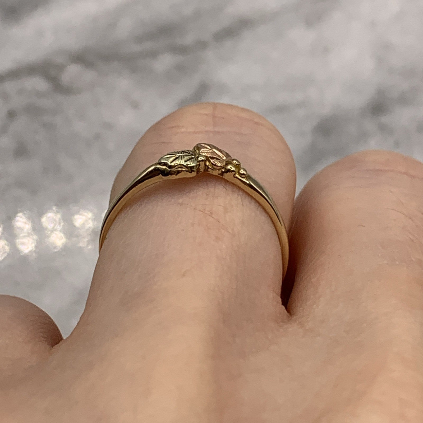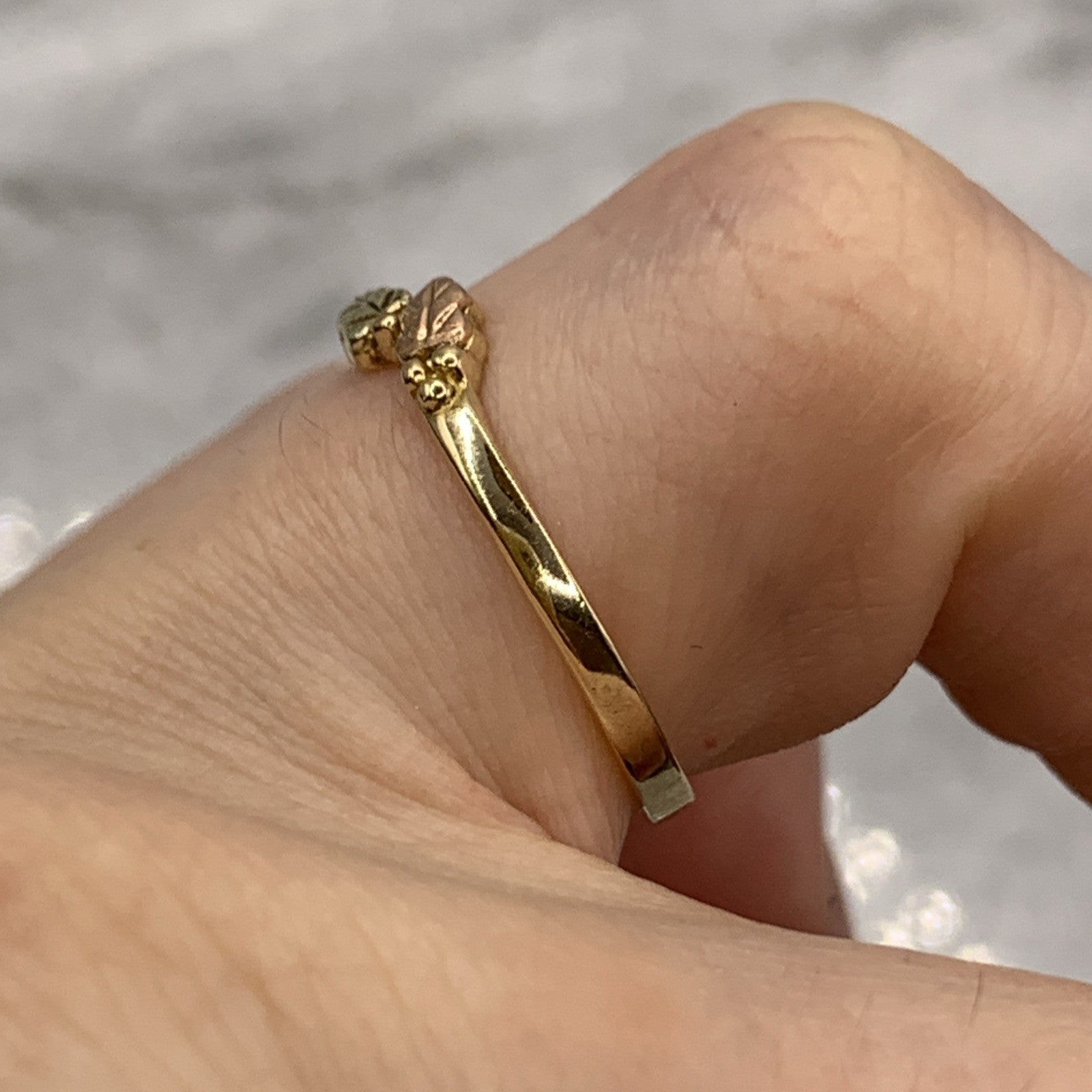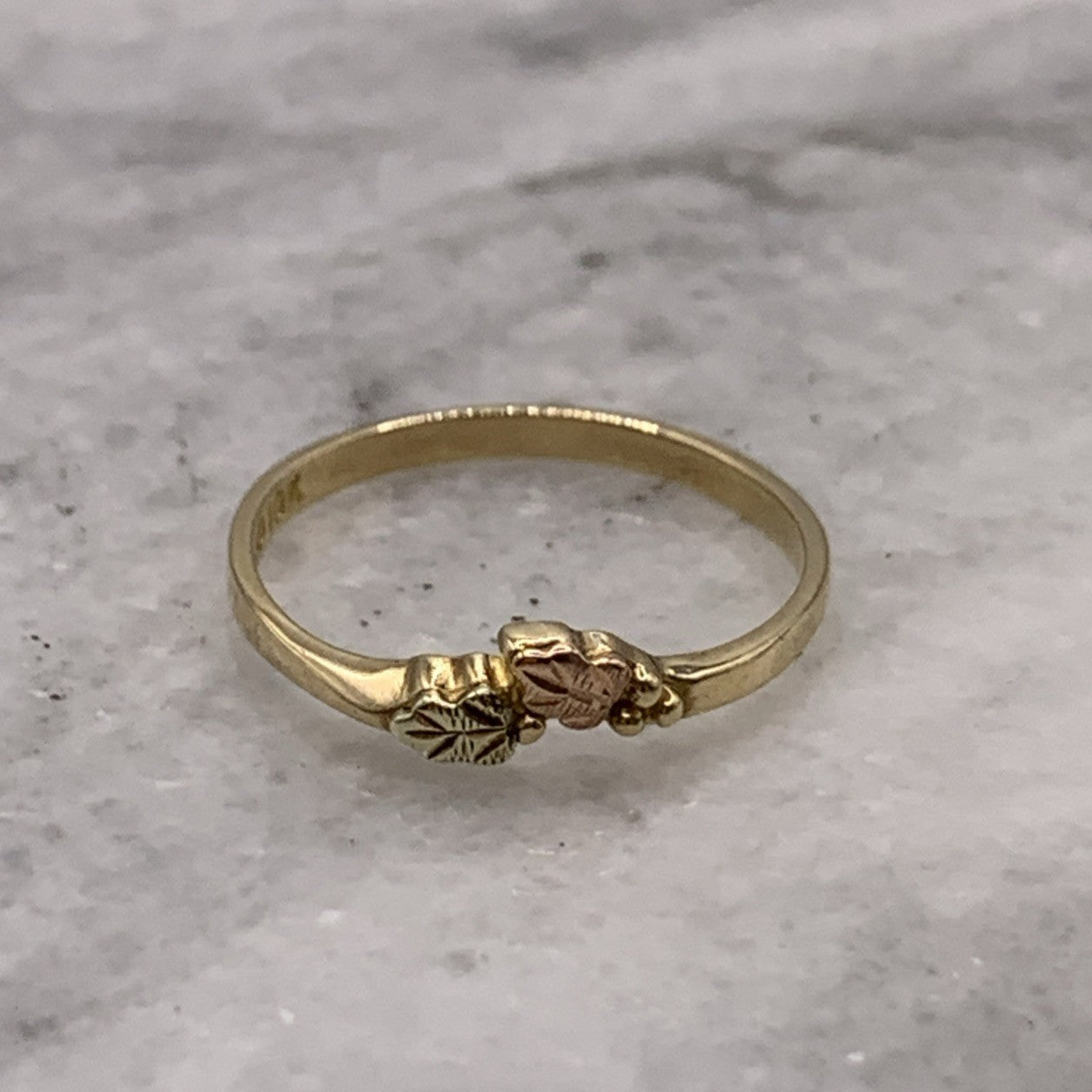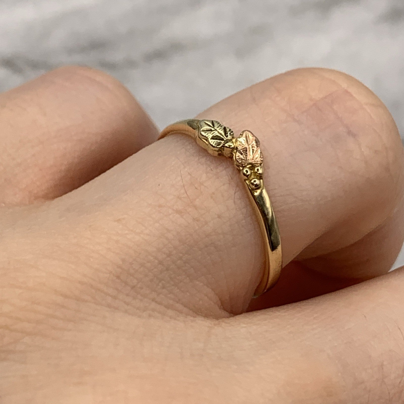 Two Tone Fine Leaf Ring 10ct 417 Yellow Gold - Size M