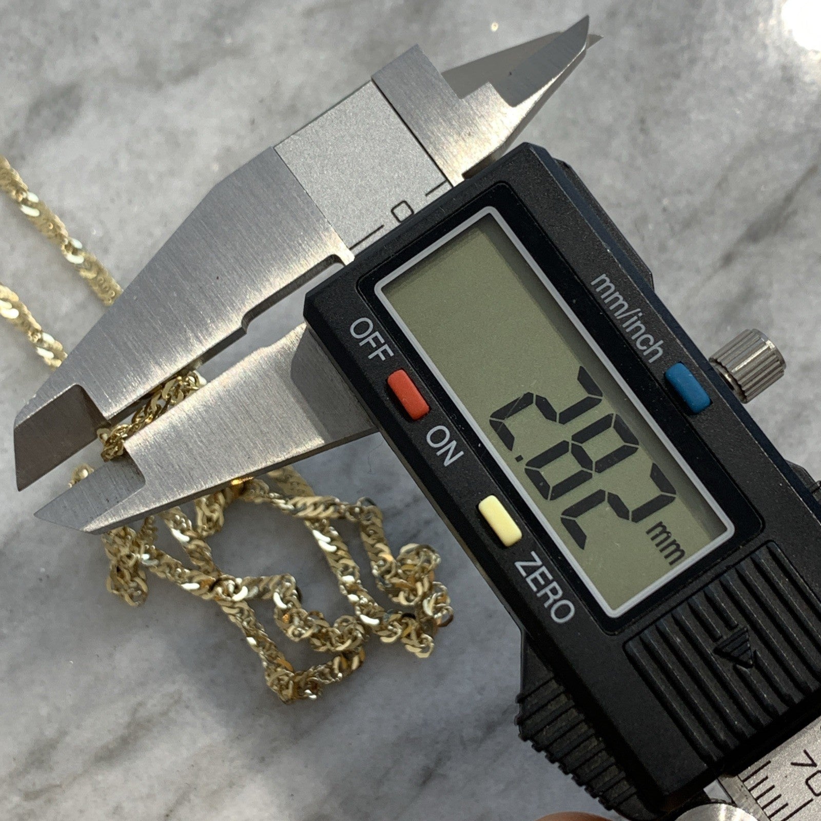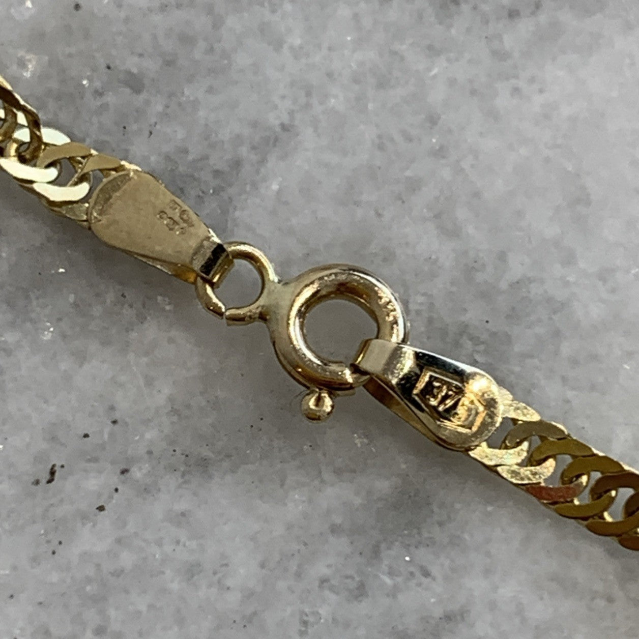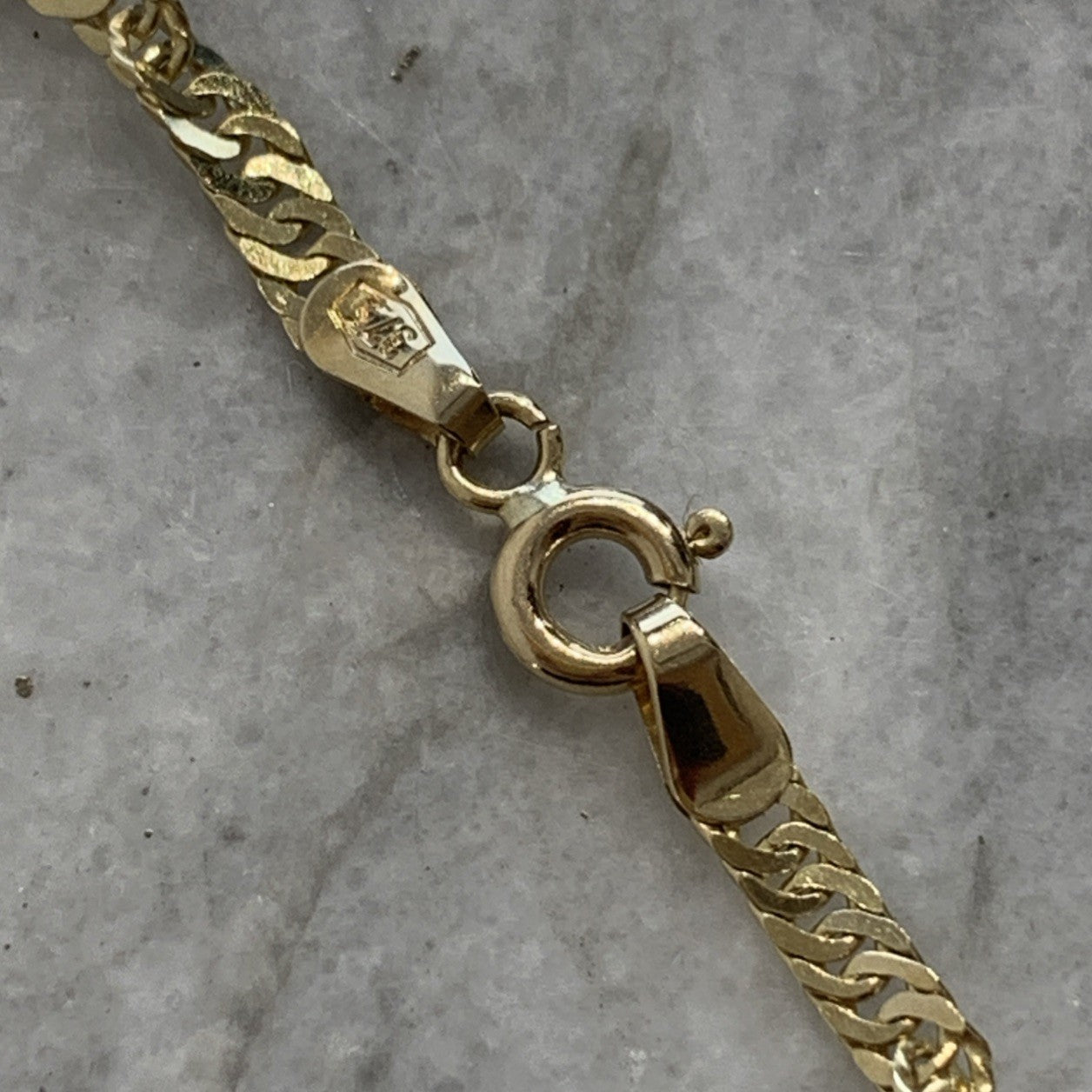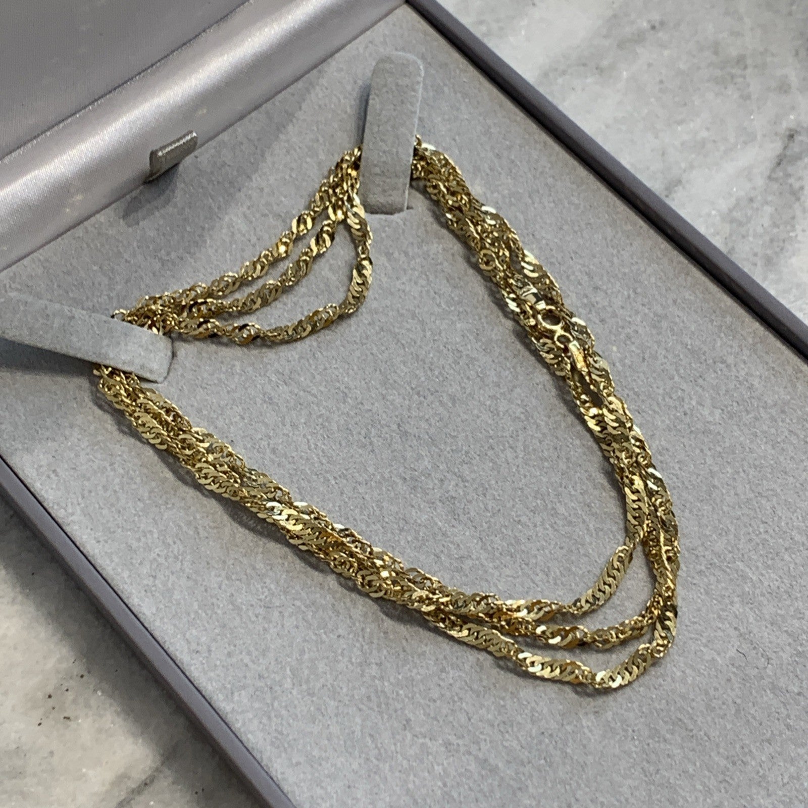 - A stunning gold Singapore twist style chain. Spring ring closure.