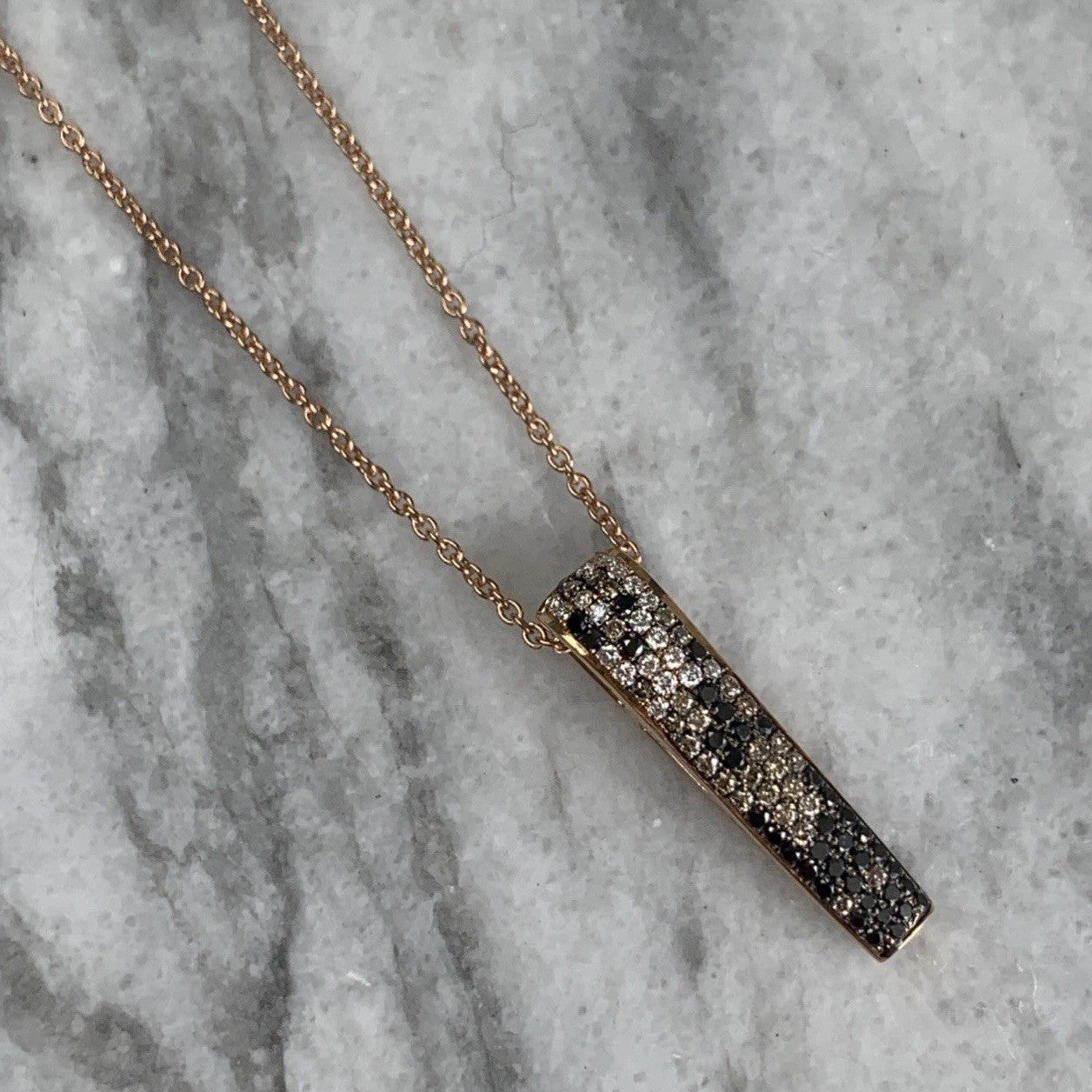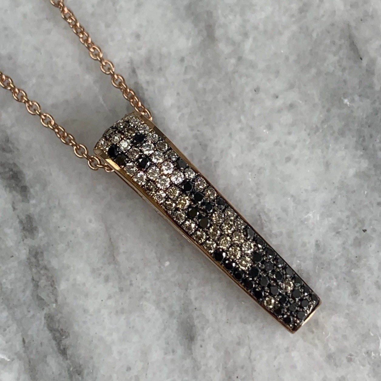 Black & White Diamond Pendant Fine Necklace 18ct 750 Rose Gold - 16" Inches