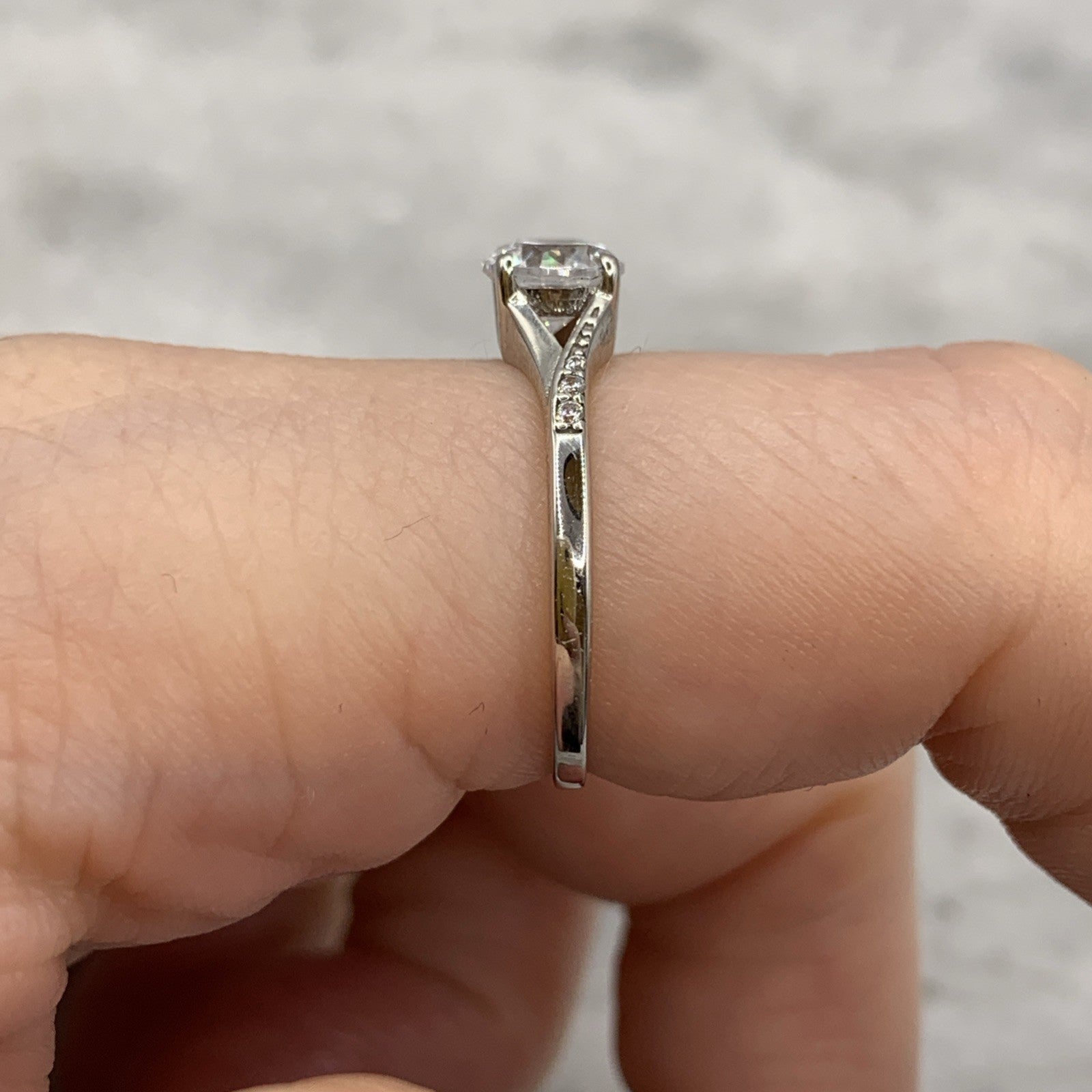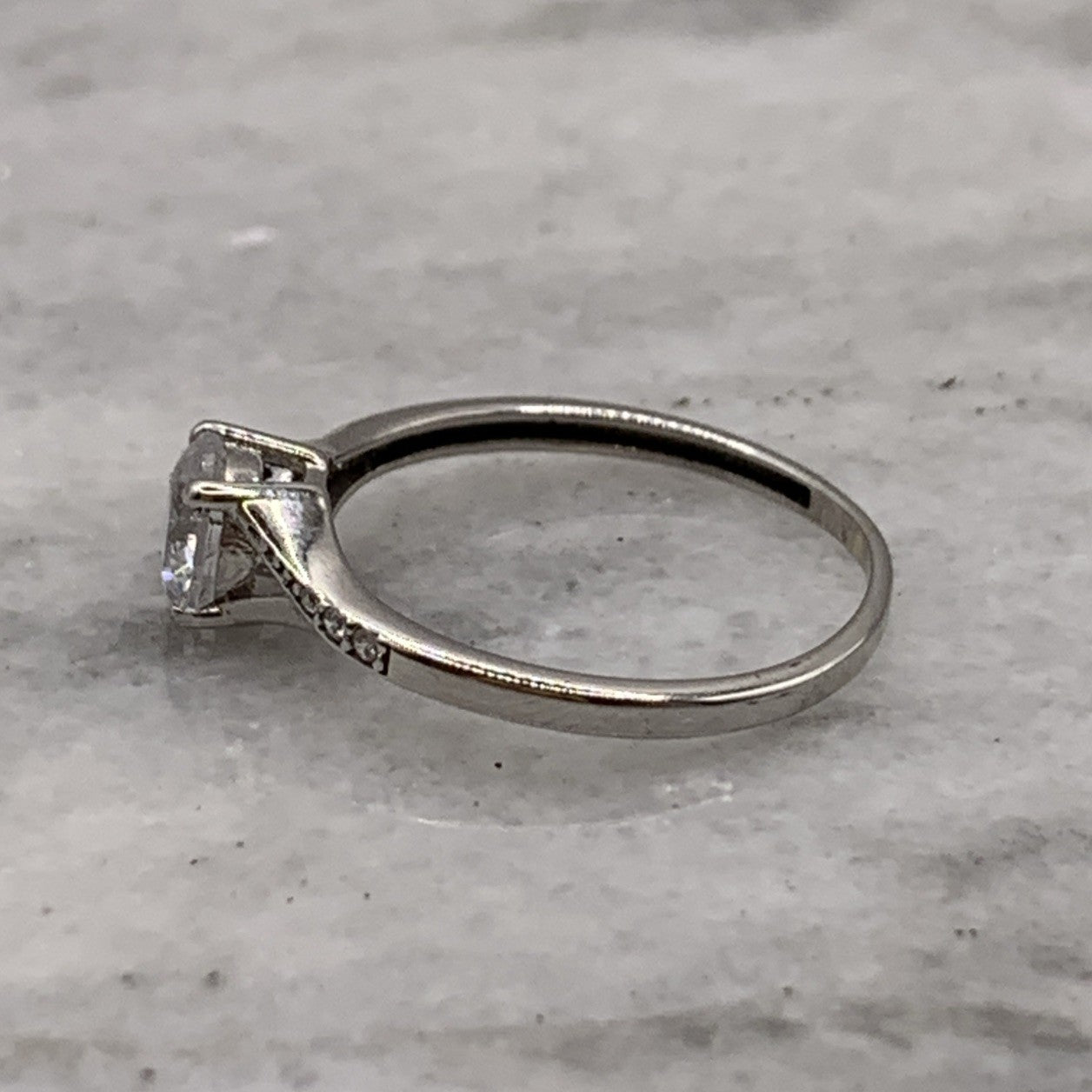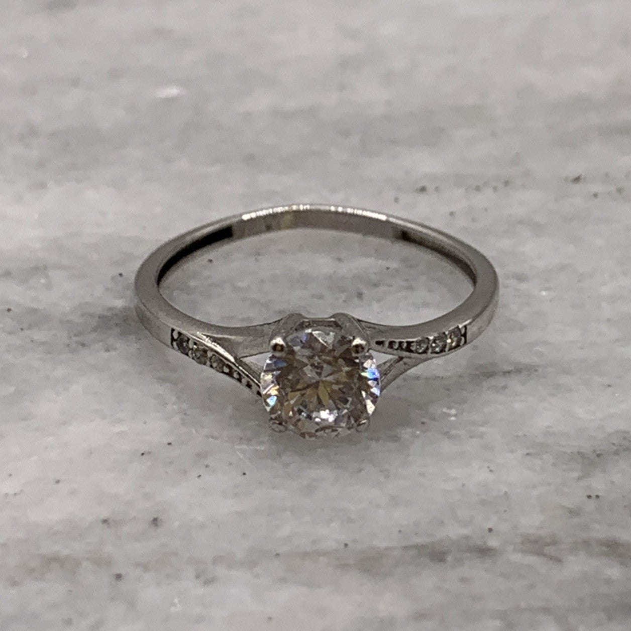 9 ct Gold CZ Ring Round Cut Twist Shoulder Accent White Gold - Size M 1/2