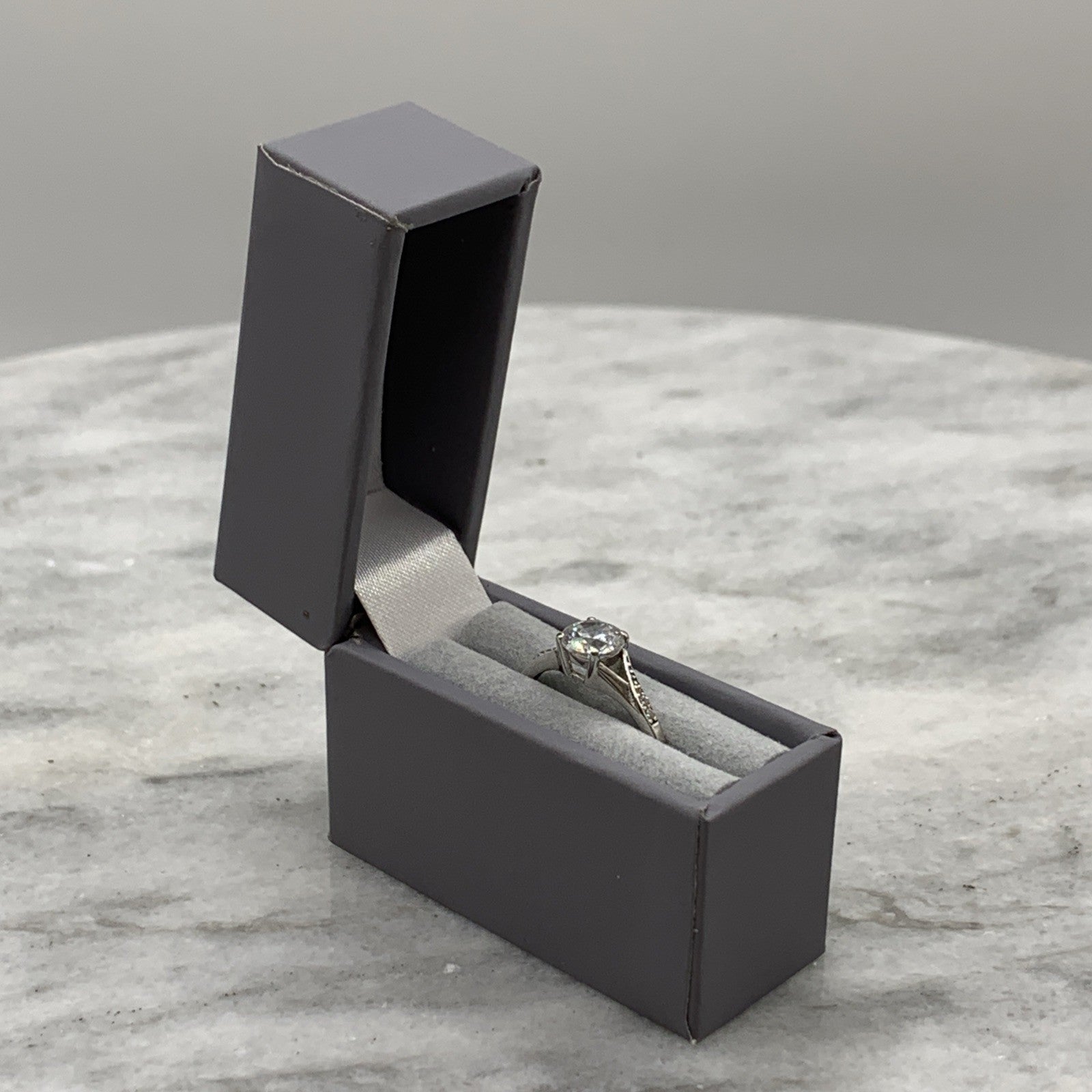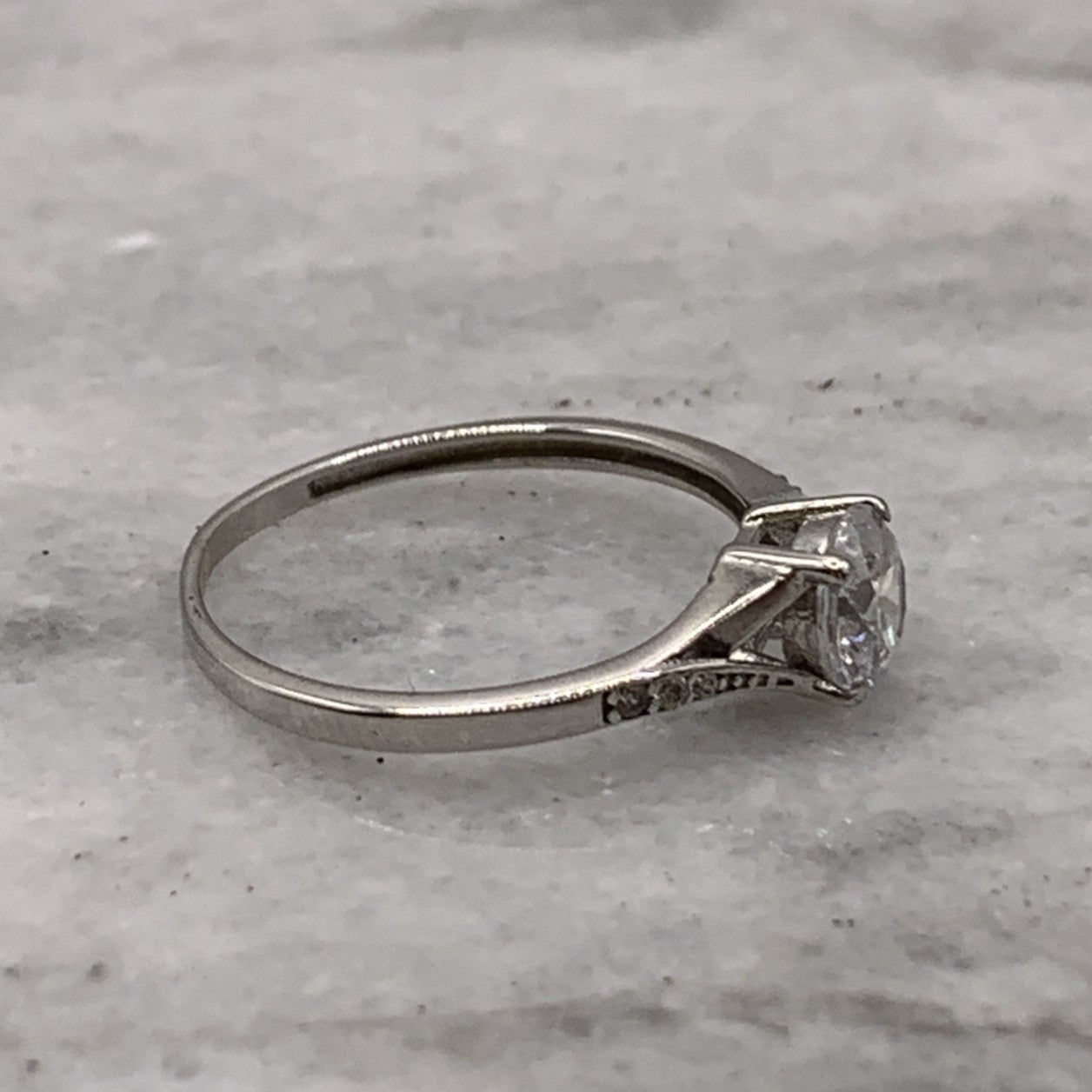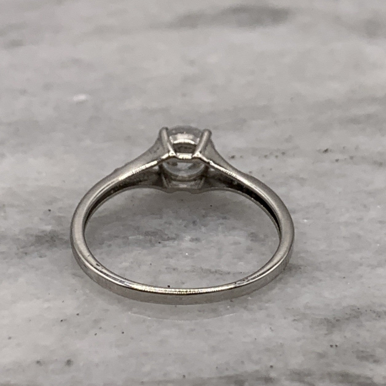 9 ct Gold CZ Ring Round Cut Twist Shoulder Accent White Gold - Size M 1/2