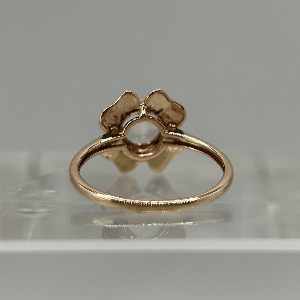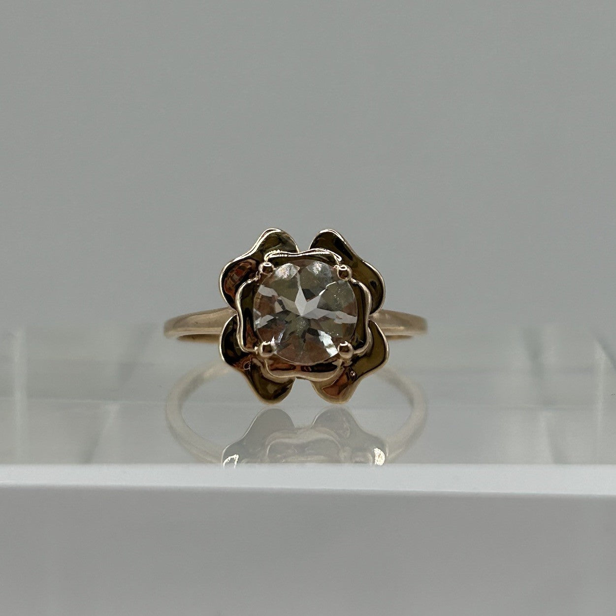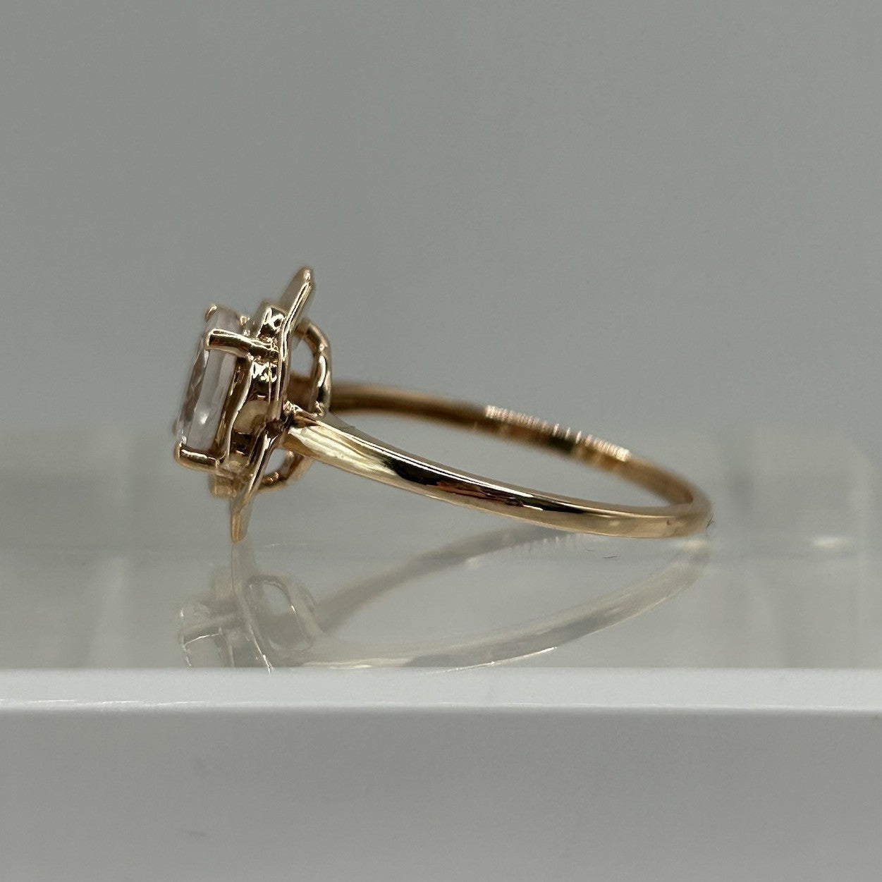 A stunning rose gold ring showcasing an ornate Alto Ligontha morganite gemstone at 1.13ct, accented by clover petal edge detailing.