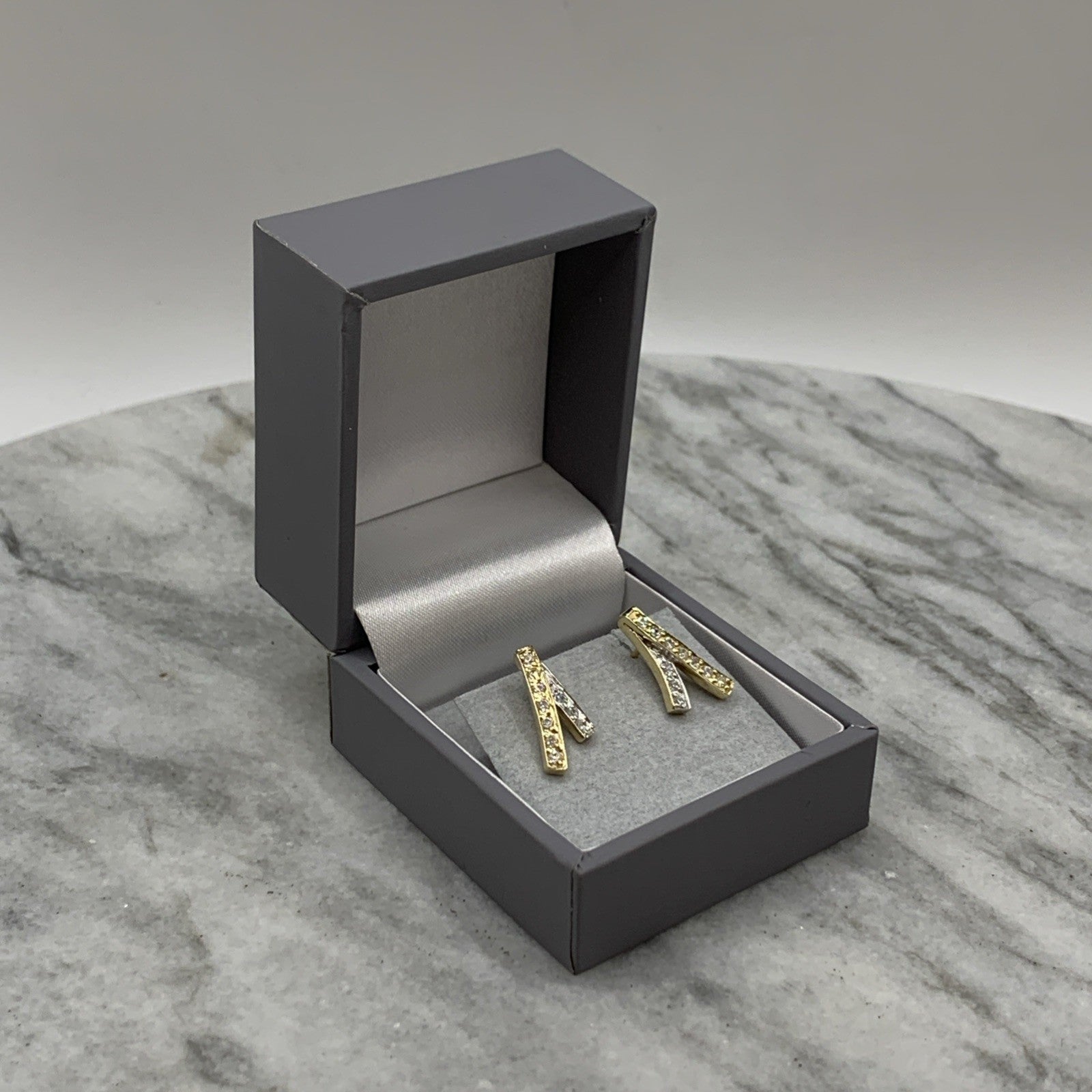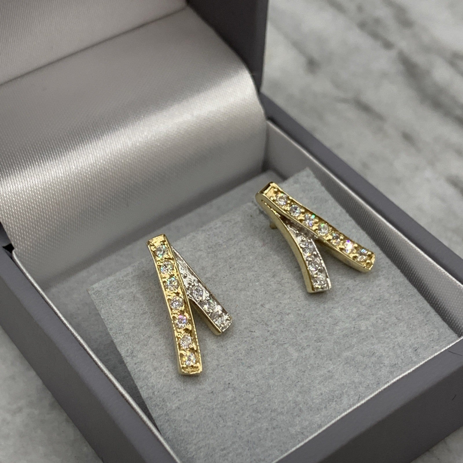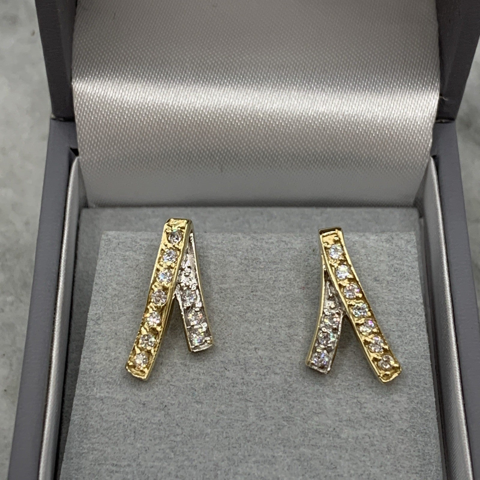 9ct Gold CZ Two Tone Ribbon Stud Earrings 375 Yellow Gold