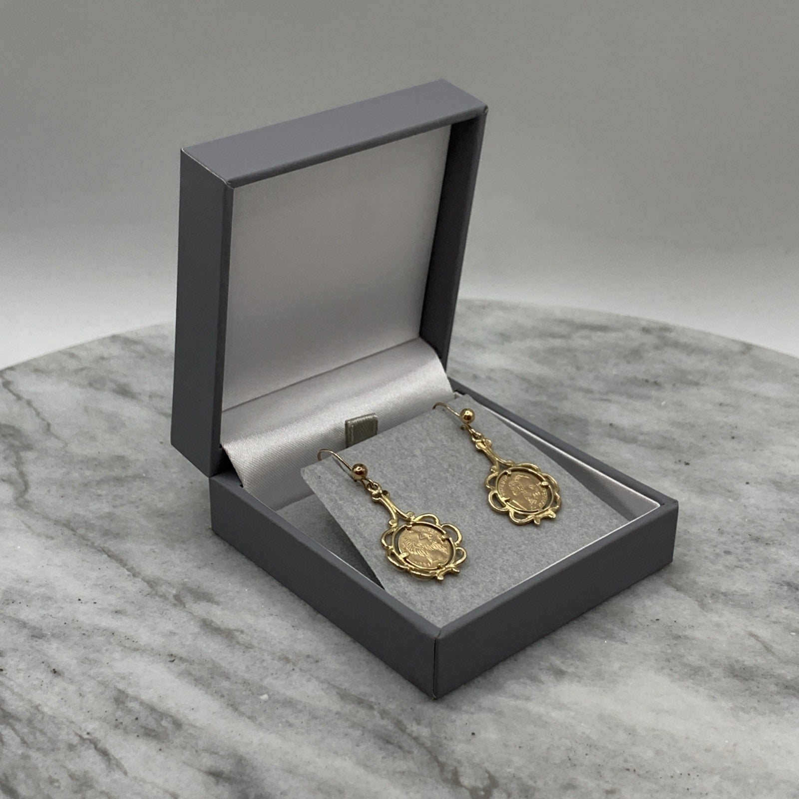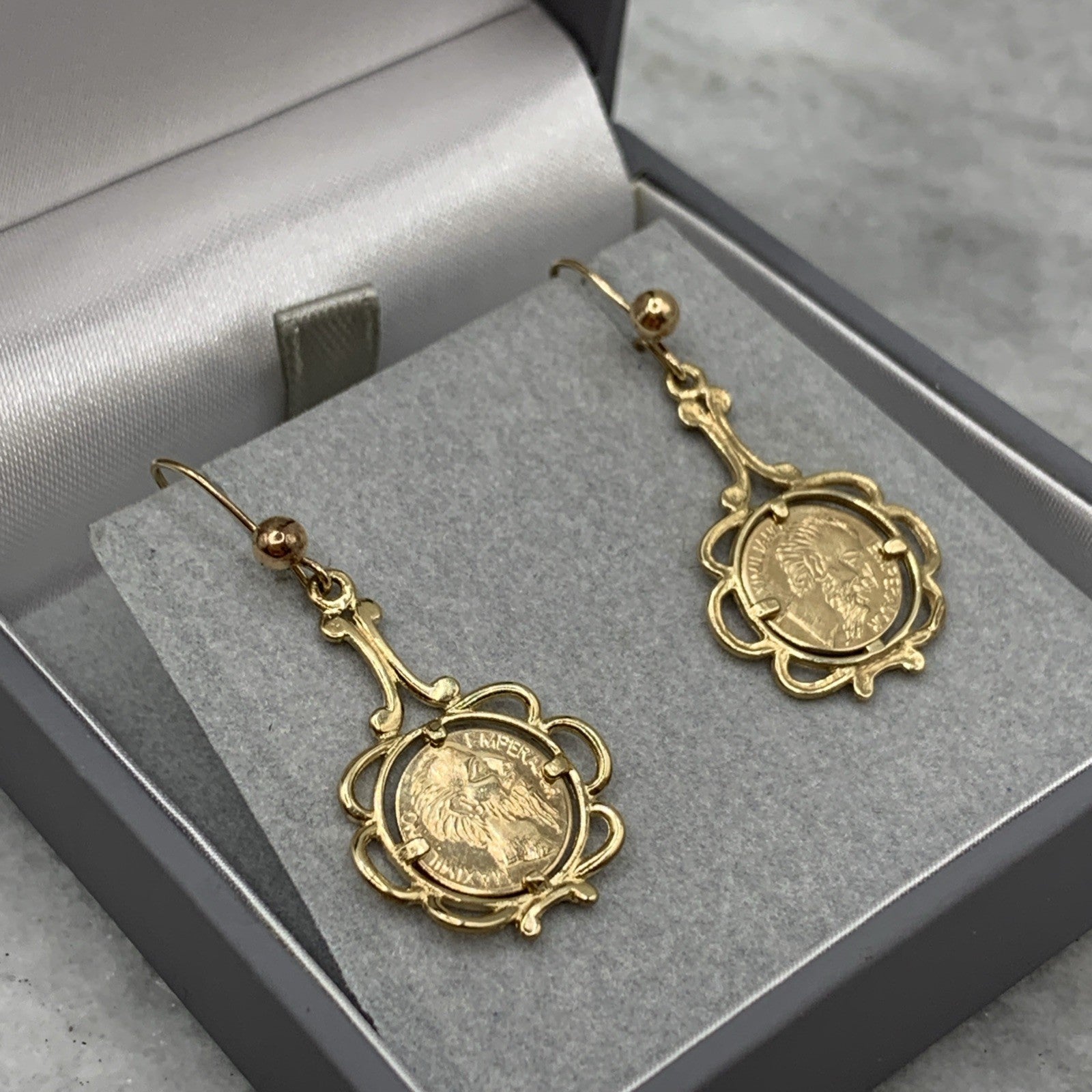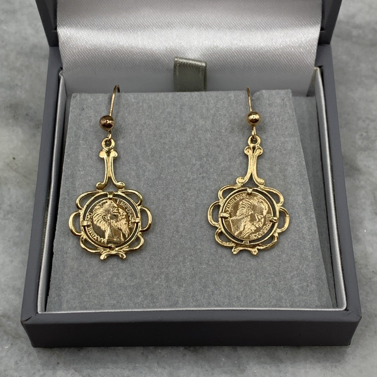 9ct Gold Maximiliano Emperador Coin Kidney Wire Earrings 375 Yellow Gold