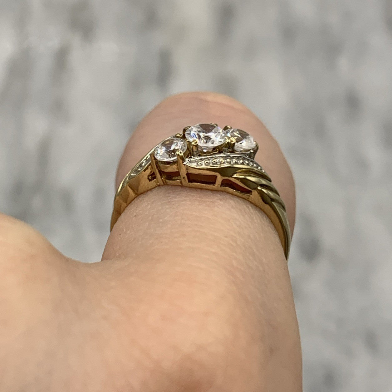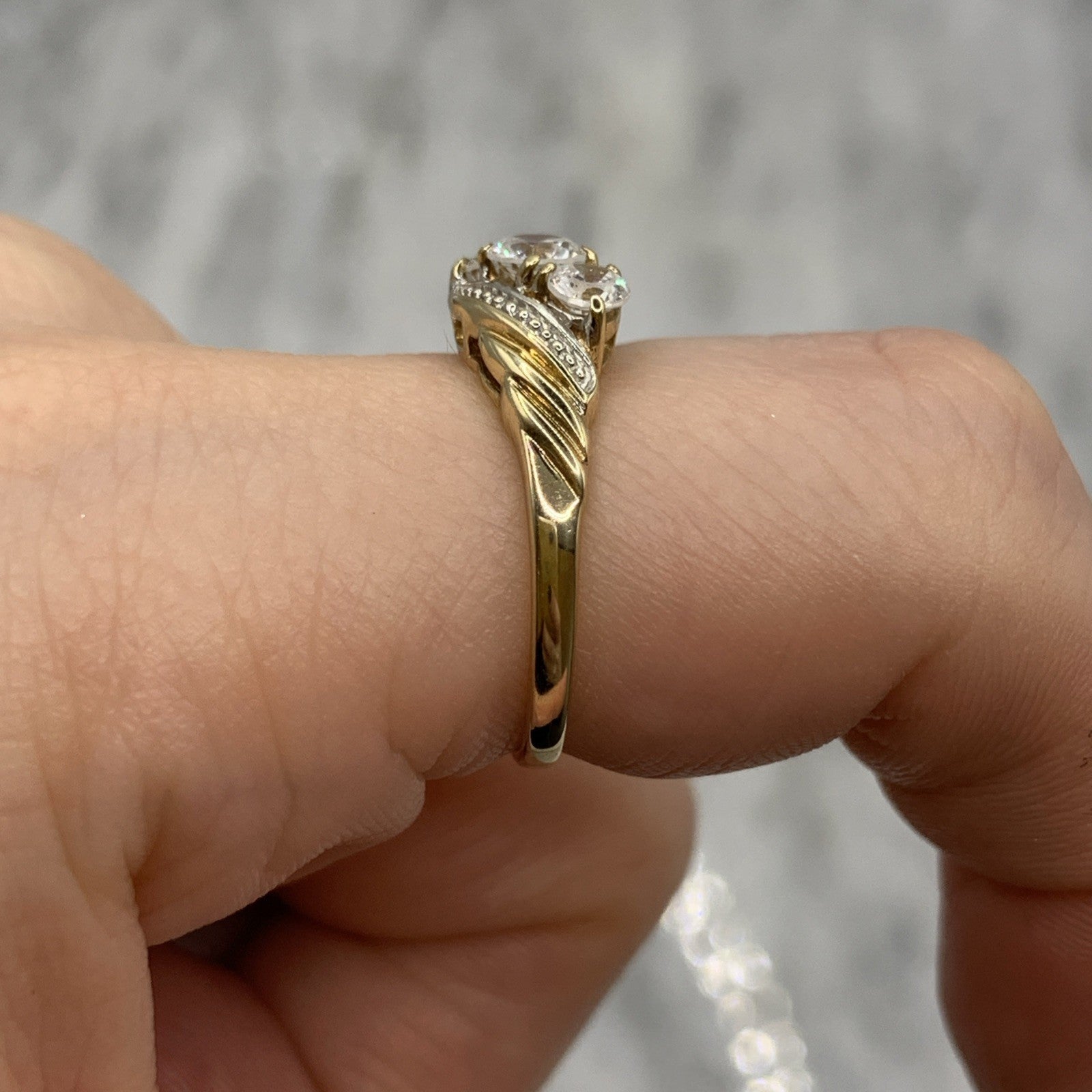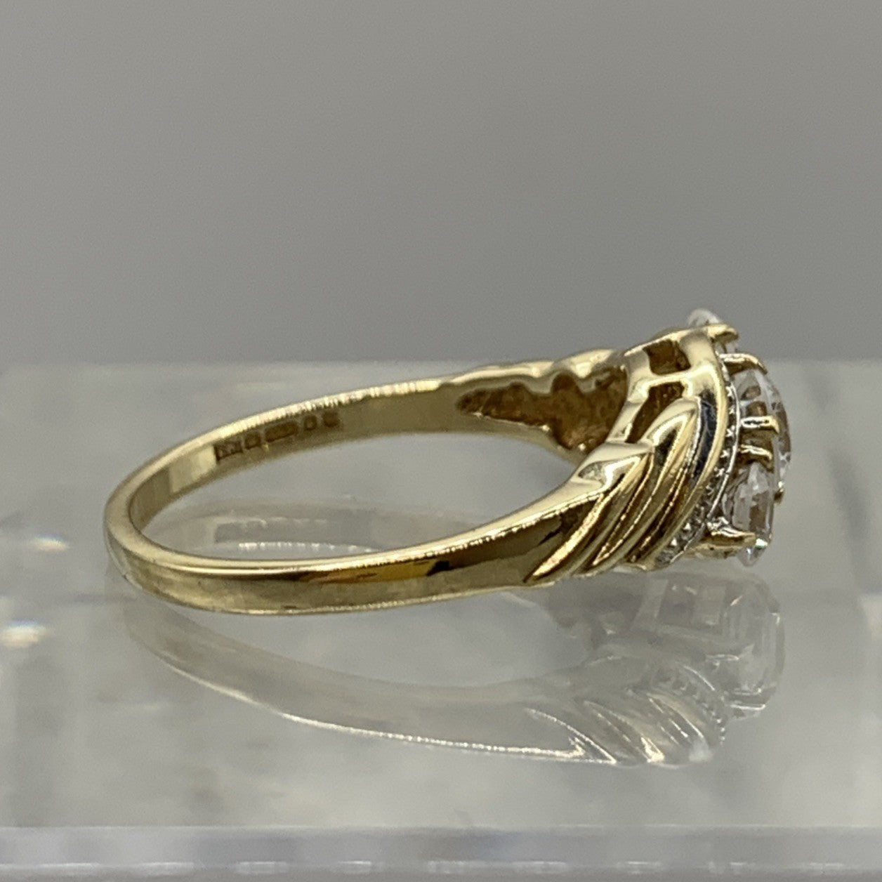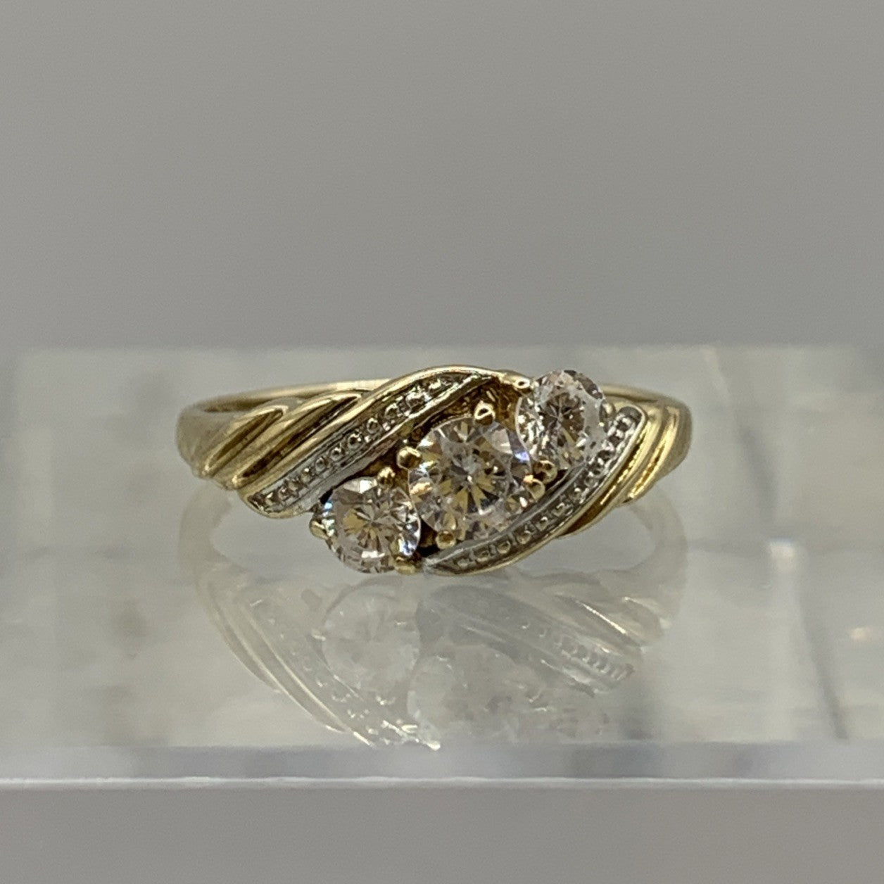 CZ Trilogy Bypass Twist Ring 9ct 9k 375 Yellow Gold - Size M 1/2