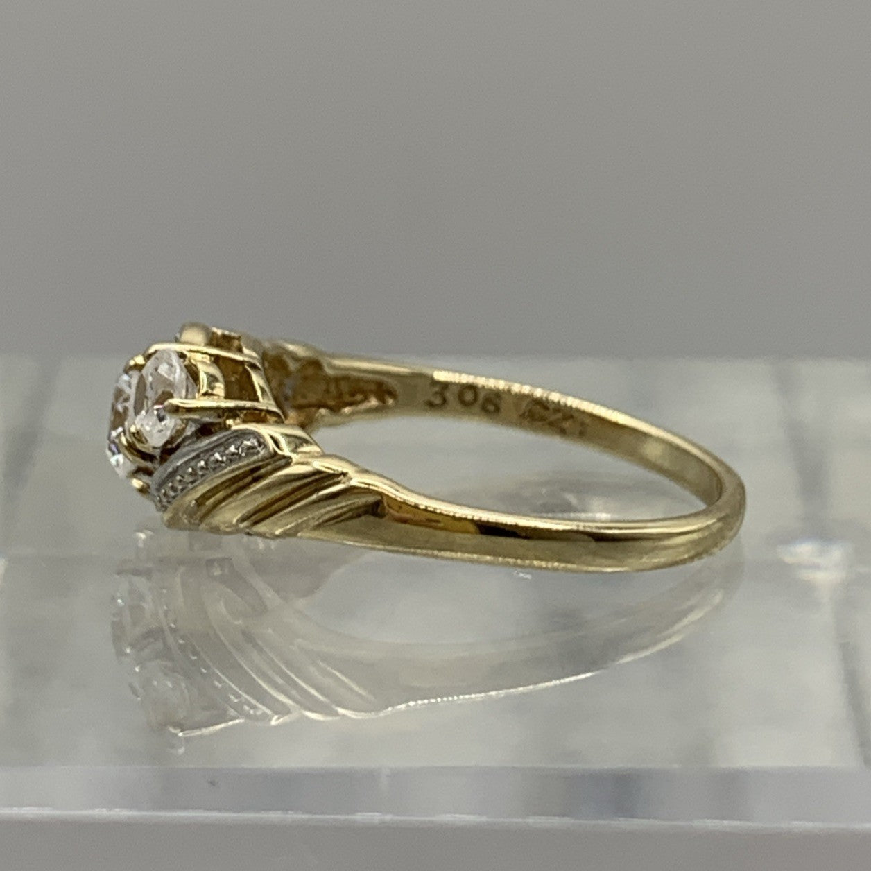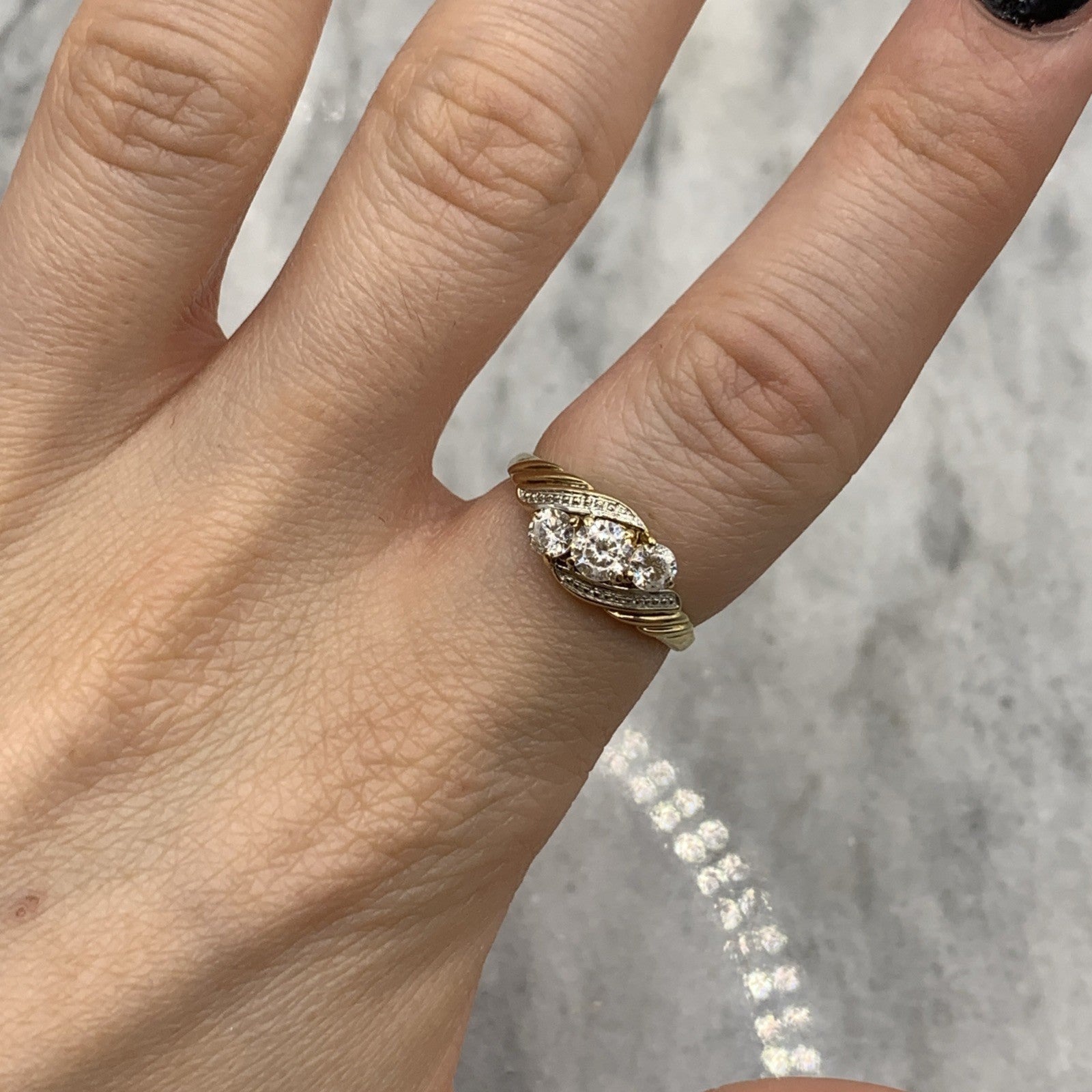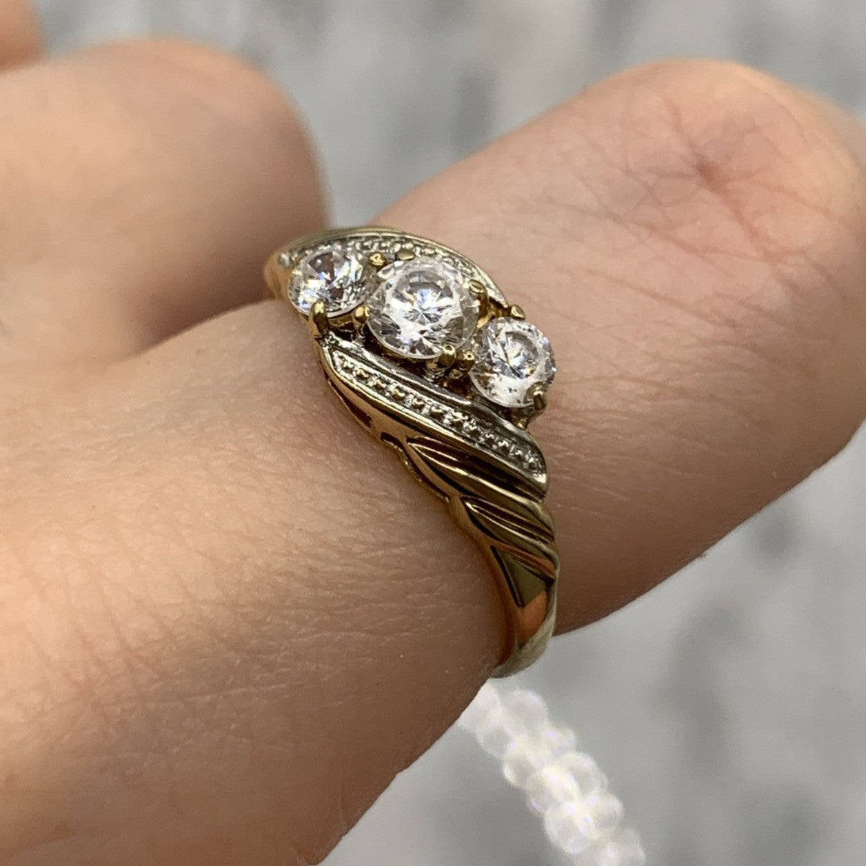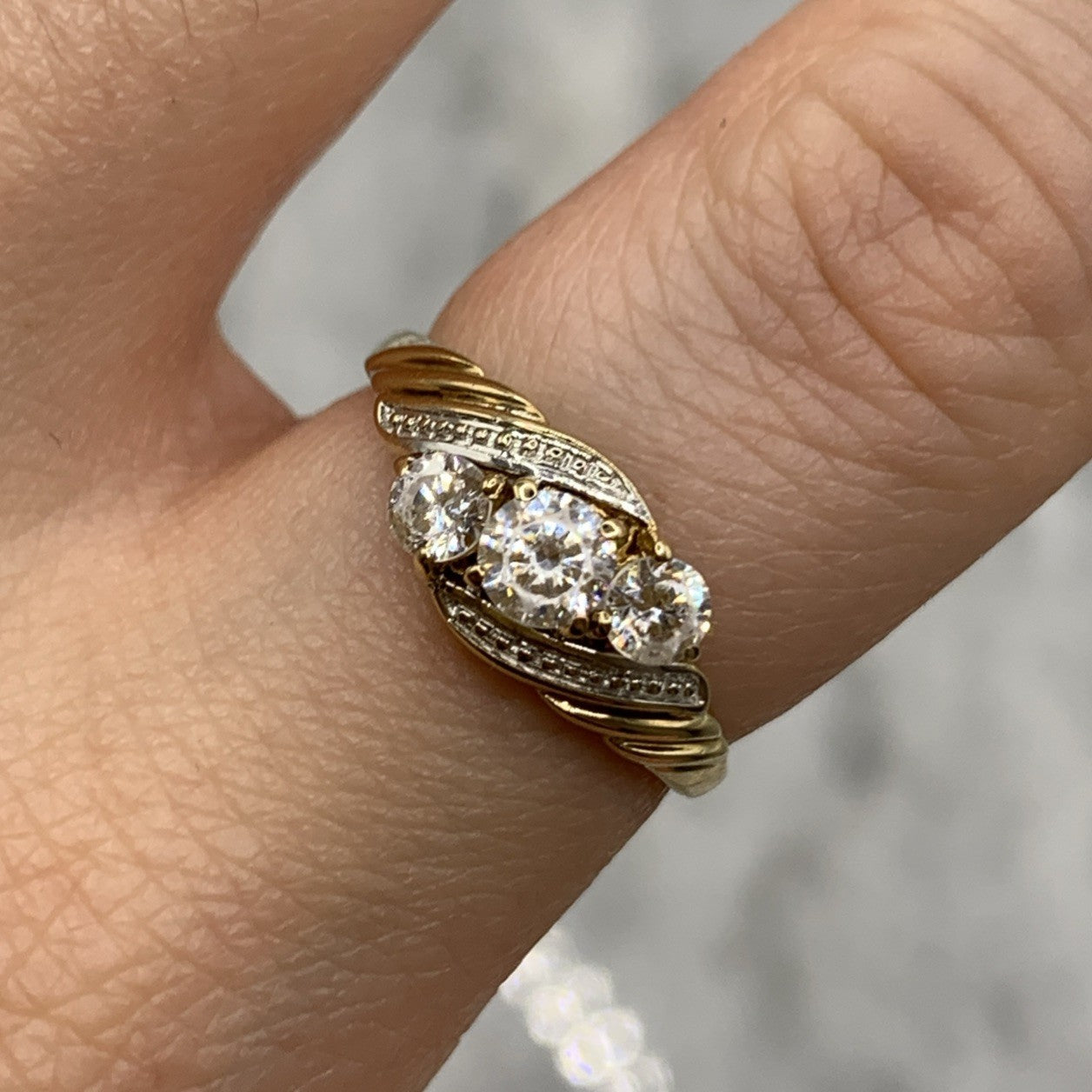 CZ Trilogy Bypass Twist Ring 9ct 9k 375 Yellow Gold - Size M 1/2