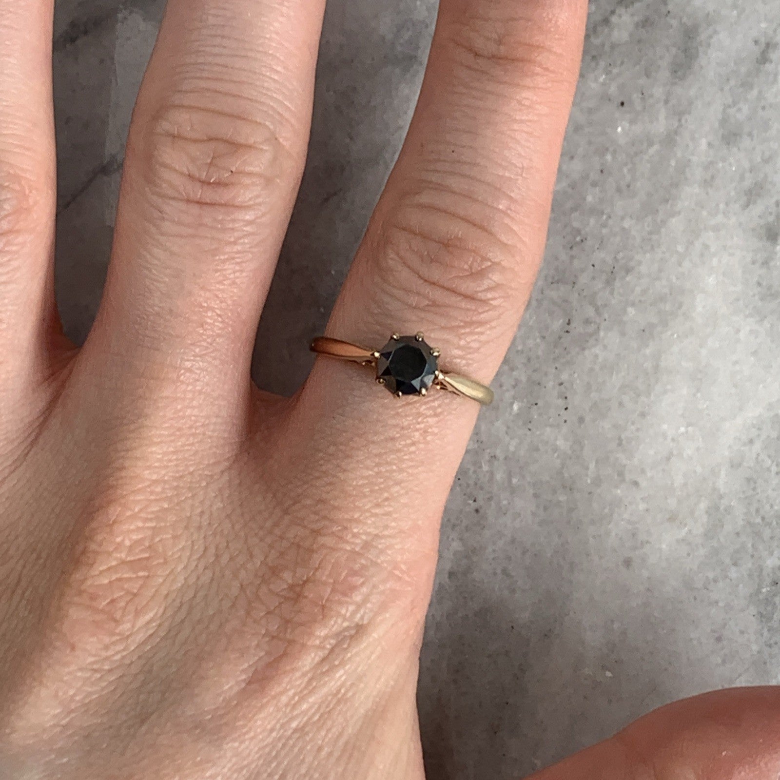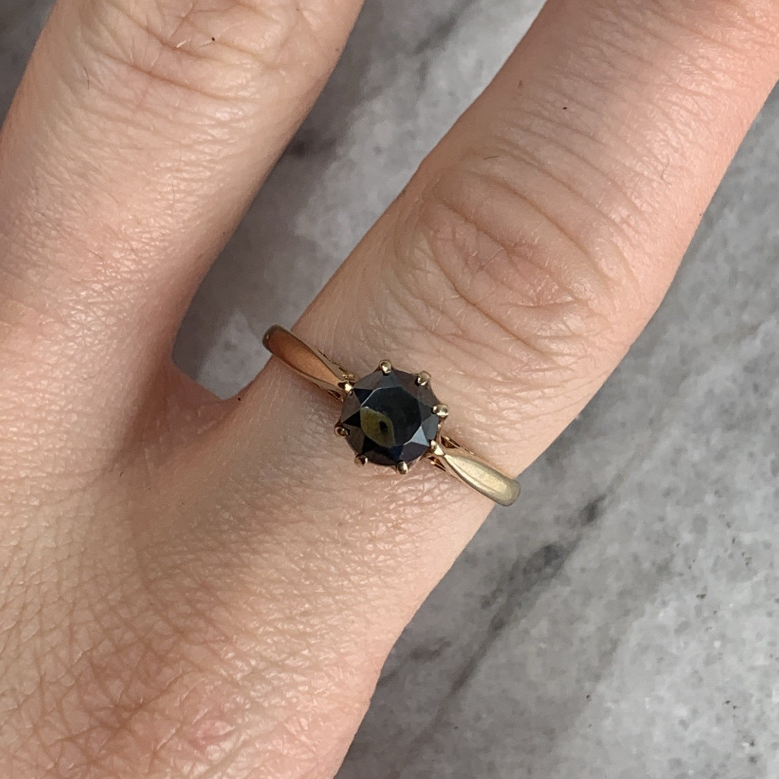 Hematite Solitaire Ring 9ct 375 Yellow Gold - Size O 1/2