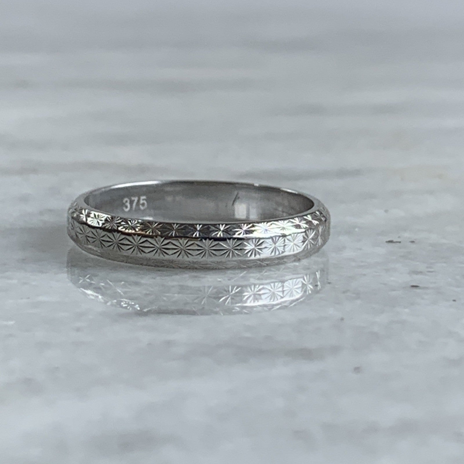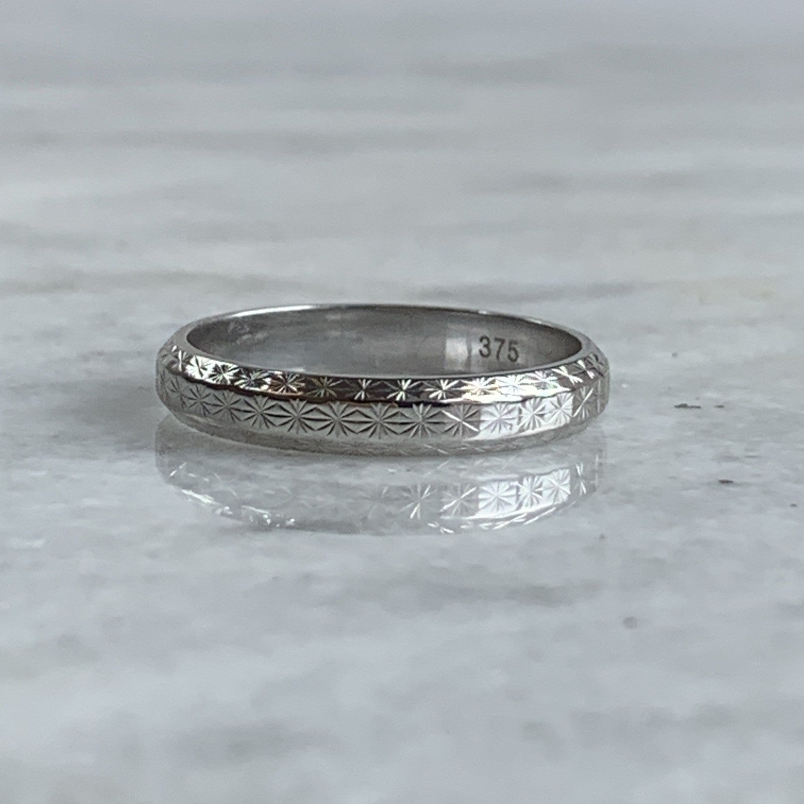 Patterned Wedding Band Ring 9ct 375 White Gold - Size Q