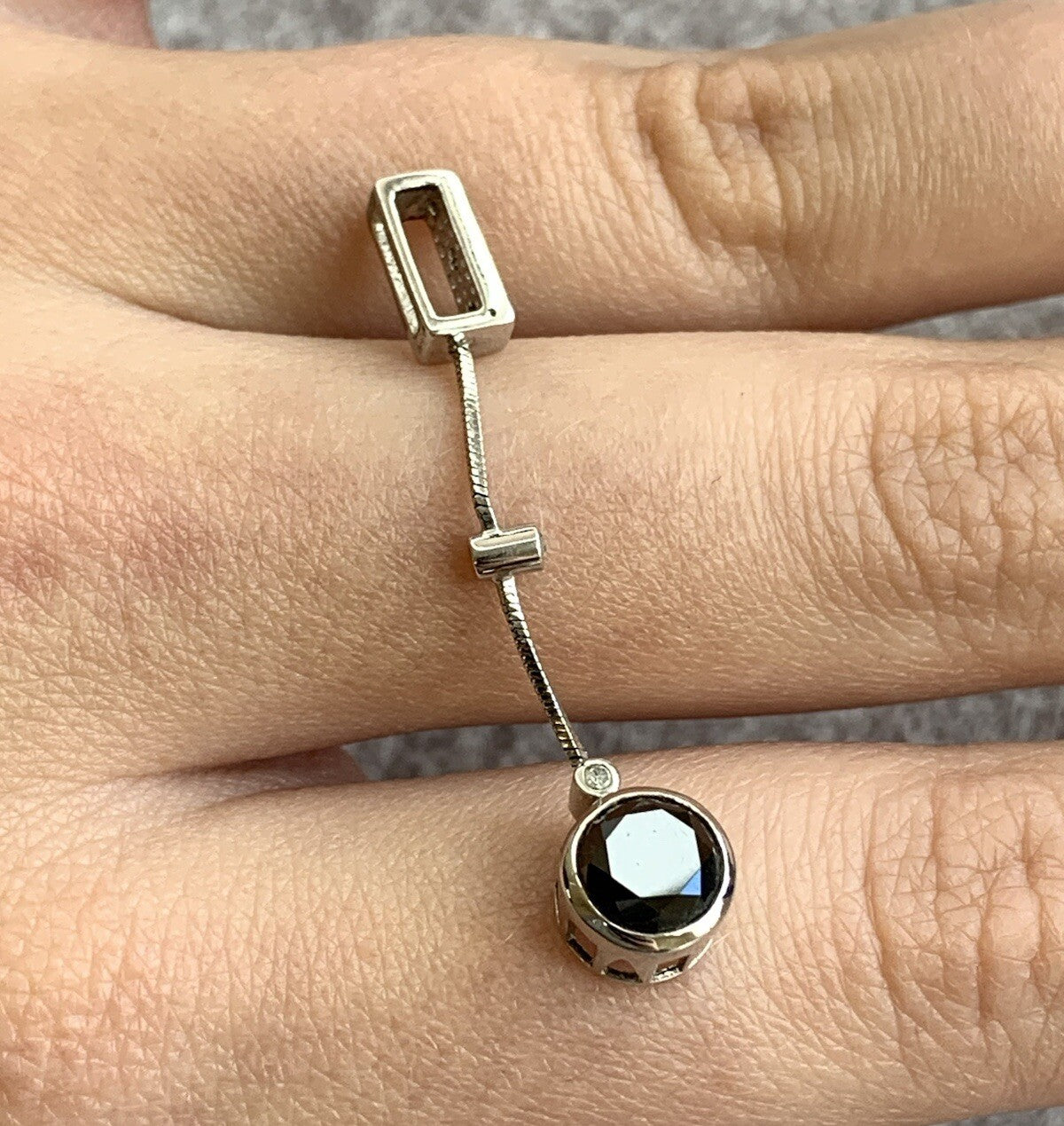 9 ct Gold Black Diamond Pendant Drop 375 9k White Gold