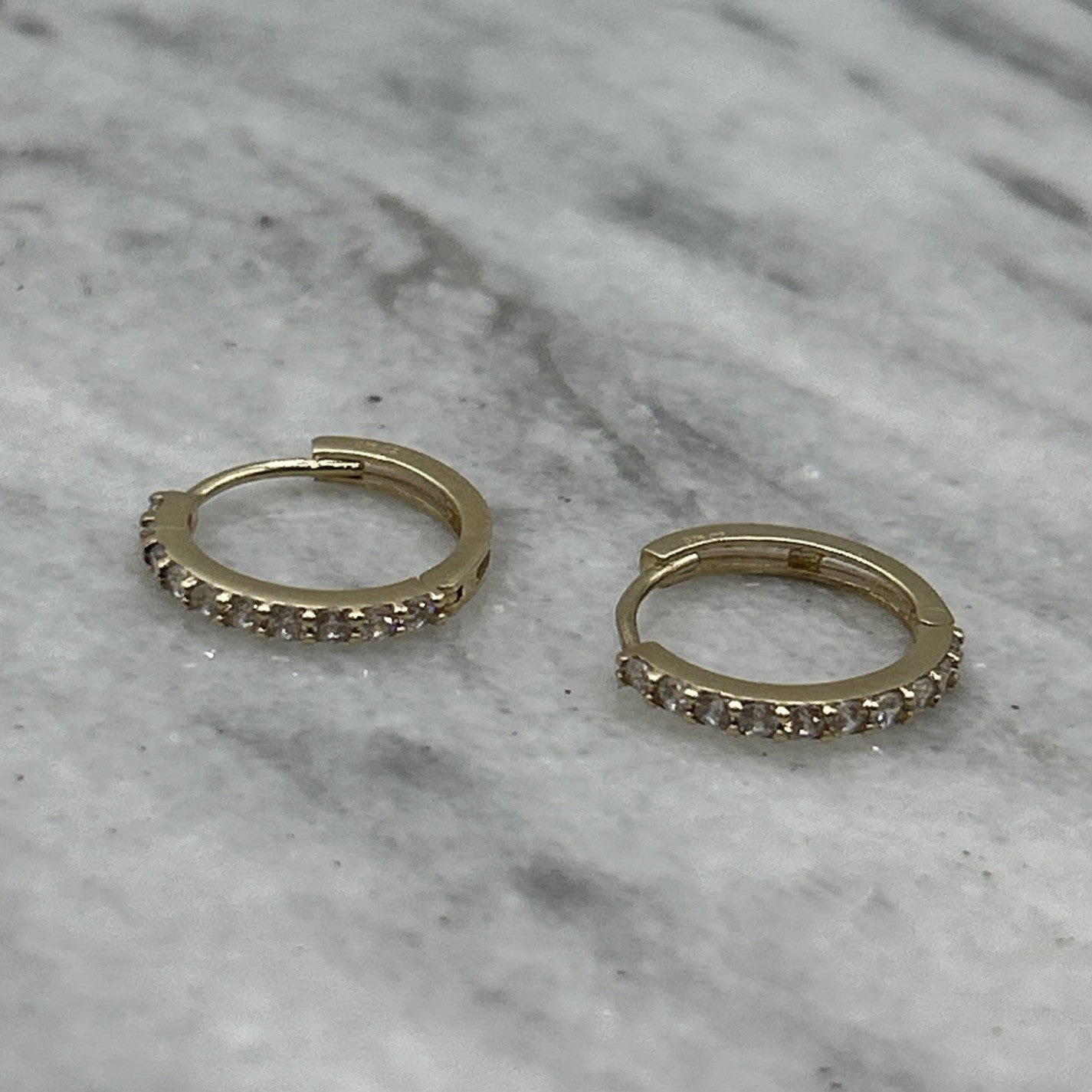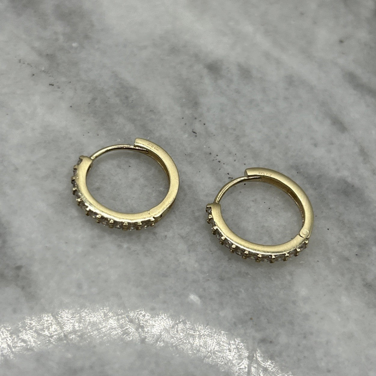 9 ct Gold CZ Small Huggie Hoop Earrings 375 Yellow Gold
