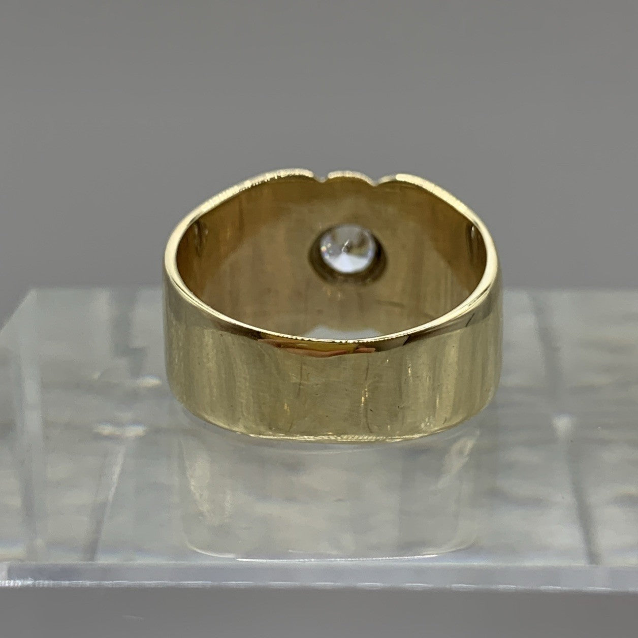 9 ct Gold CZ Solitaire Chunky Band Ring 9ct 9k 375 Yellow Gold - Size Q