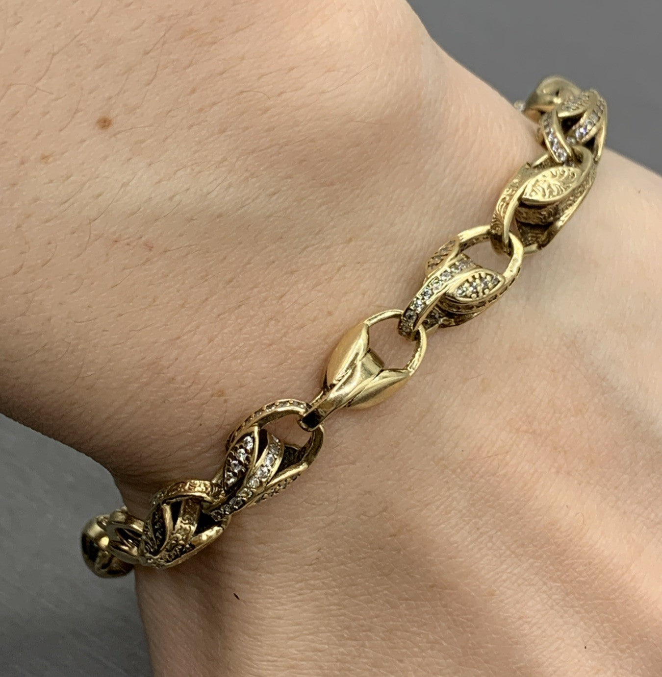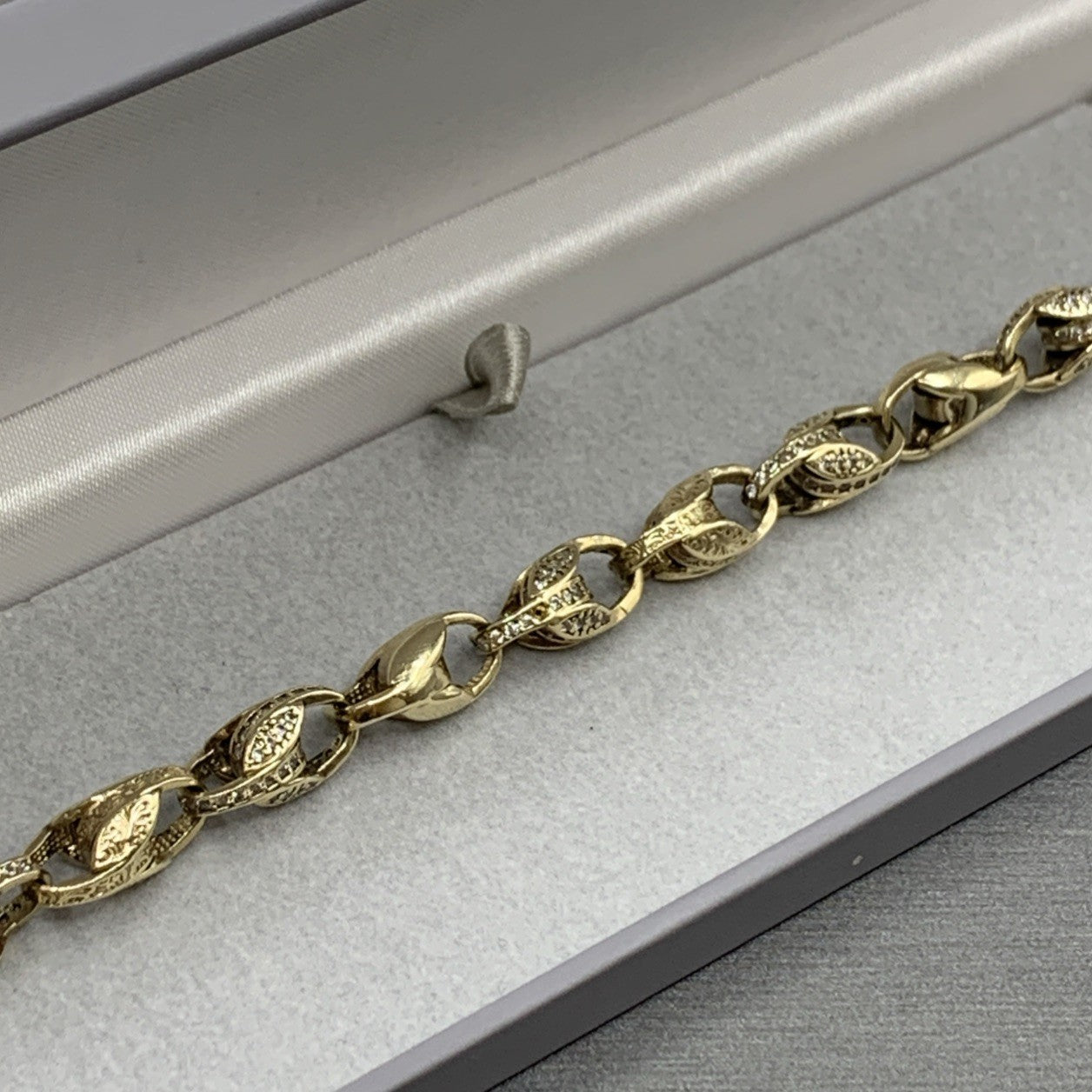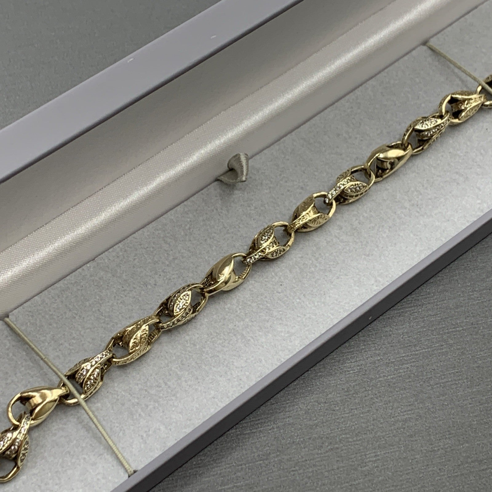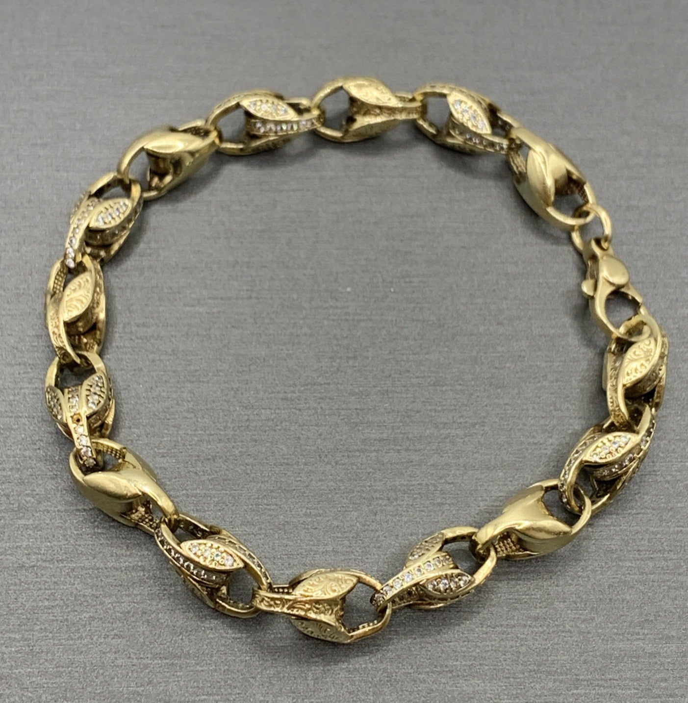 9 ct Gold CZ Tulip Chain Link Bracelet 9ct 375 Yellow Gold - 8" Inches