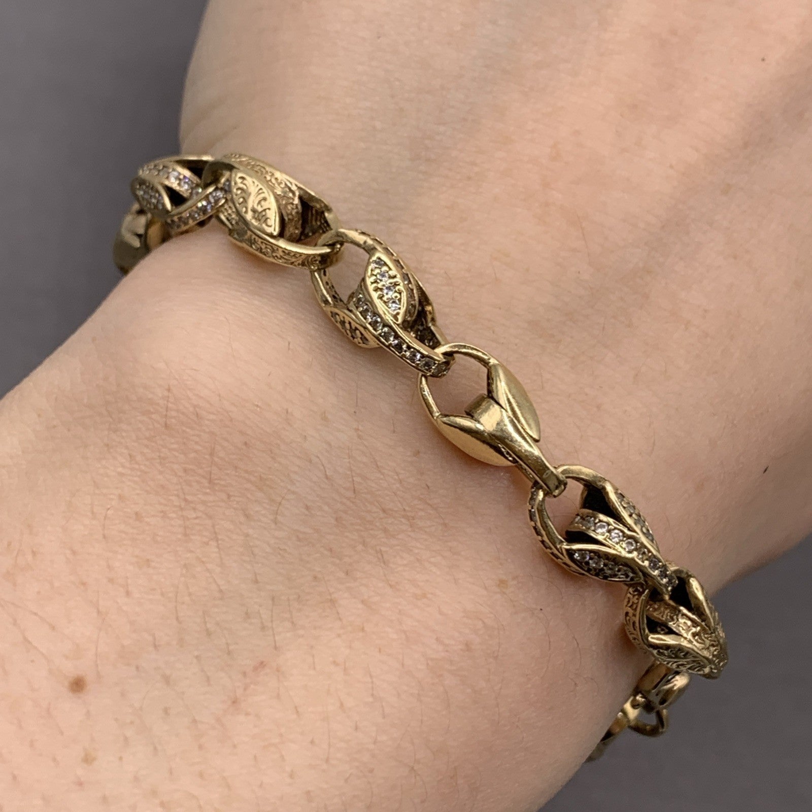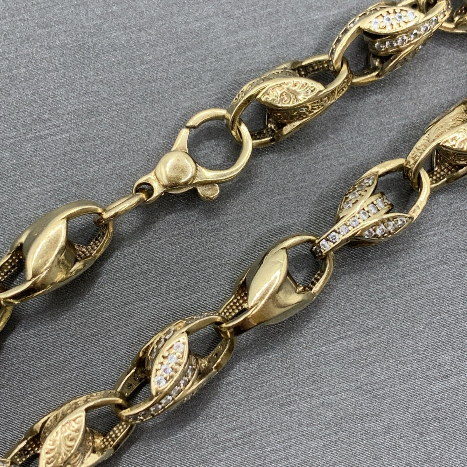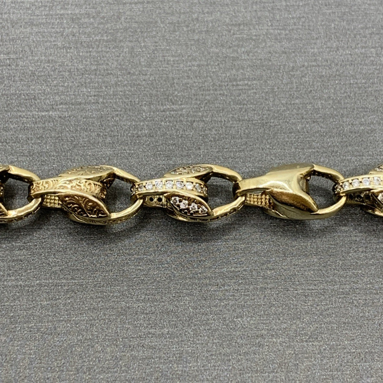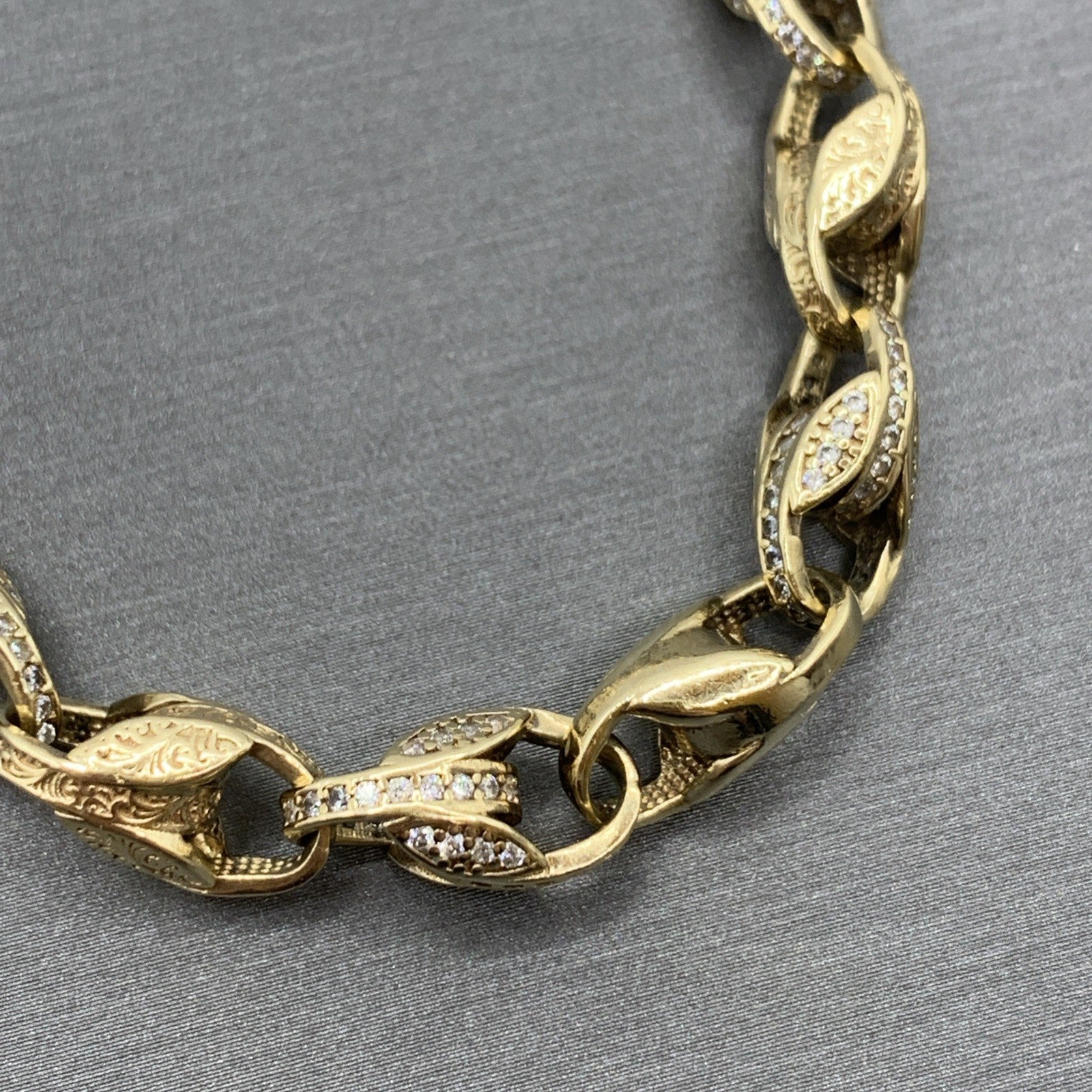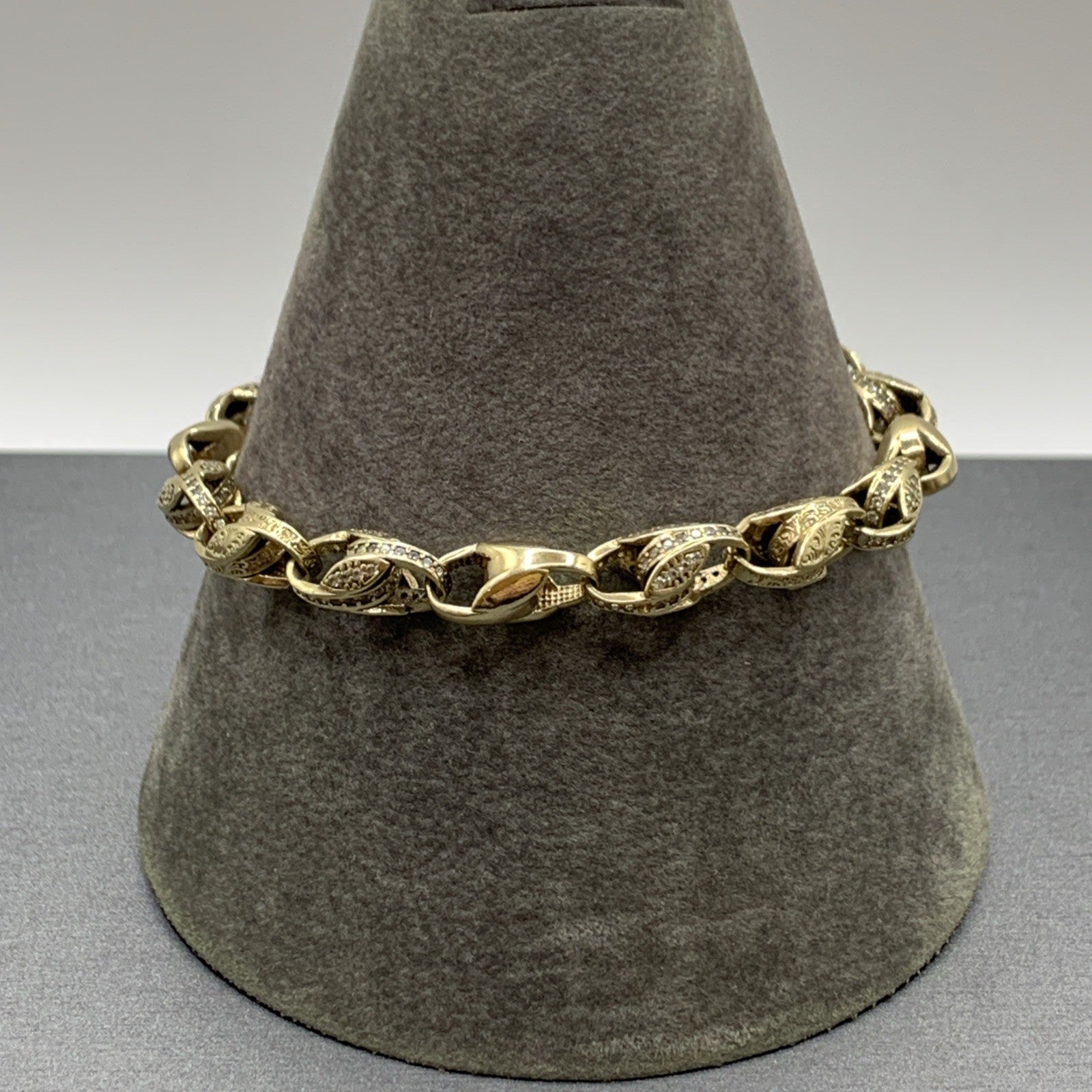 9 ct Gold CZ Tulip Chain Link Bracelet 9ct 375 Yellow Gold - 8" Inches