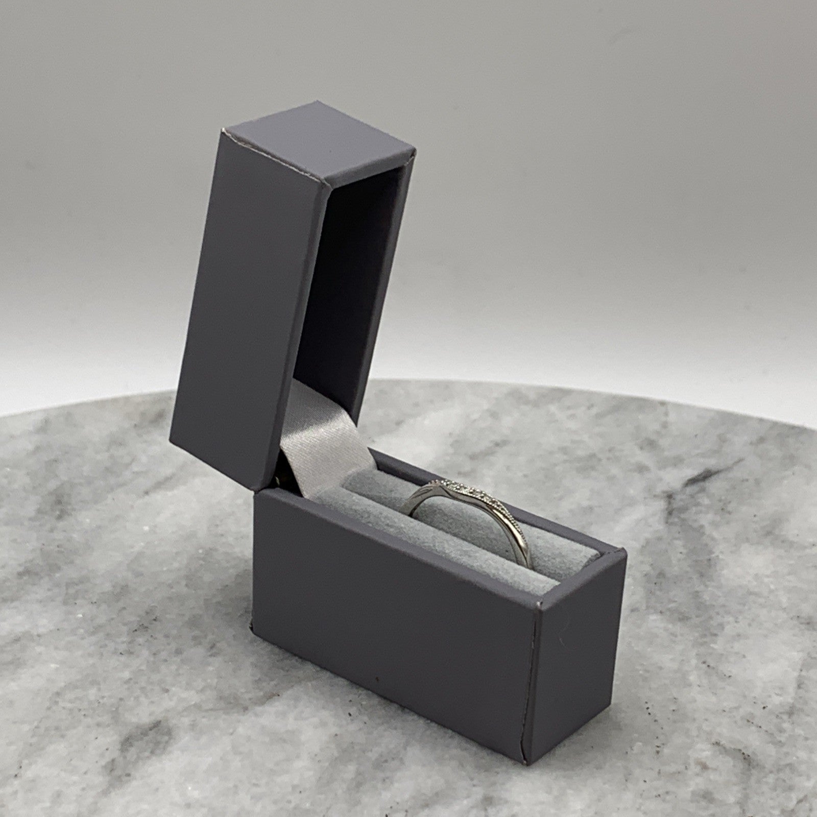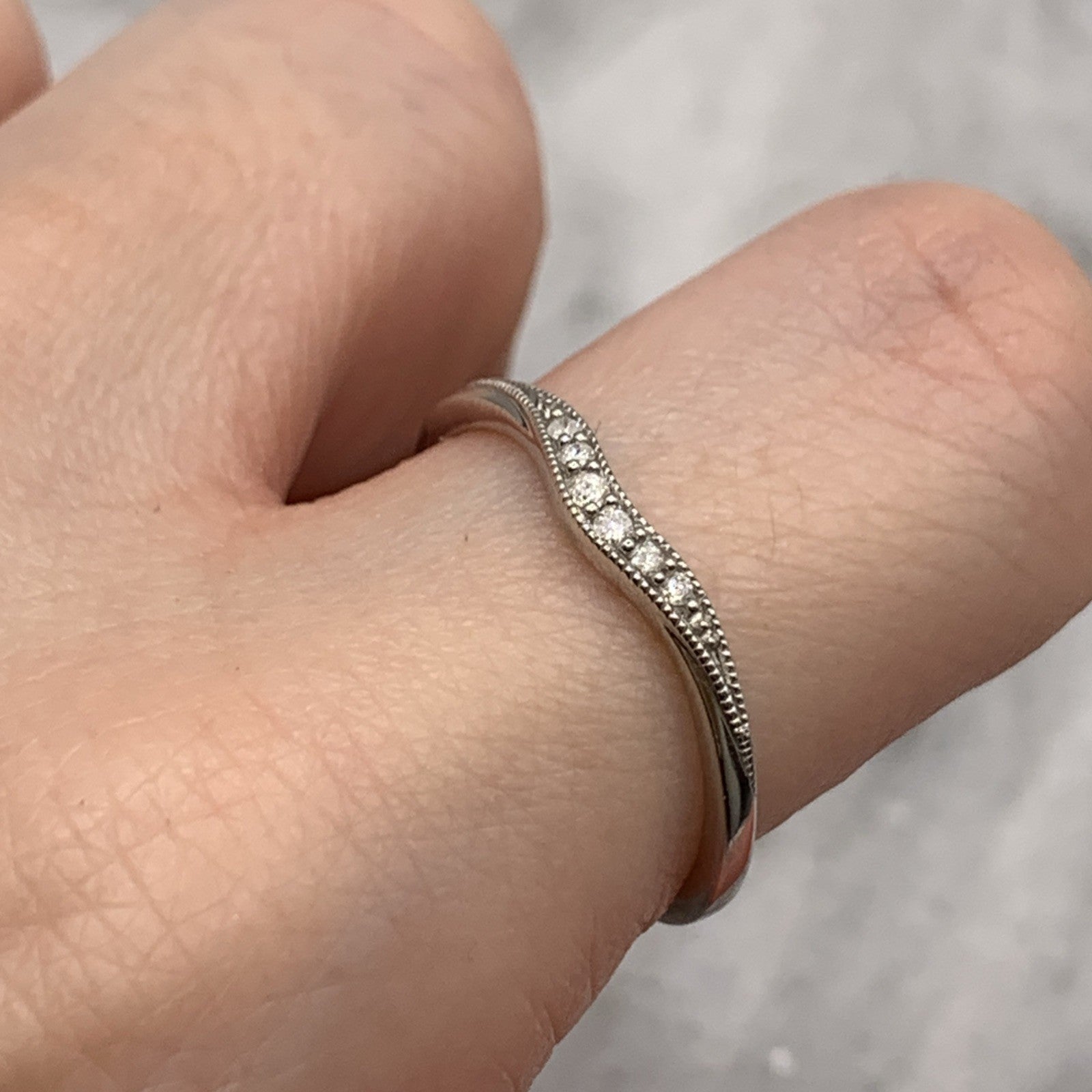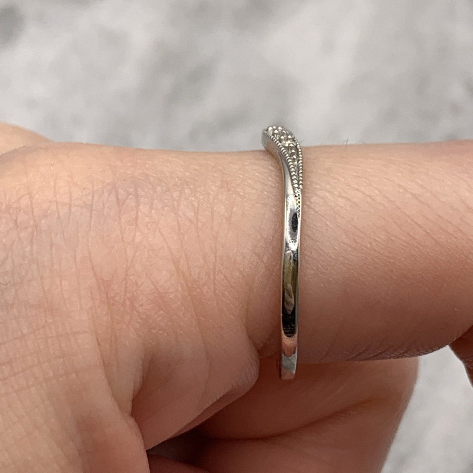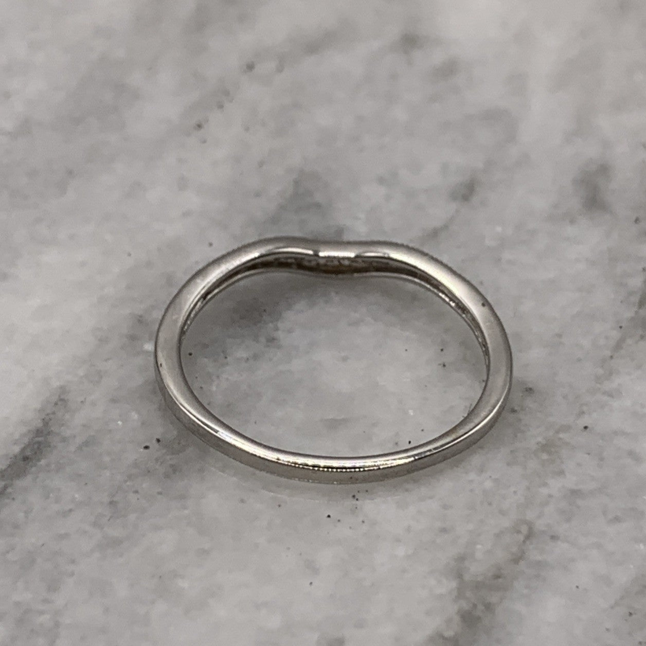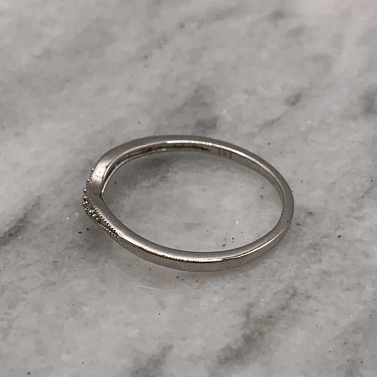 A beautiful white gold wave ring featuring petite pave set diamonds.