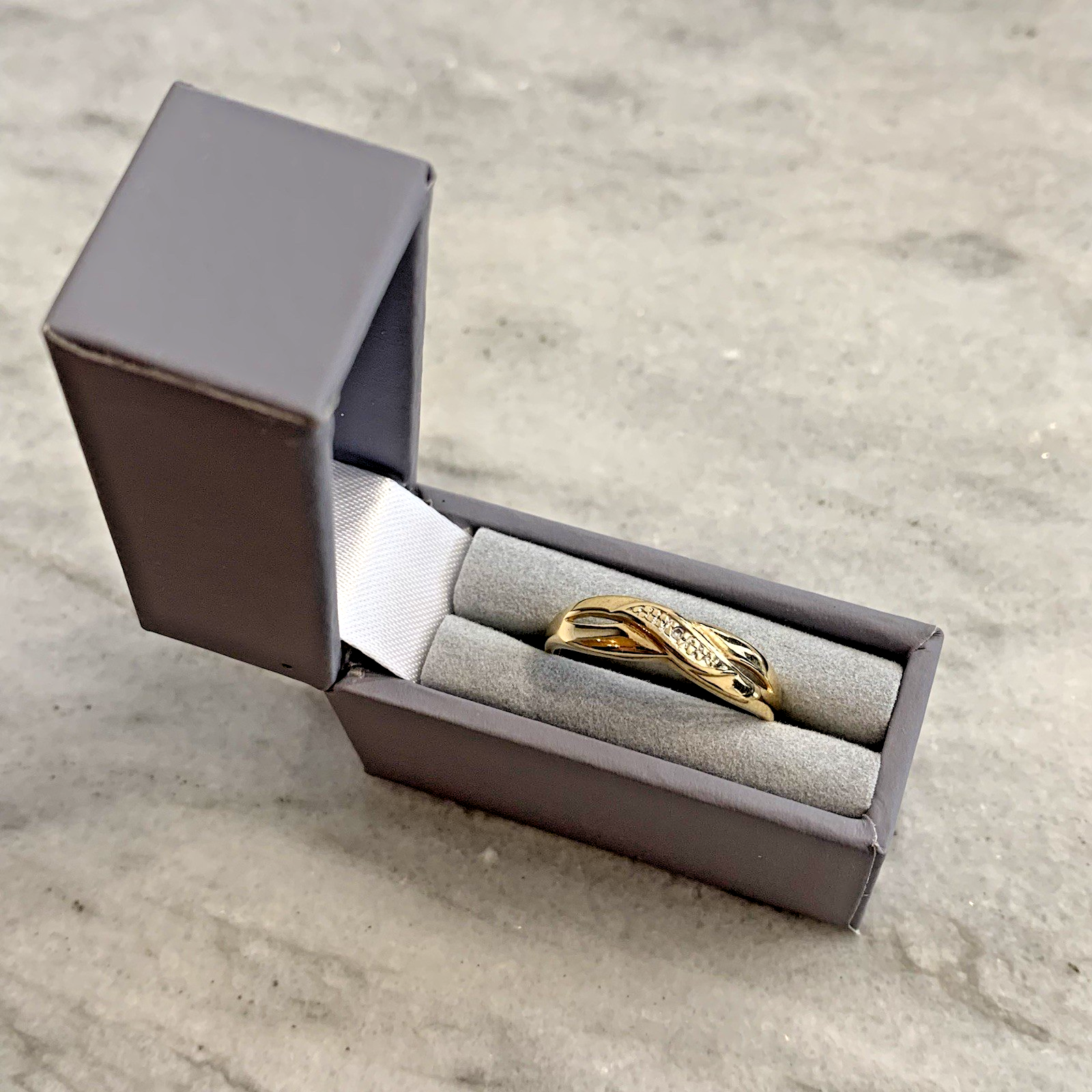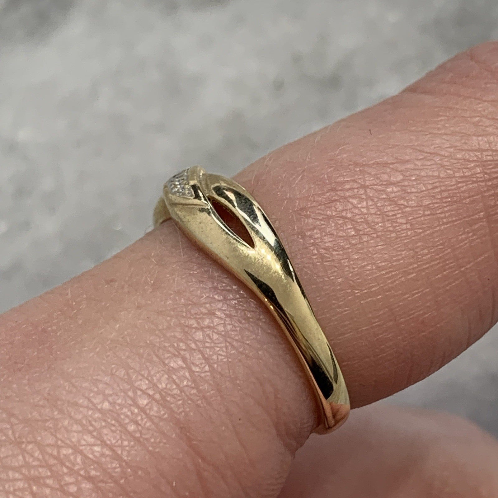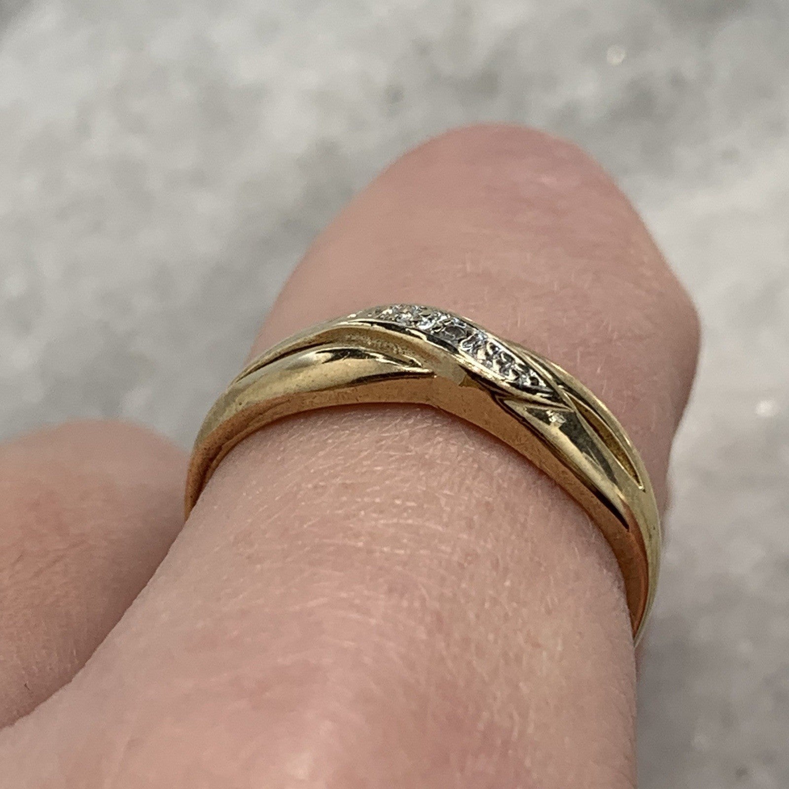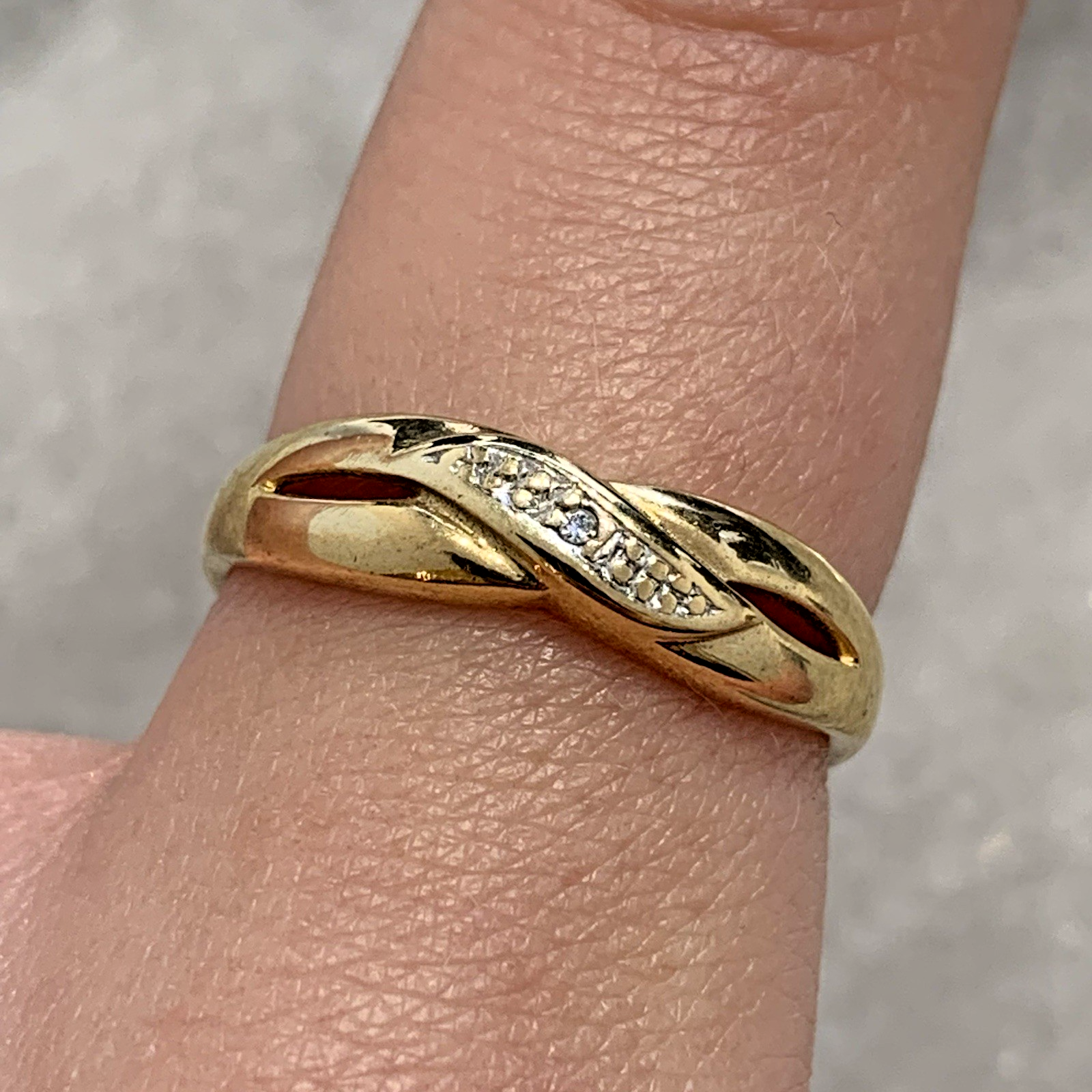 9 ct Gold Diamond Ring Crossover Twist Band Yellow Gold - Size O