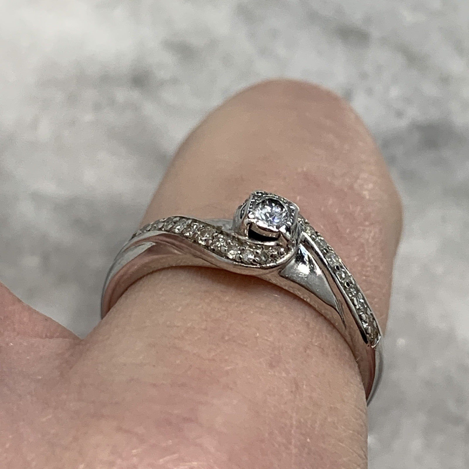 9 ct Gold Diamond Ring Engagement Solitaire Accents 375 White Gold - Size O 1/2