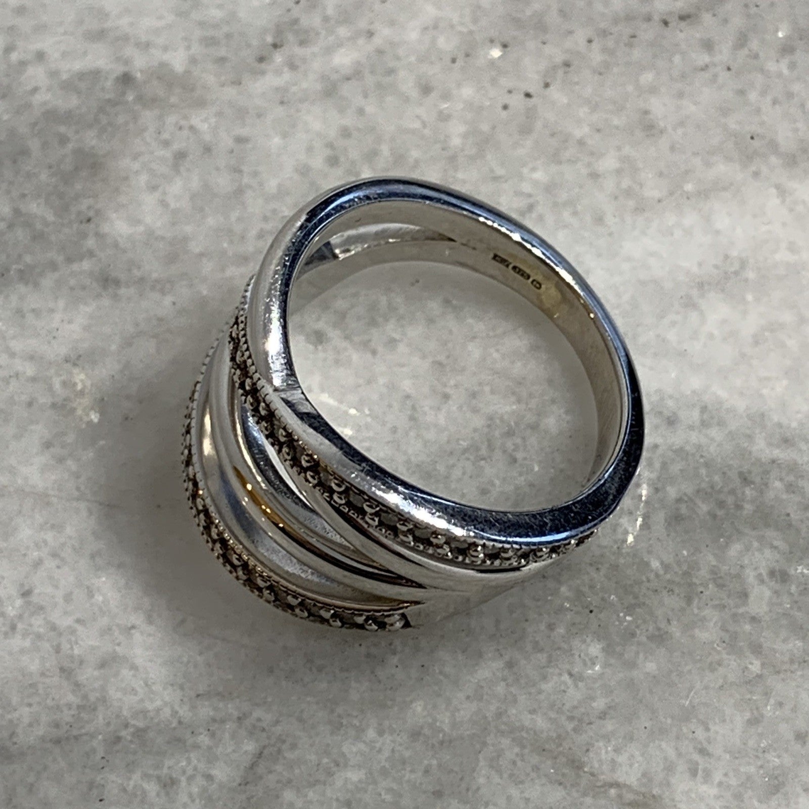 9 ct Gold Diamond Ring Multilayer Crossover 375 White Gold - Size O 1/2