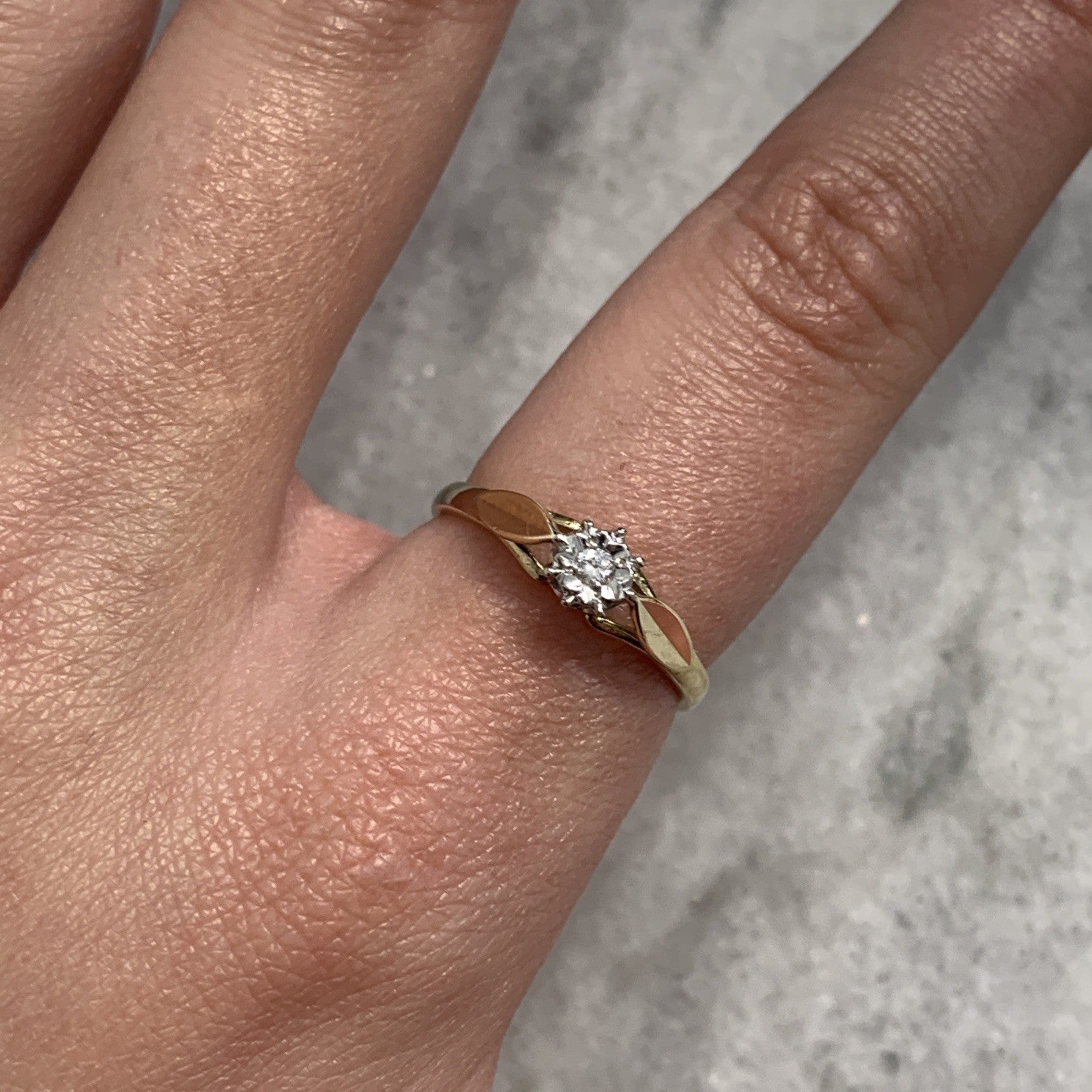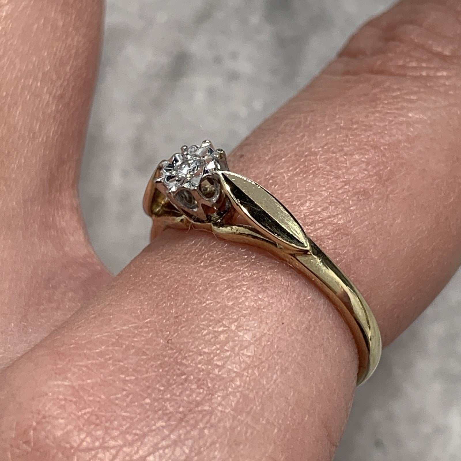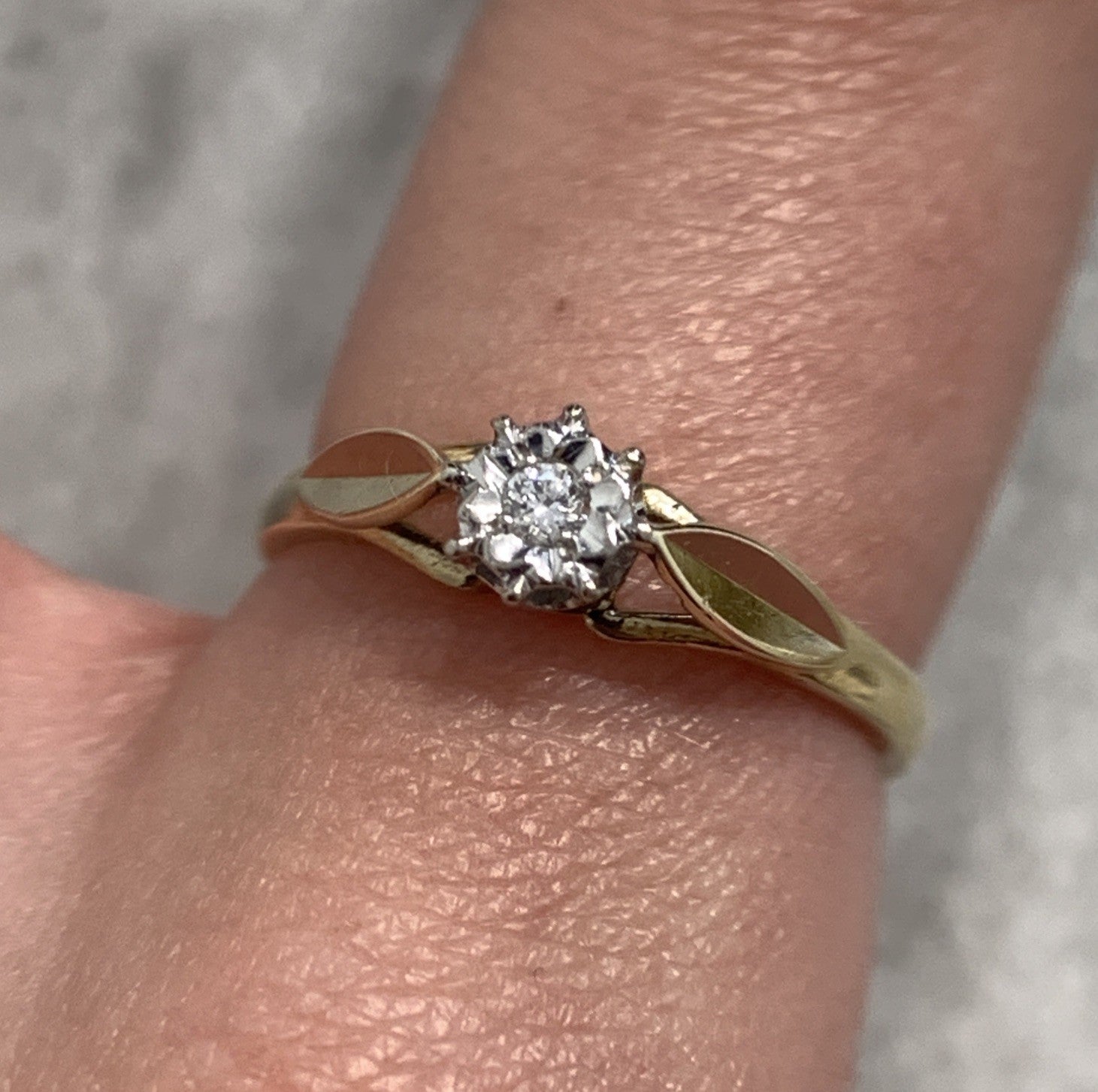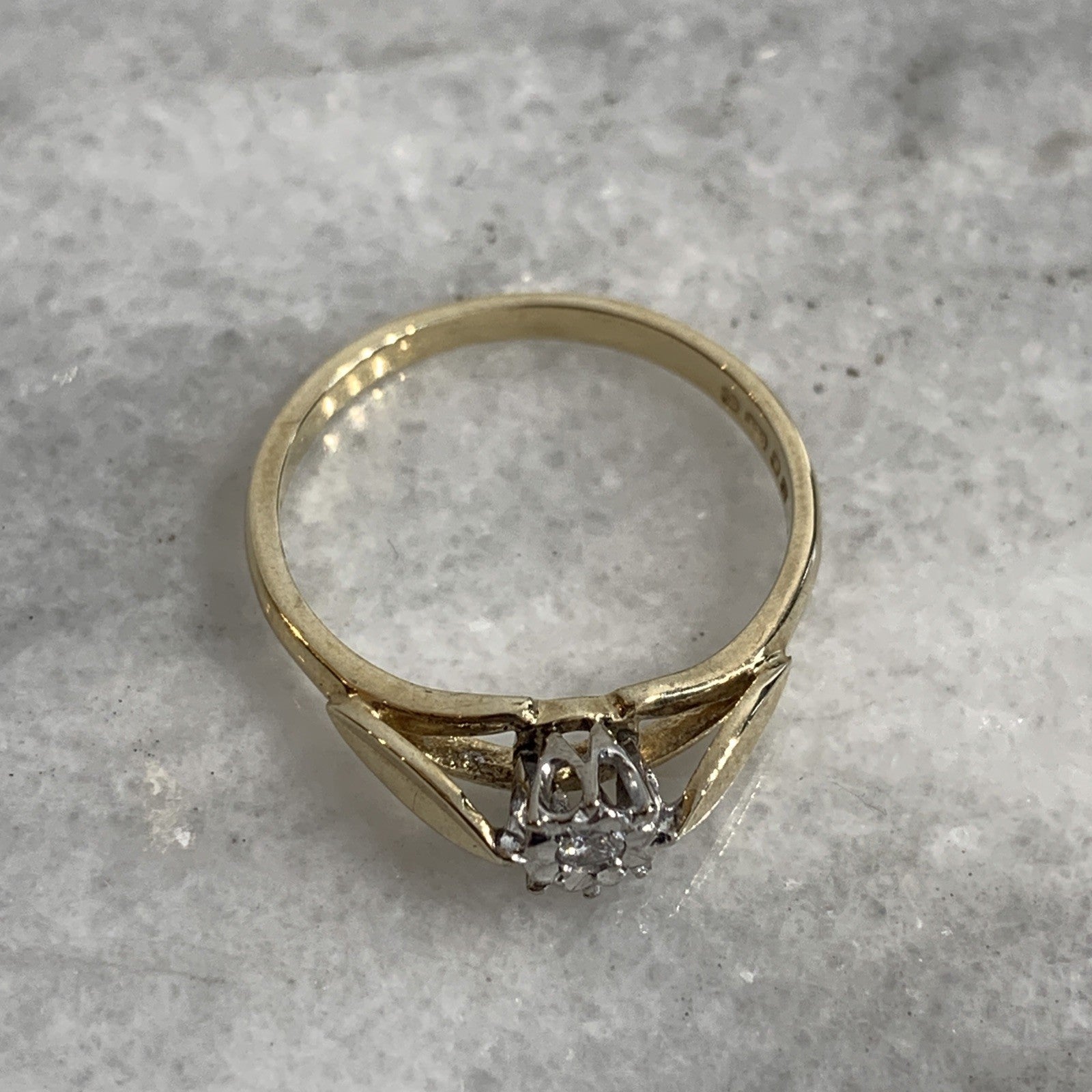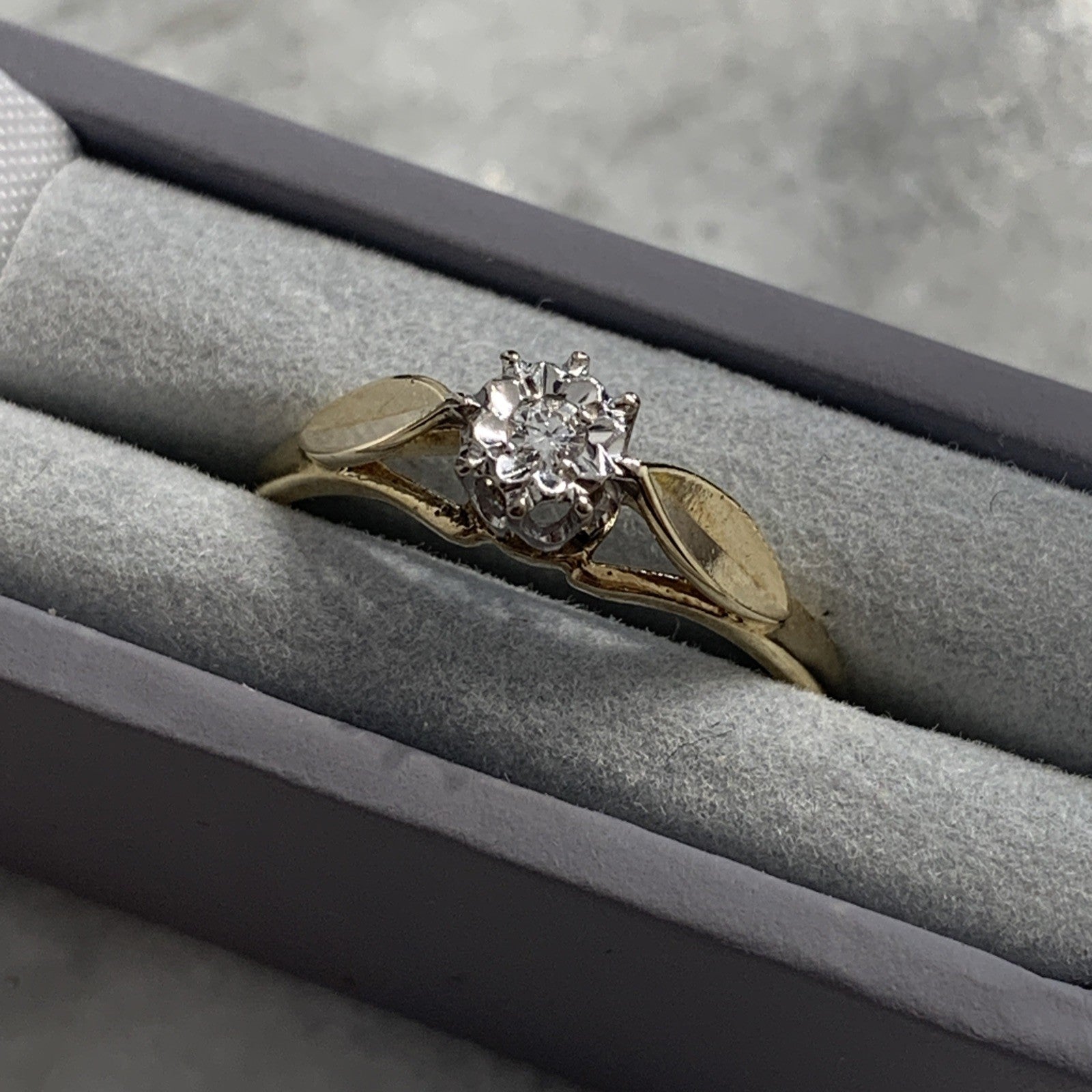 9 ct Gold Diamond Solitaire Ring High Shoulder Detail 375 Yellow Gold - Size N