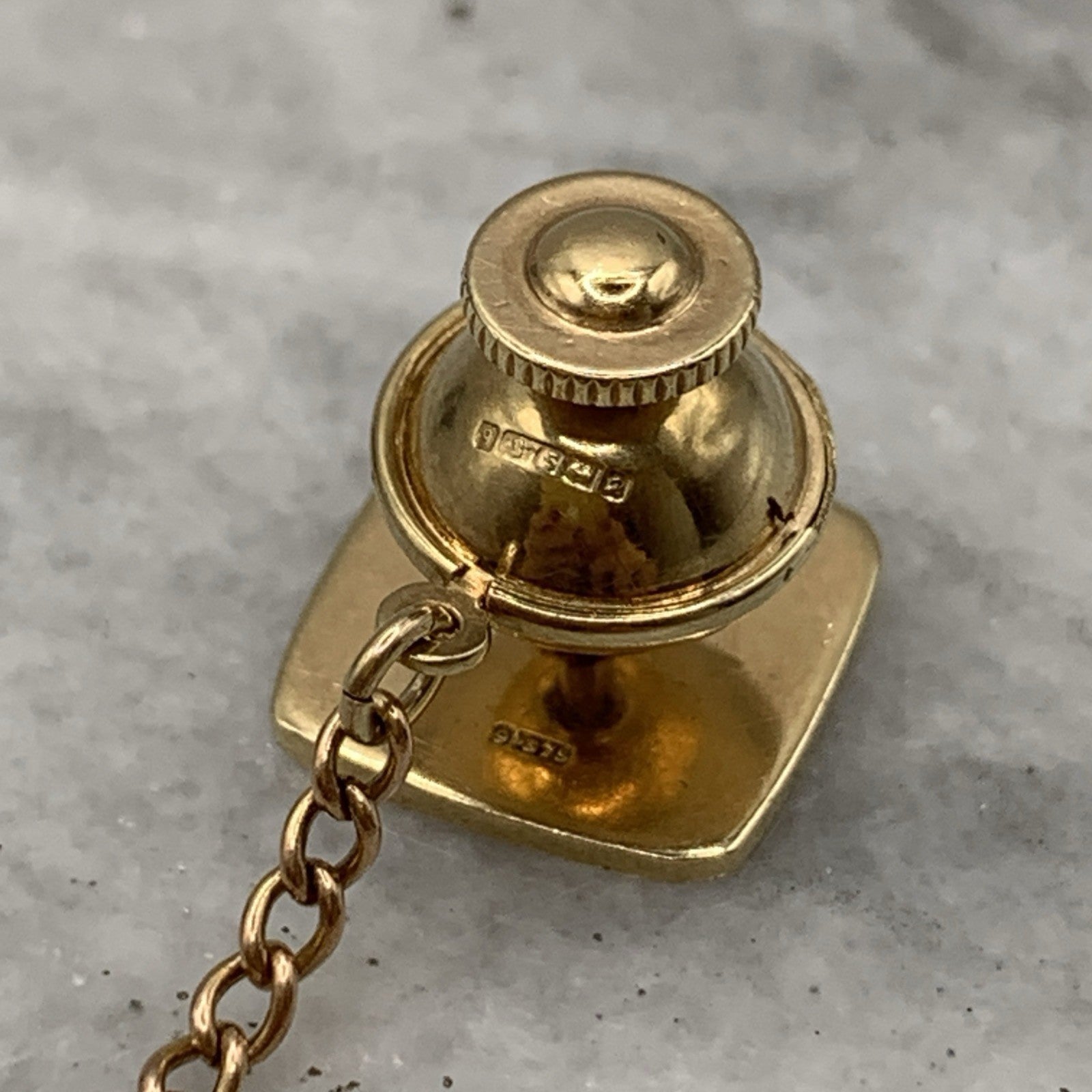 9 ct Gold Embossed Rounded Square Tie Pin 375 Yellow Gold