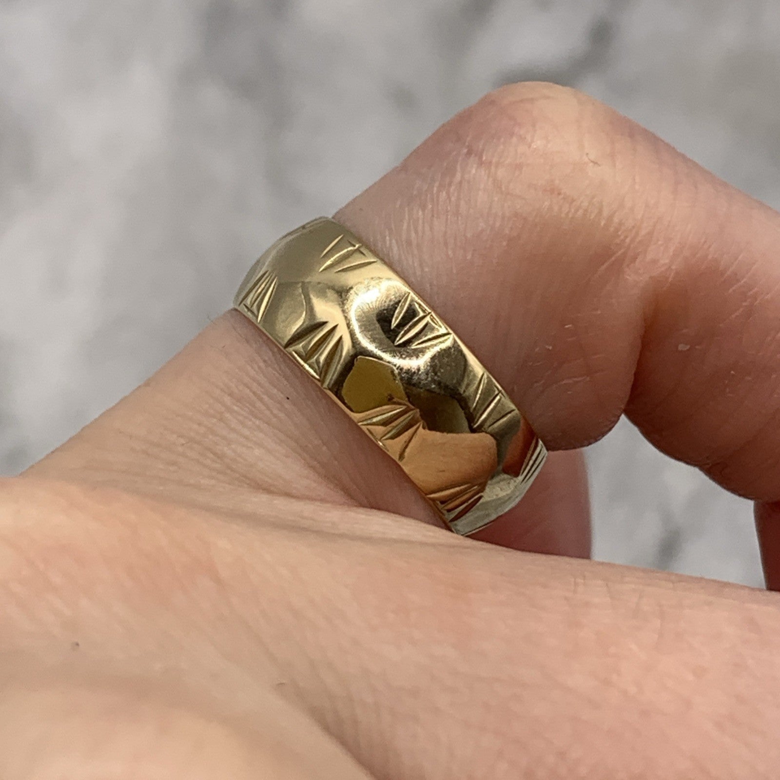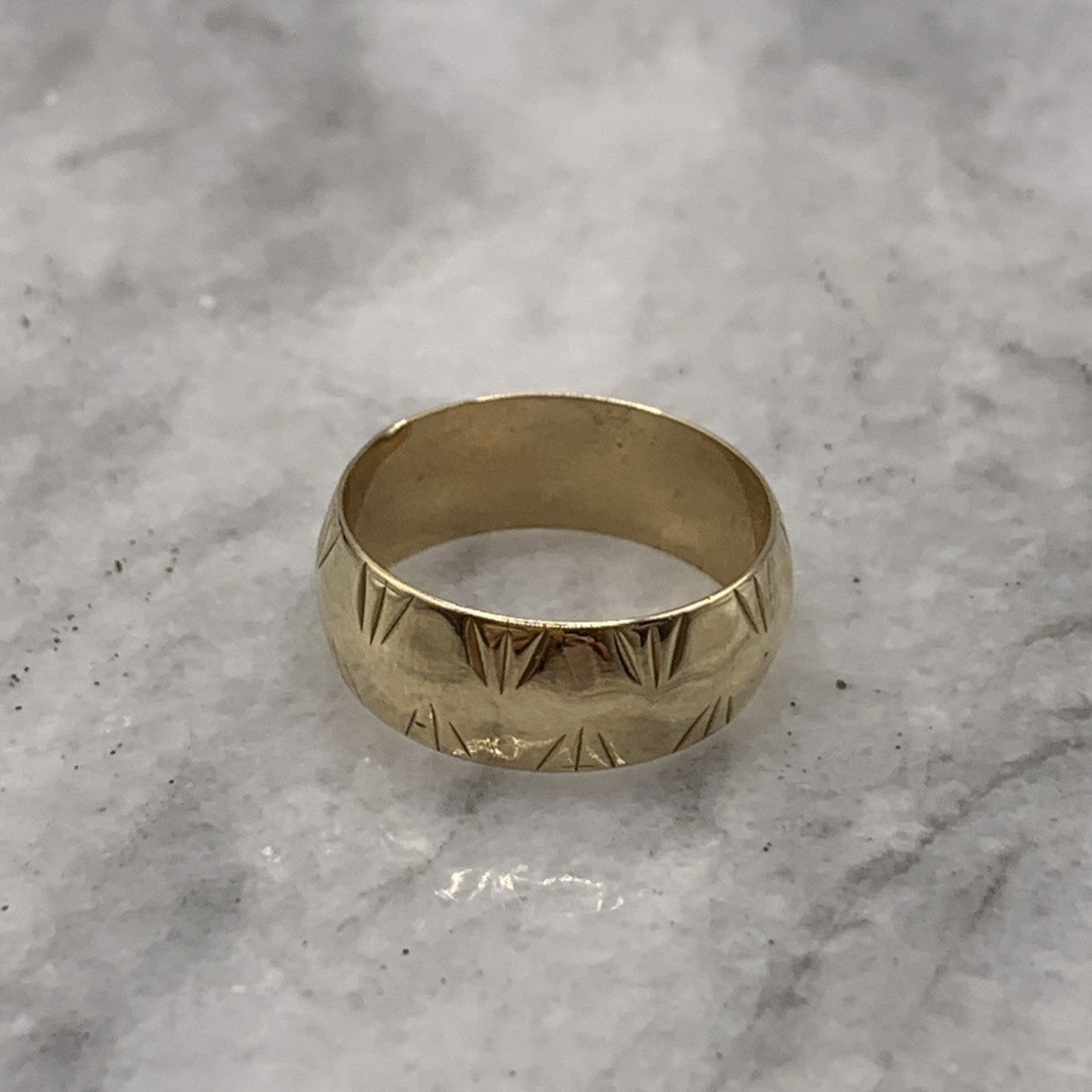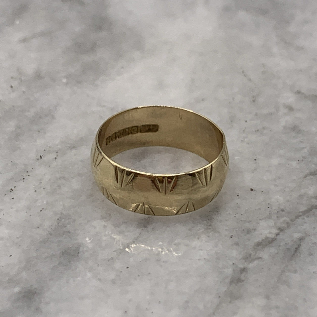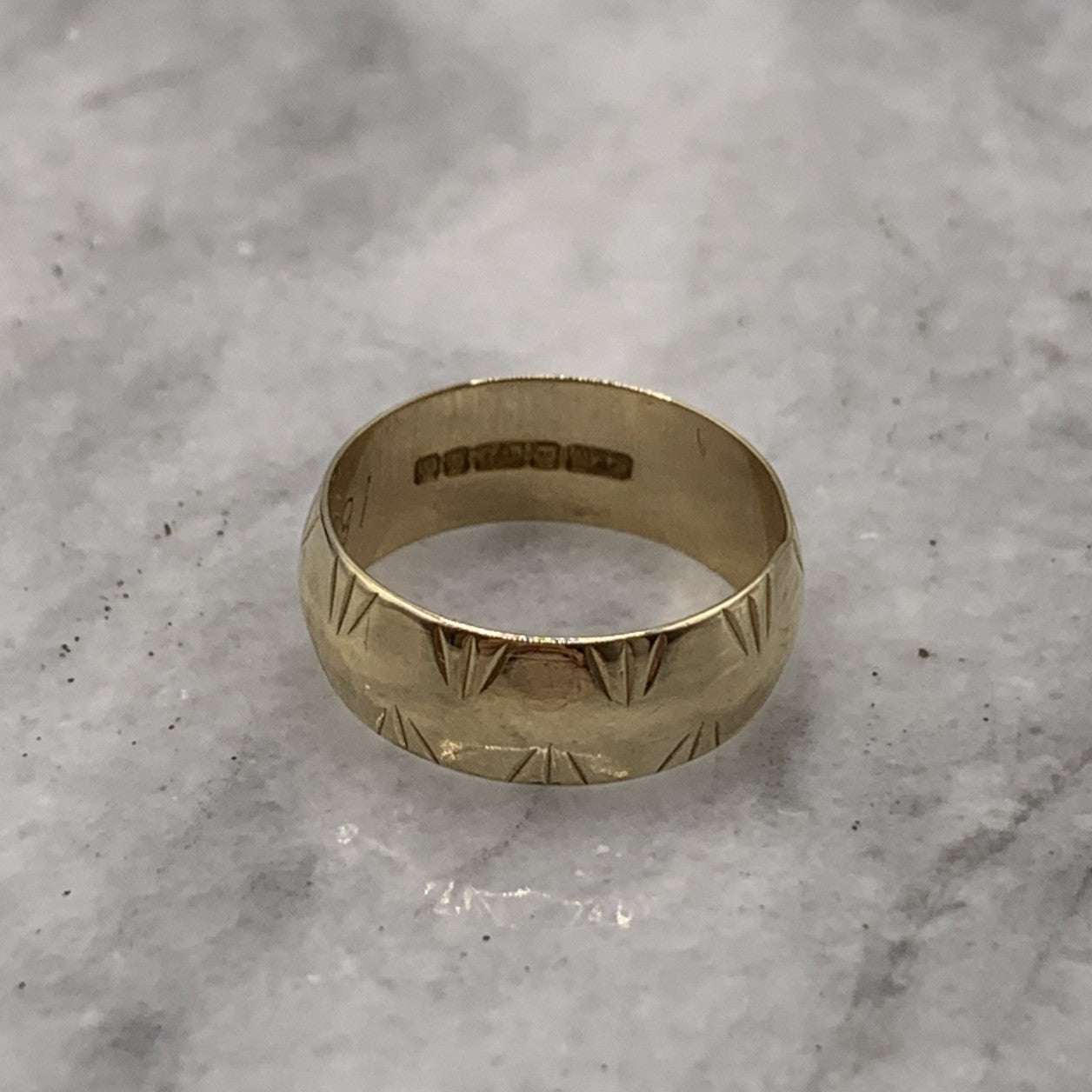 9 ct Gold Patterned Band Ring 375 Yellow Gold - Size N 1/2