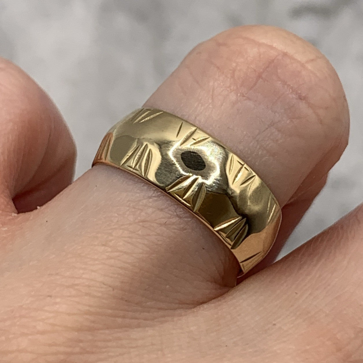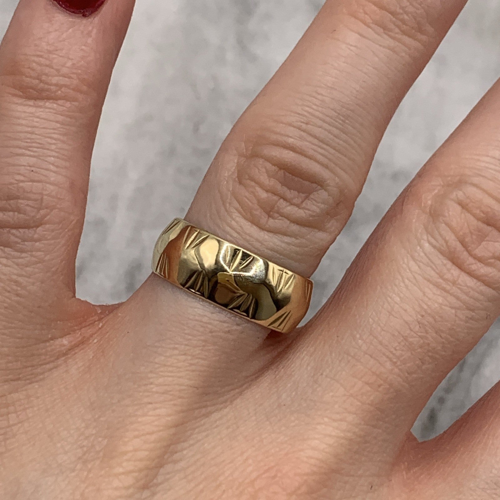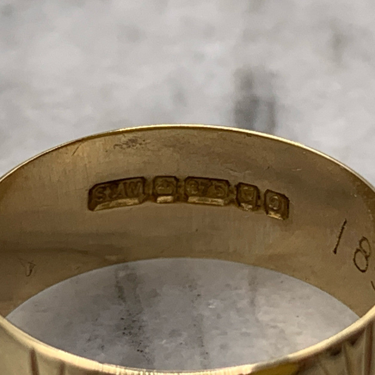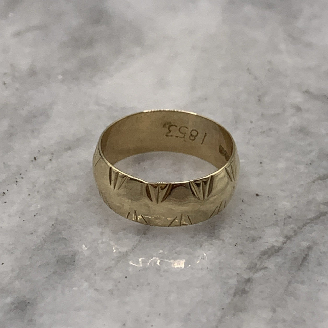 9 ct Gold Patterned Band Ring 375 Yellow Gold - Size N 1/2