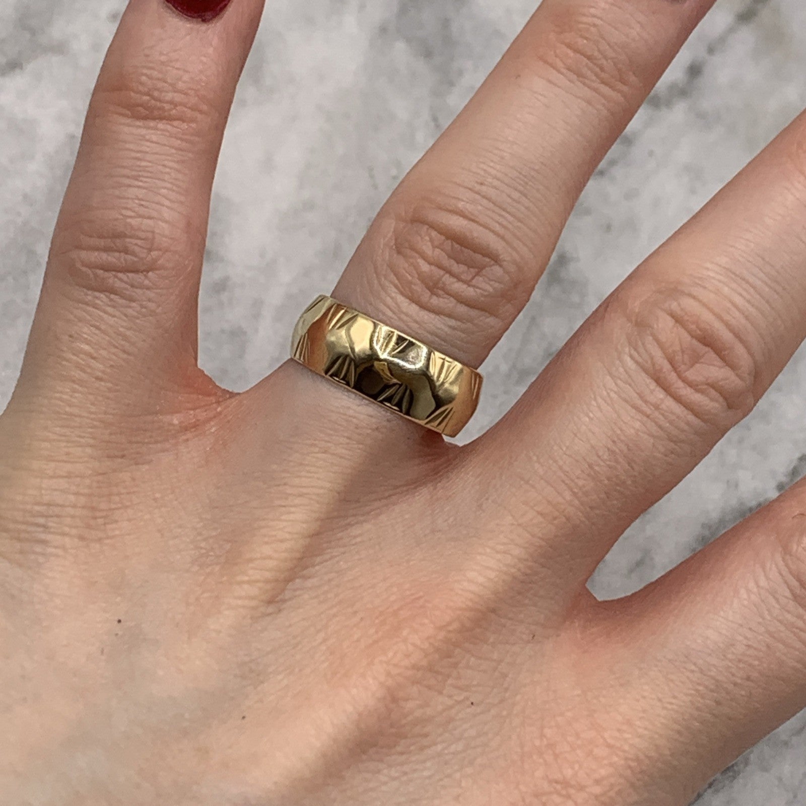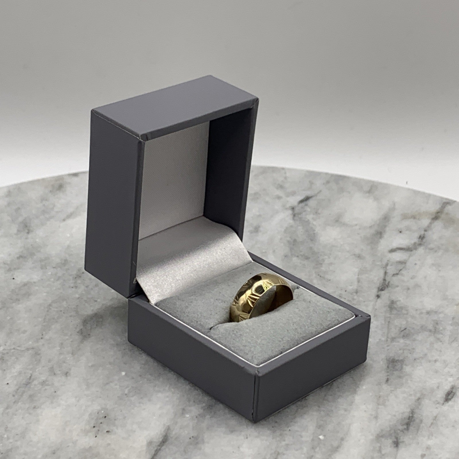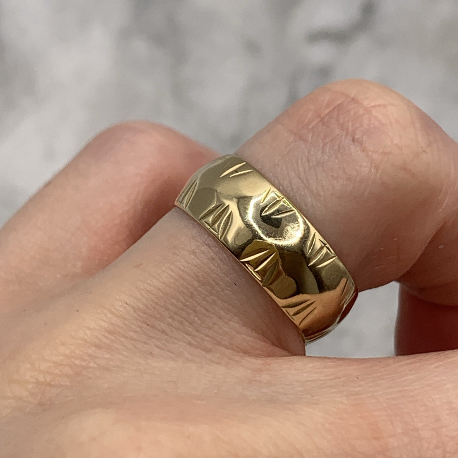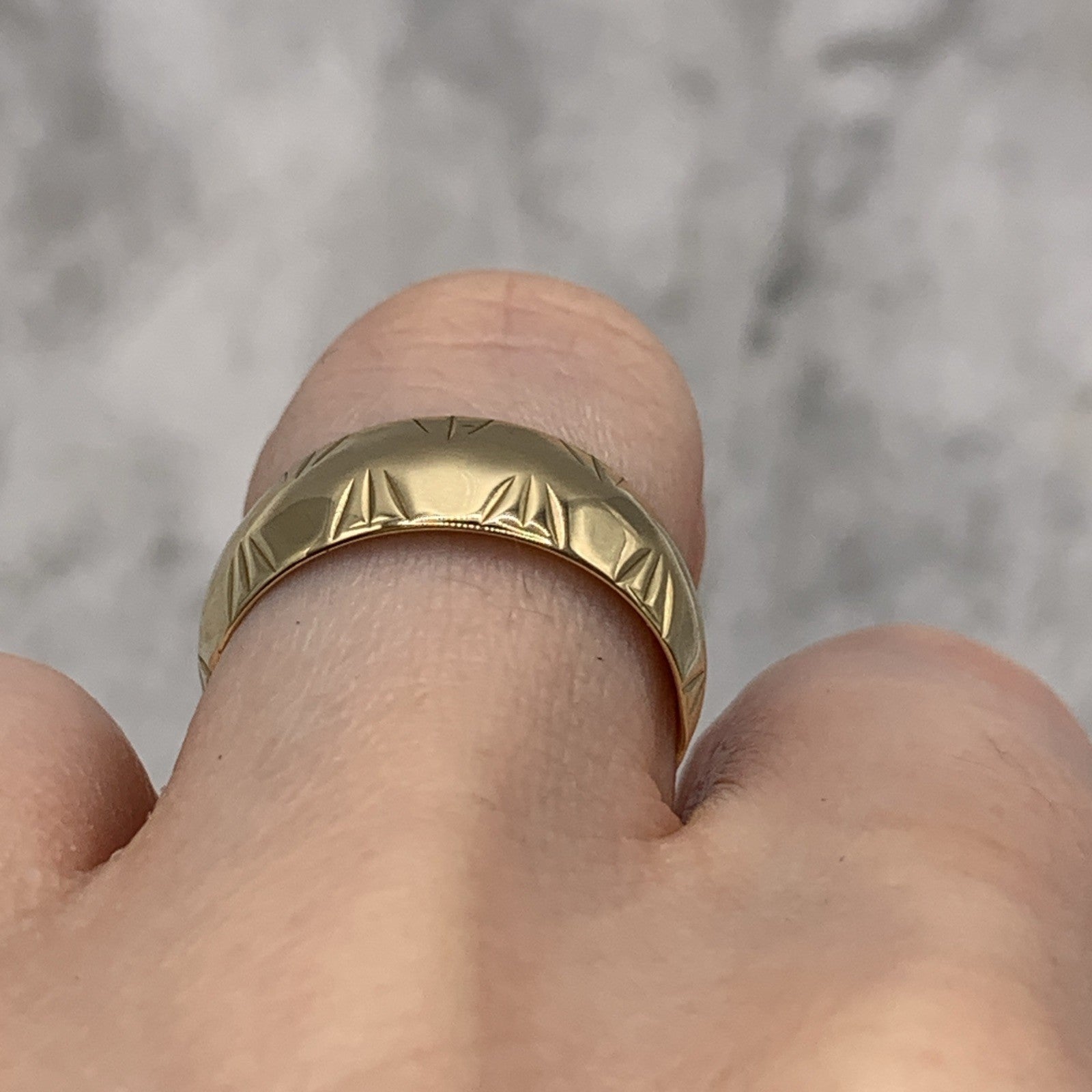 9 ct Gold Patterned Band Ring 375 Yellow Gold - Size N 1/2