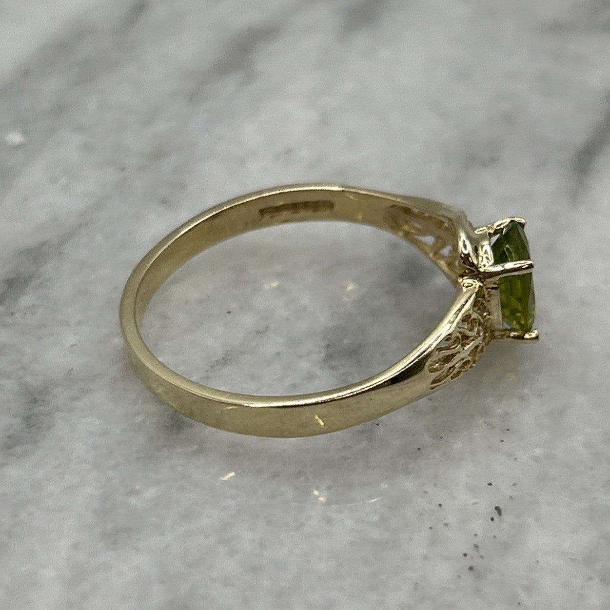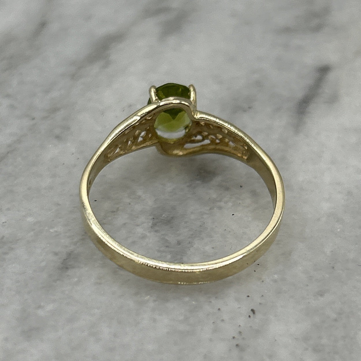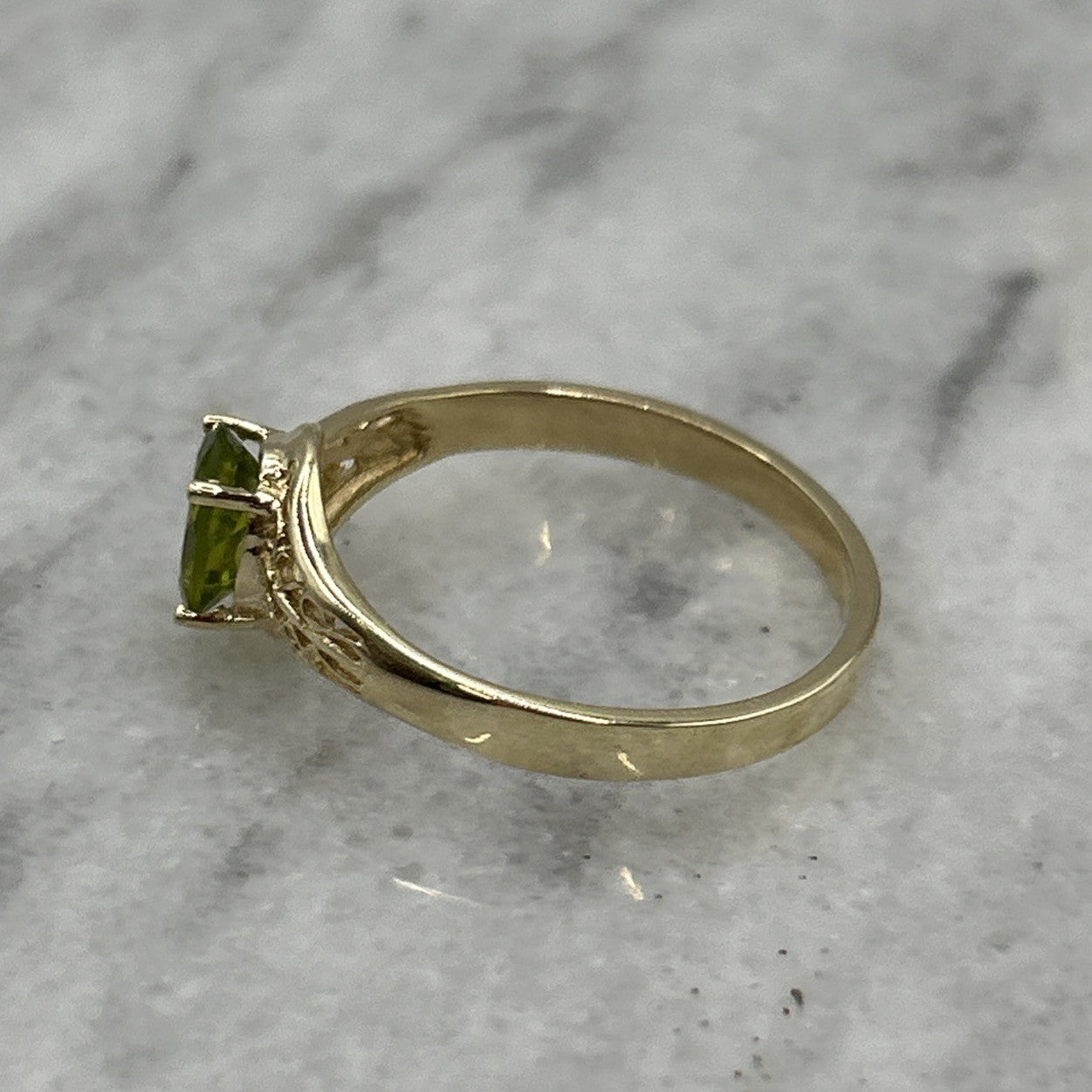 9 ct Gold Peridot Solitaire Filigree Shoulder Ring 375 Yellow Gold - Size U