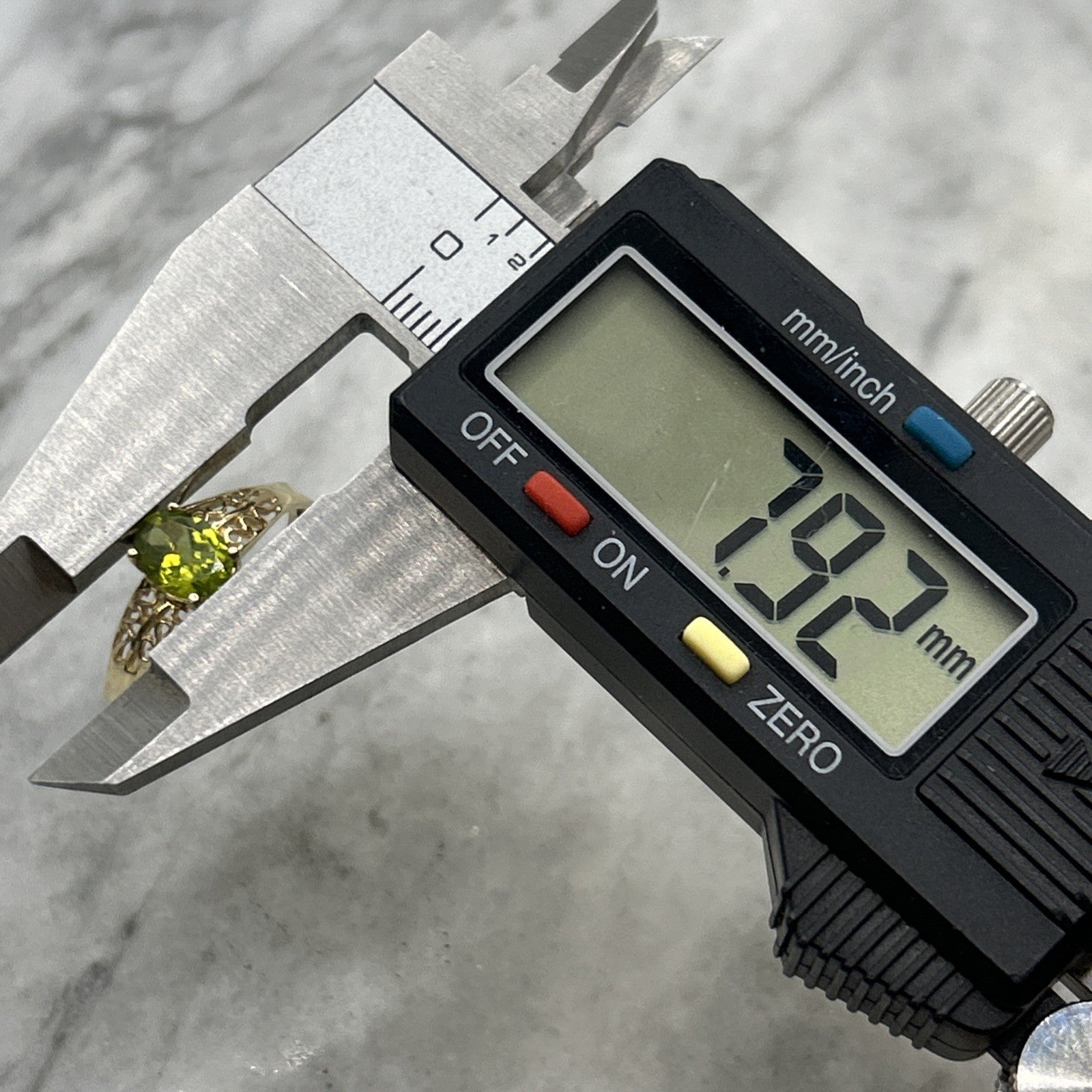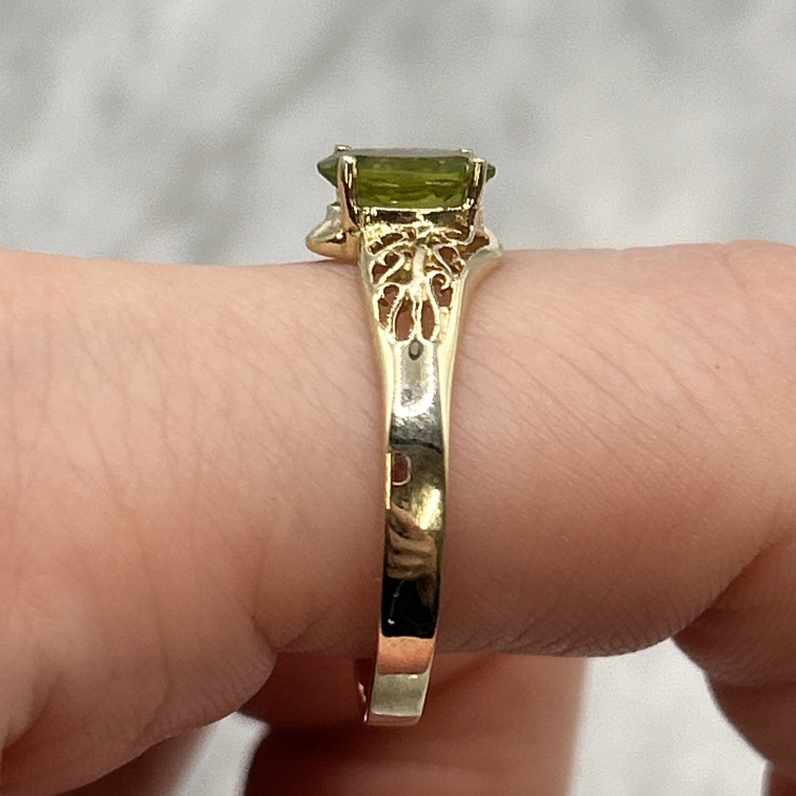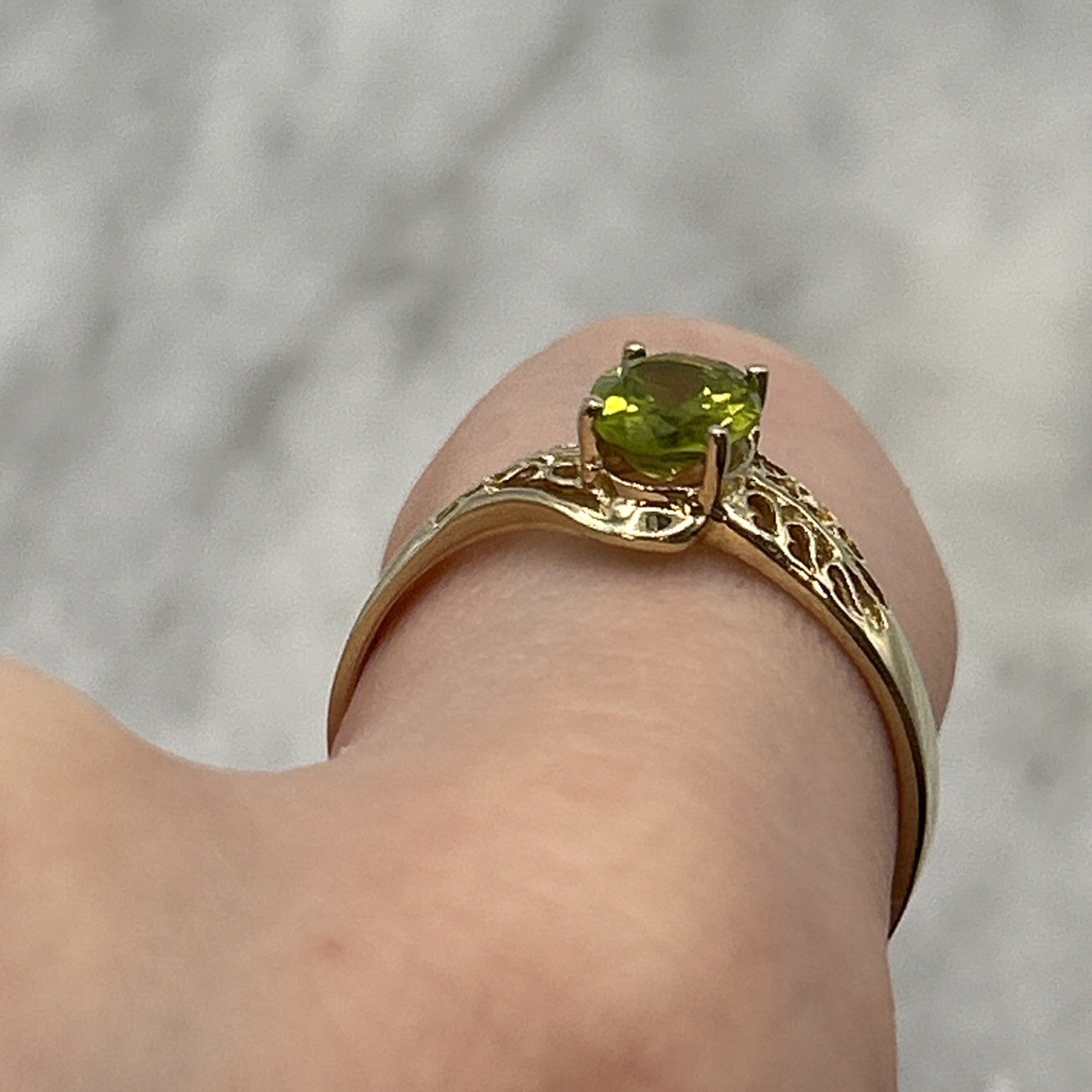 9 ct Gold Peridot Solitaire Filigree Shoulder Ring 375 Yellow Gold - Size U