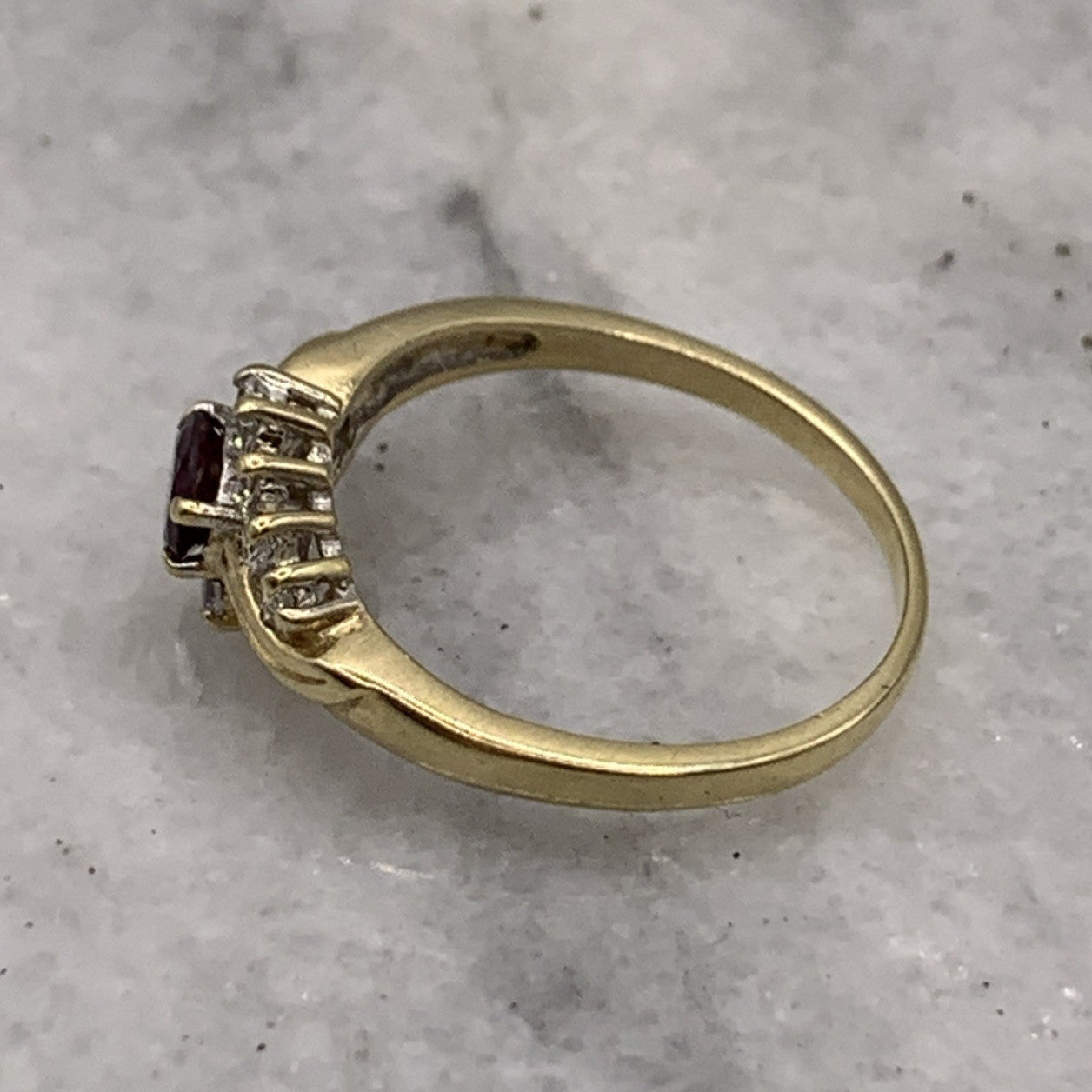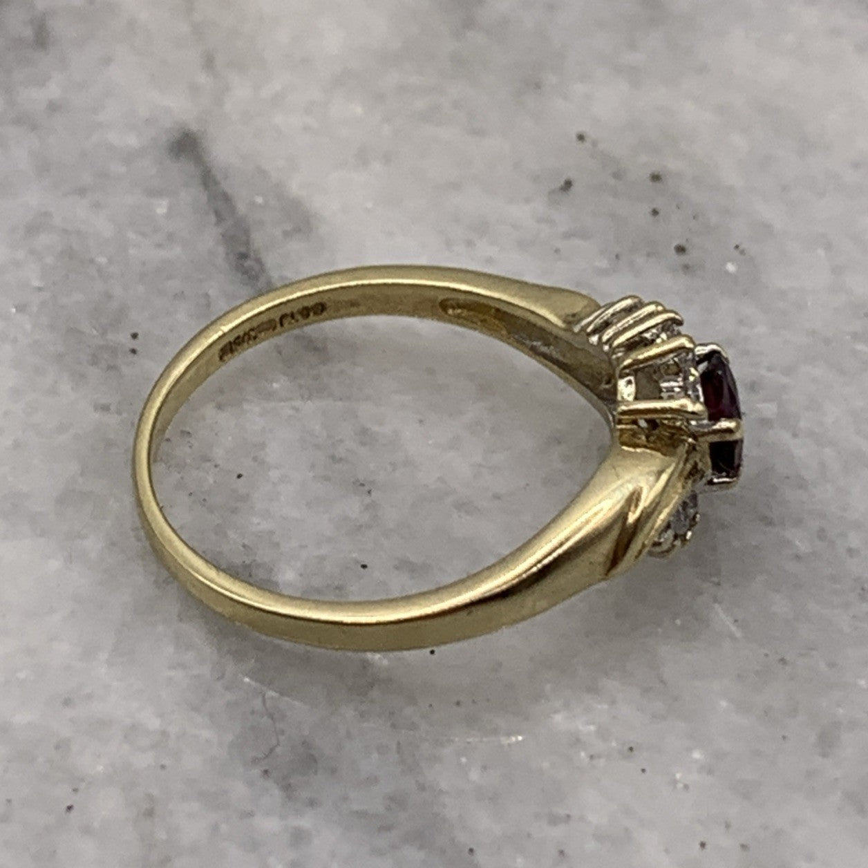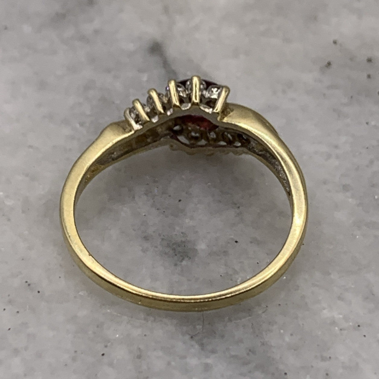 9 ct Gold Pink Tourmaline & CZ Cluster Twist Ring 375 Yellow Gold - Size O