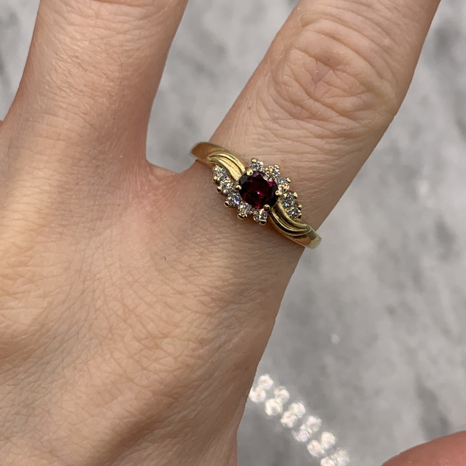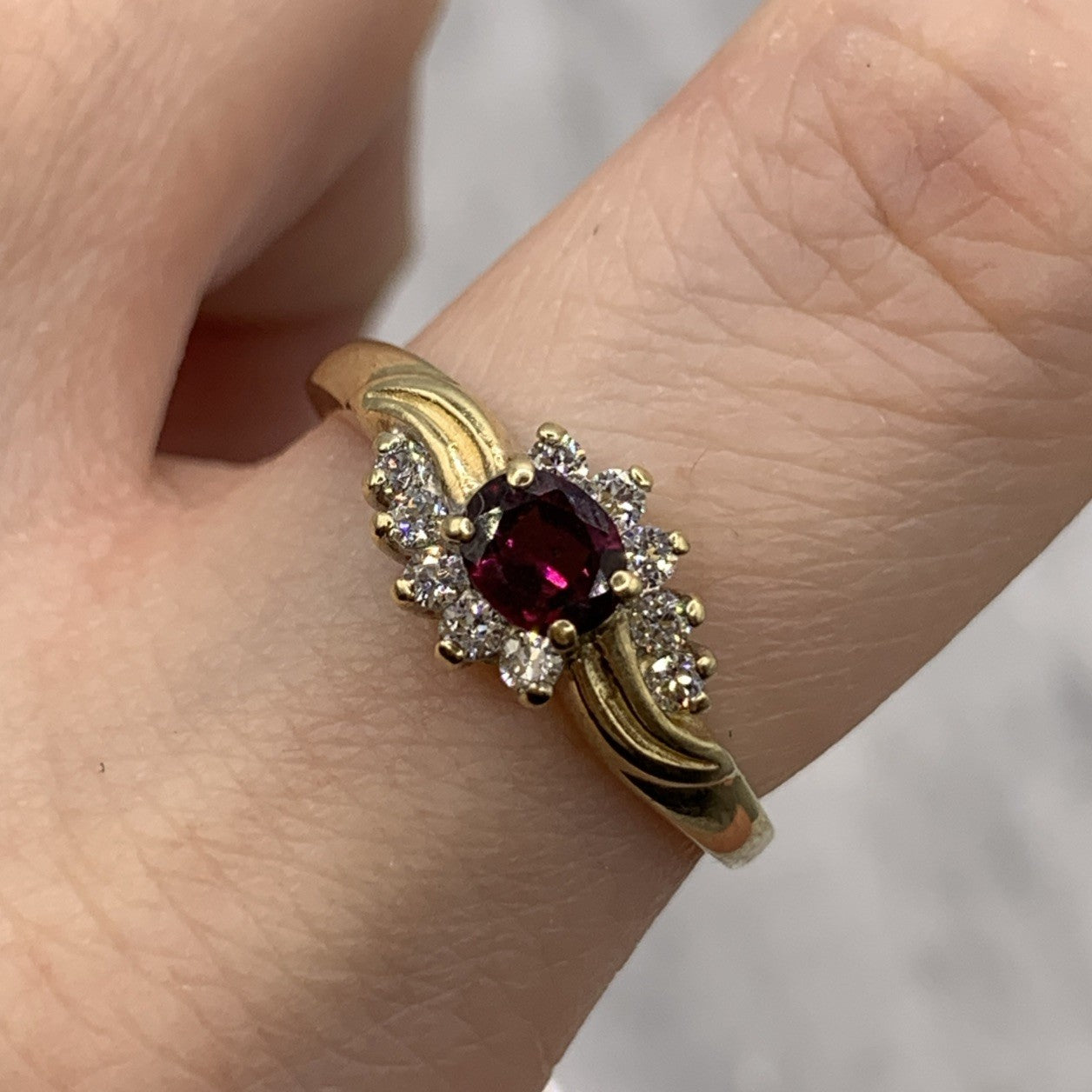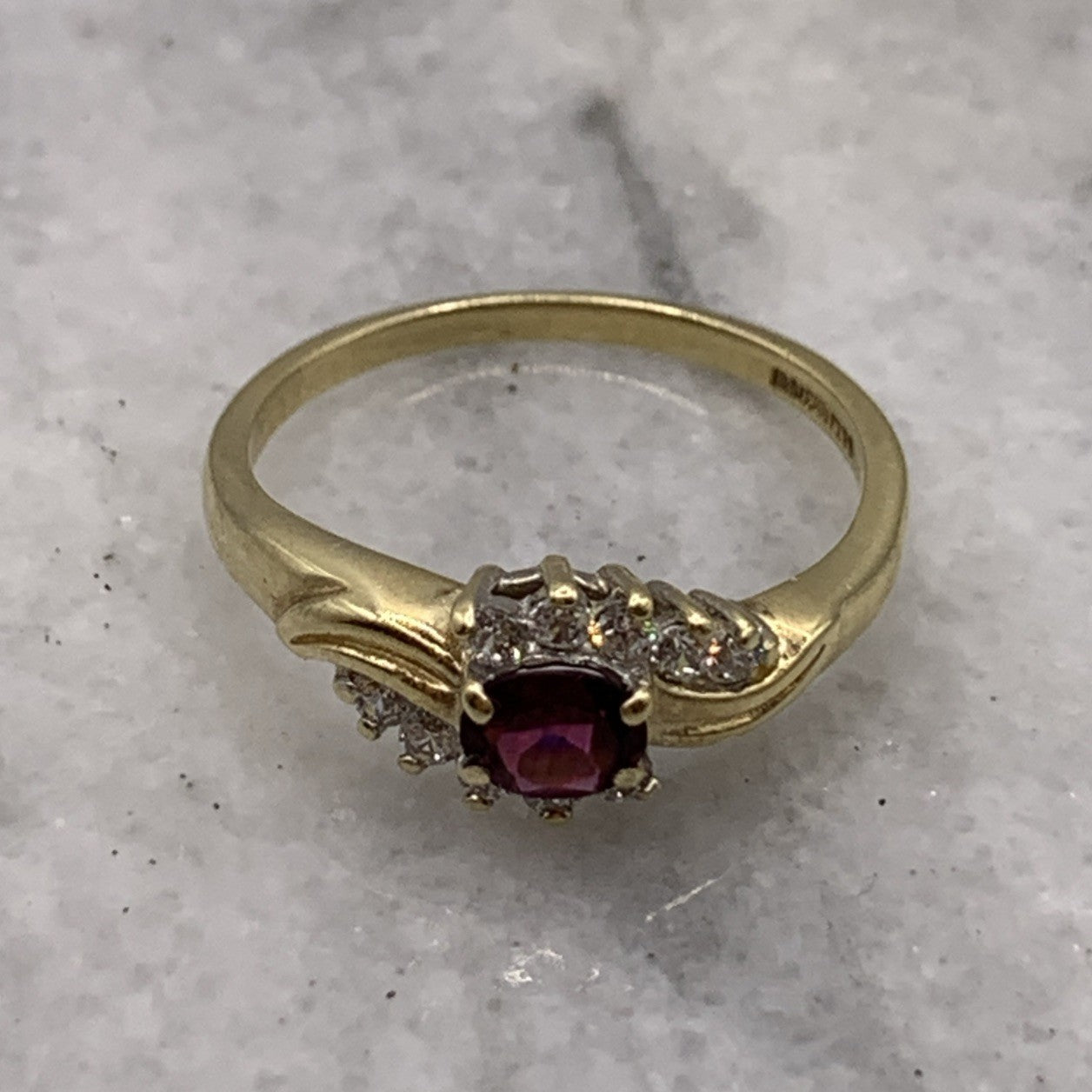 9 ct Gold Pink Tourmaline & CZ Cluster Twist Ring 375 Yellow Gold - Size O