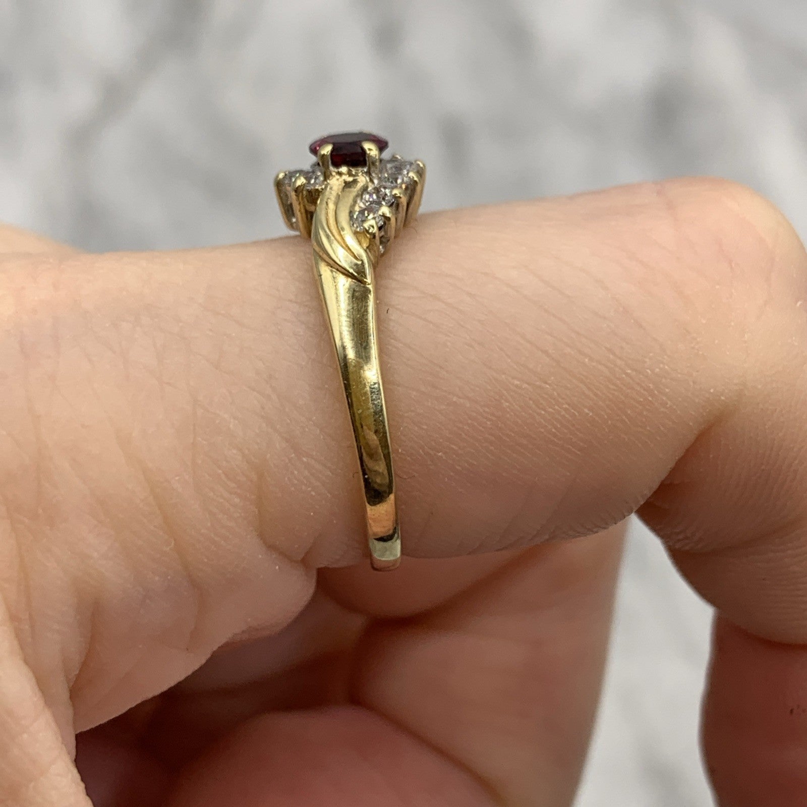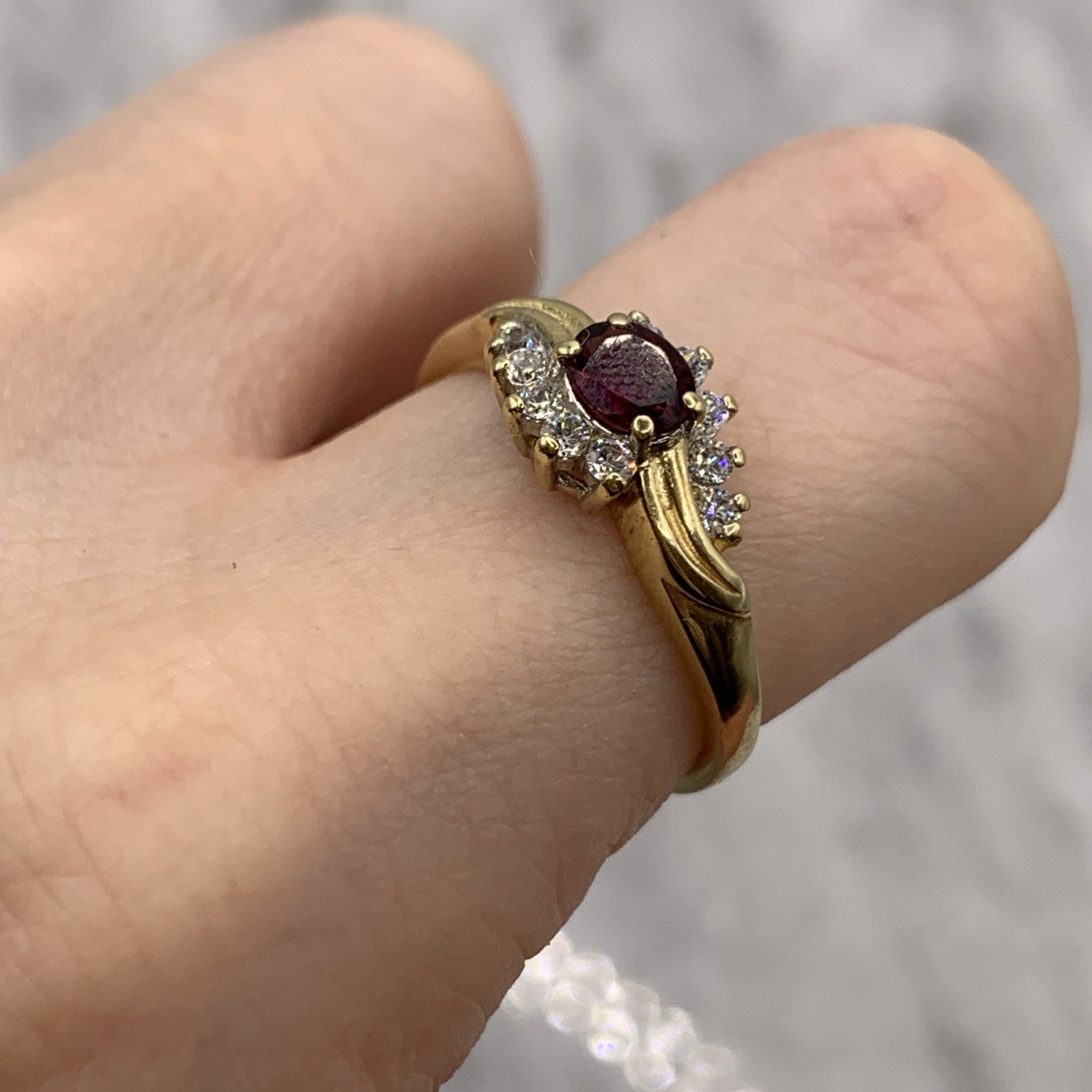 A beautiful twist style ring featuring an oval cut pink tourmaline accented by petite cubic zirconia gemstones.