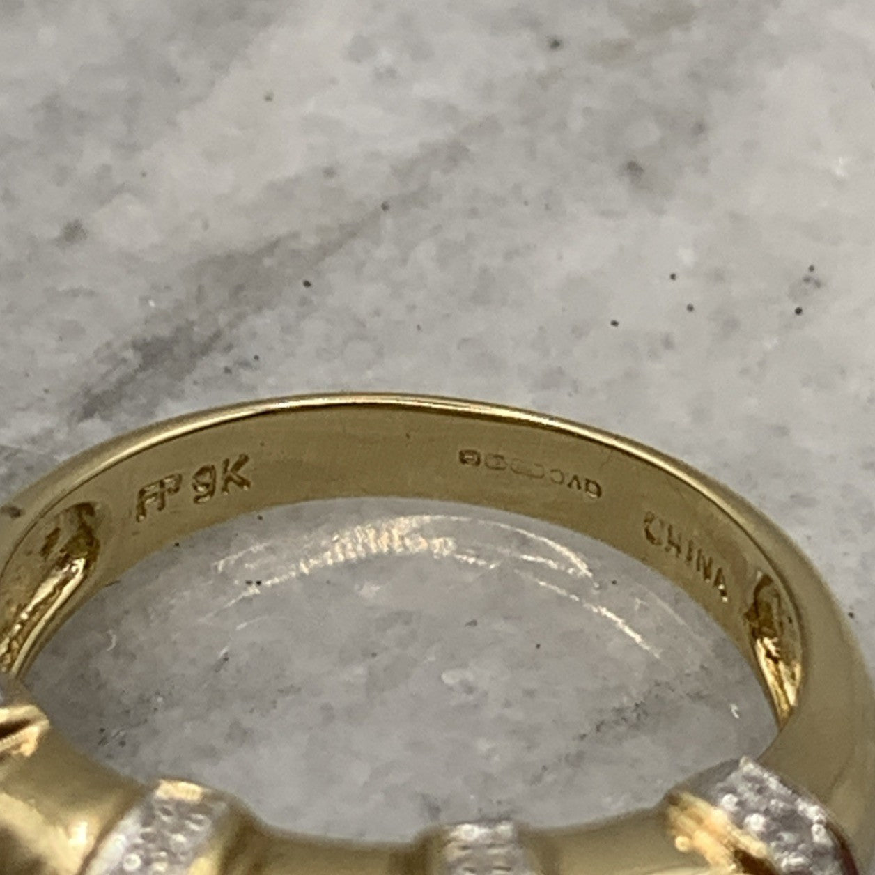 9 ct Gold Ring Aquamarine Princess Cut Diamond Ring 375 Yellow Gold - Size N