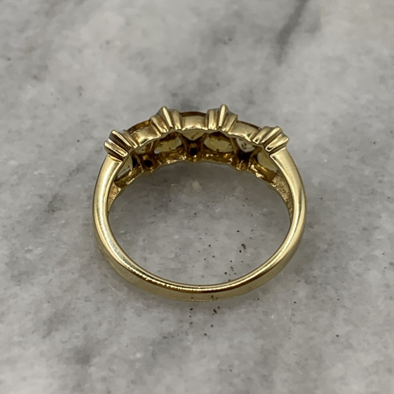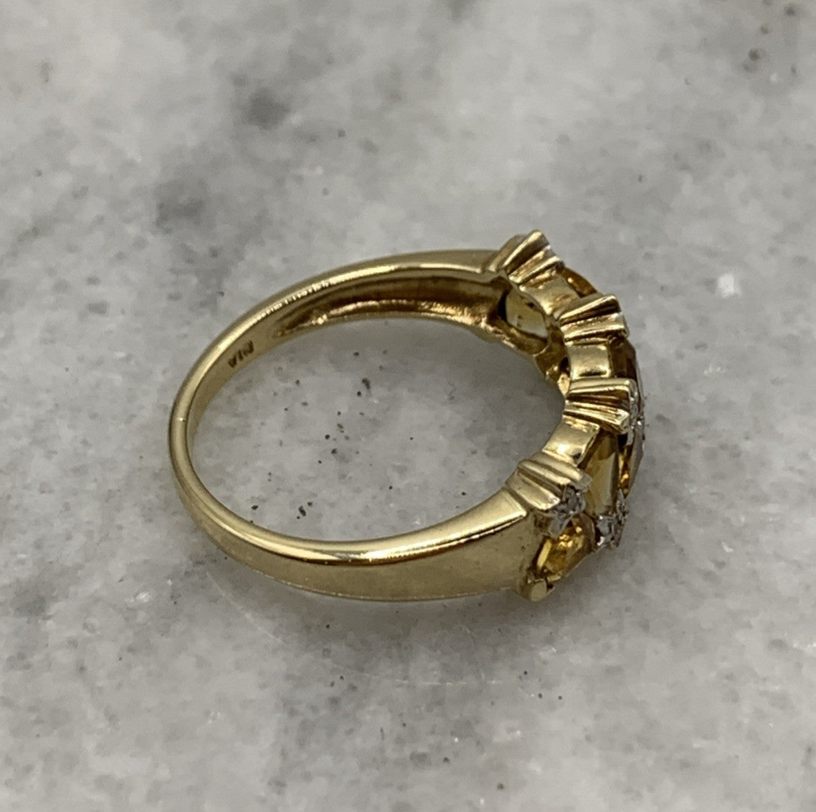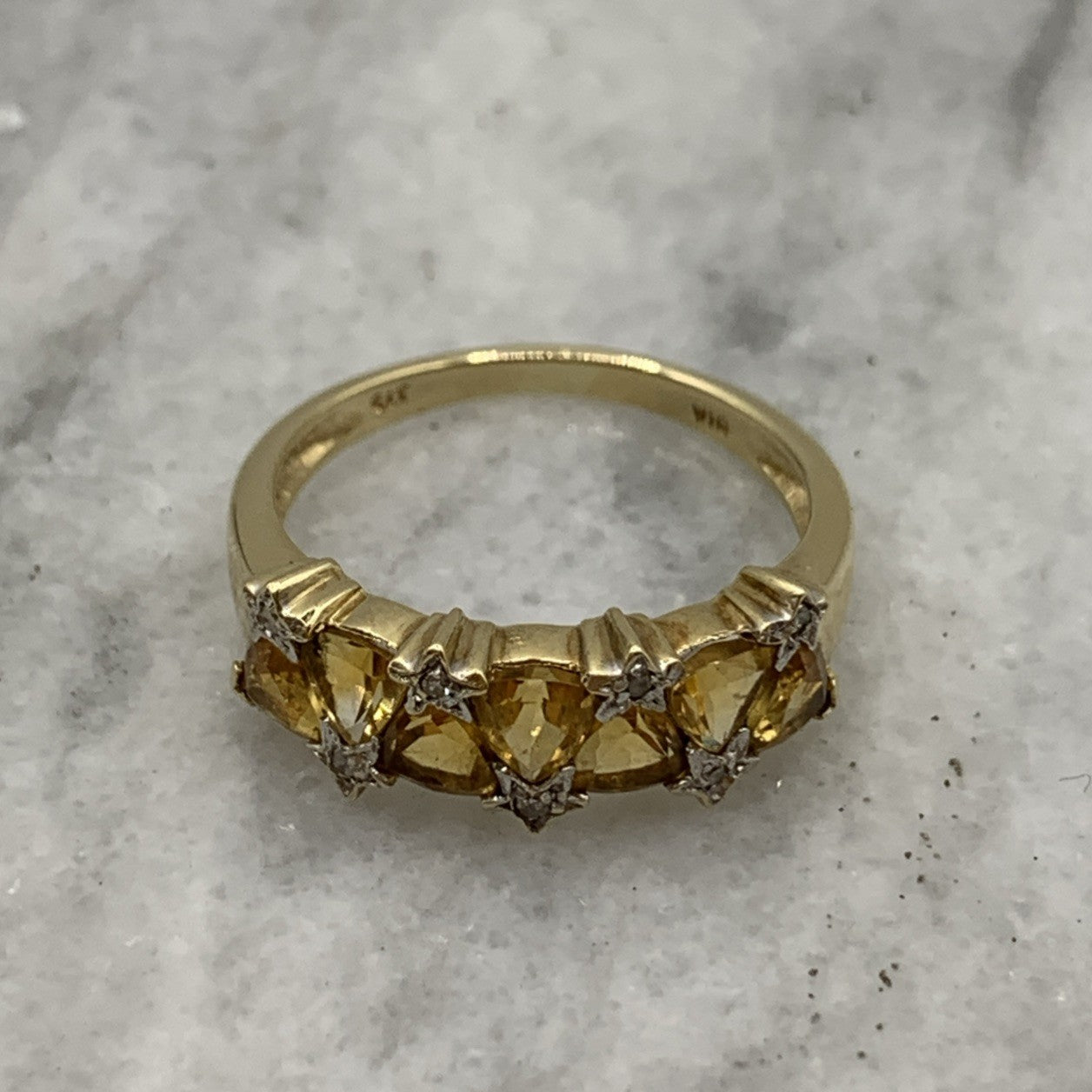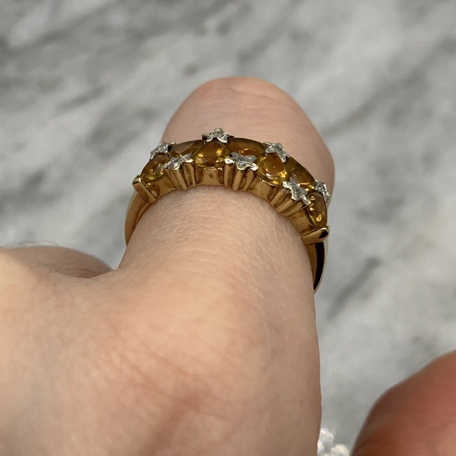 - A charming gold ring featuring a cluster of trilliant cut citrines and petite star set diamonds. Hallmarked.
