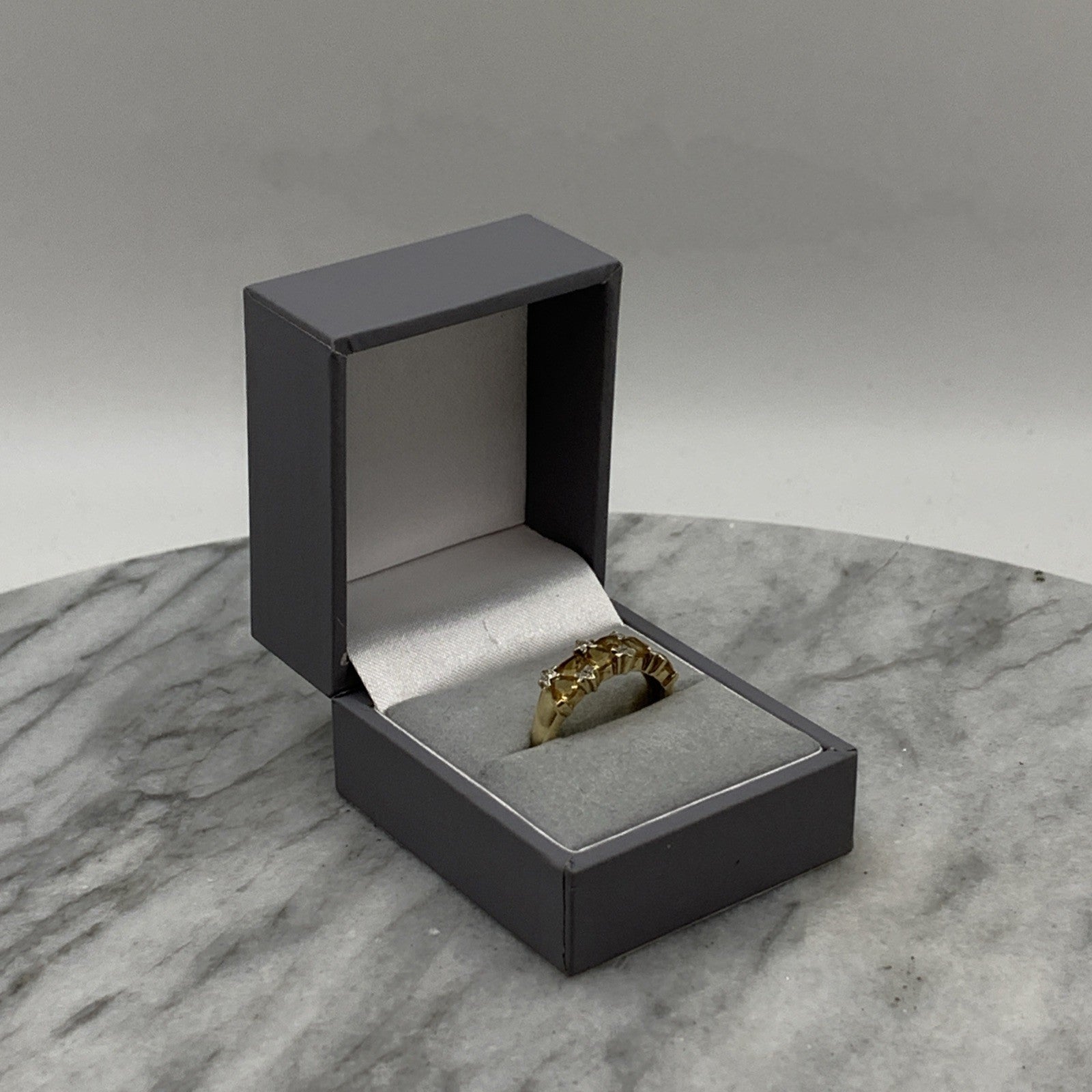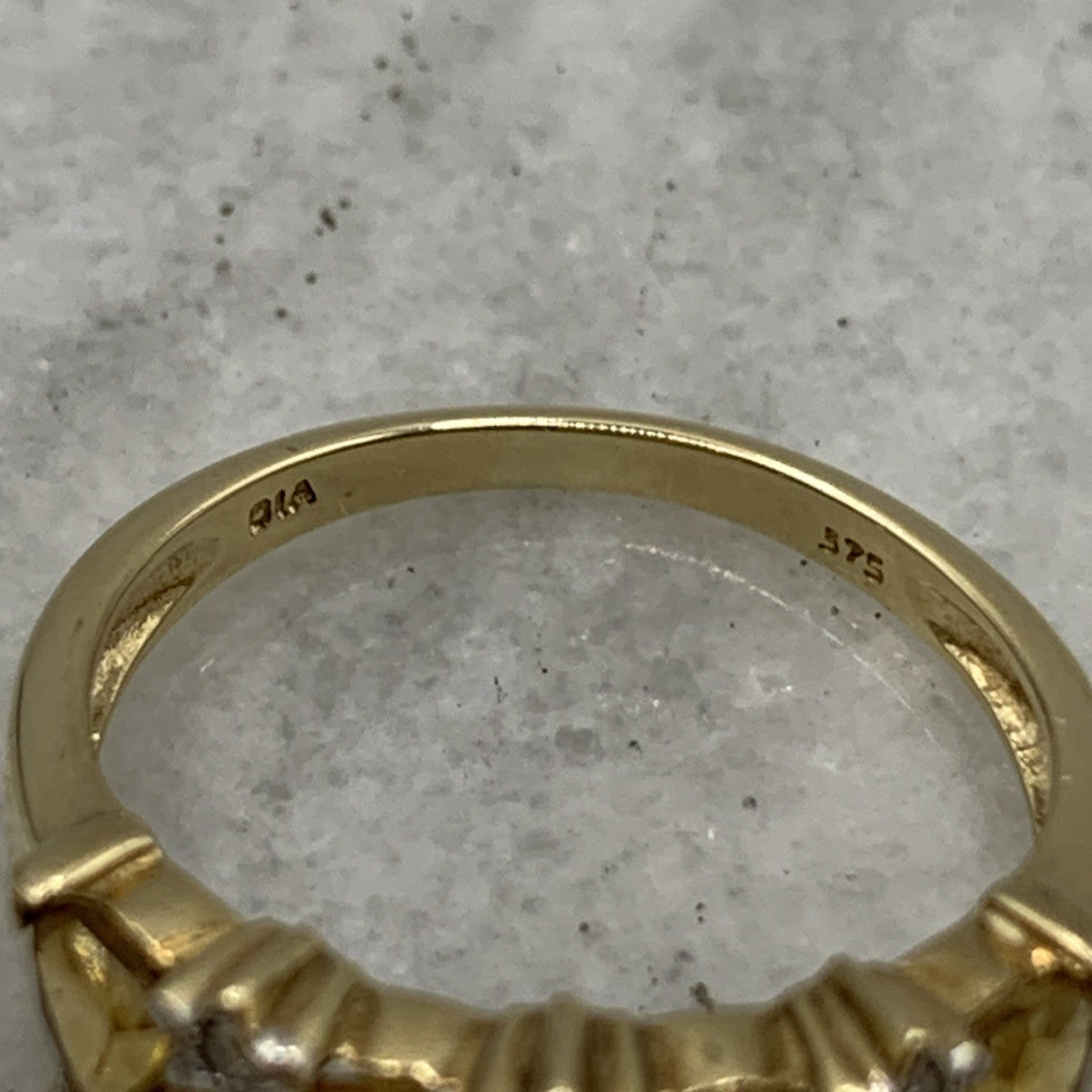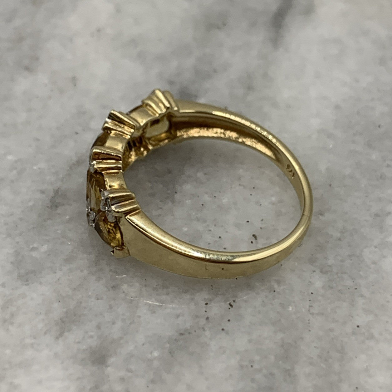 9 ct Gold Ring Citrine & Diamond Trilliant Cluster Ring 375 Yellow Gold - Size P
