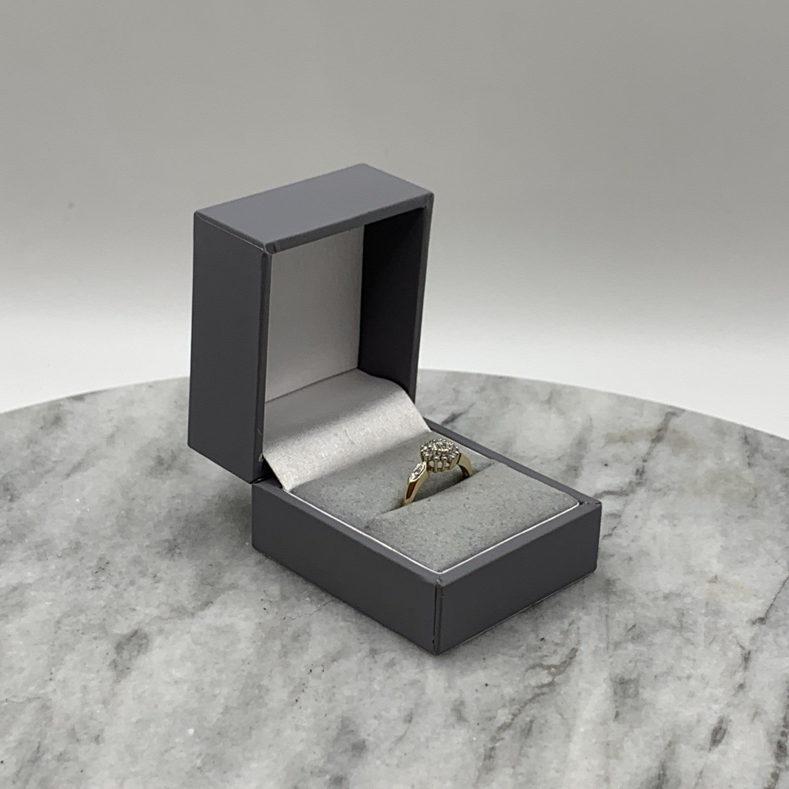 9 ct Gold Ring Diamond .10ct Cluster Ring 375 Yellow Gold - Size M 1/2